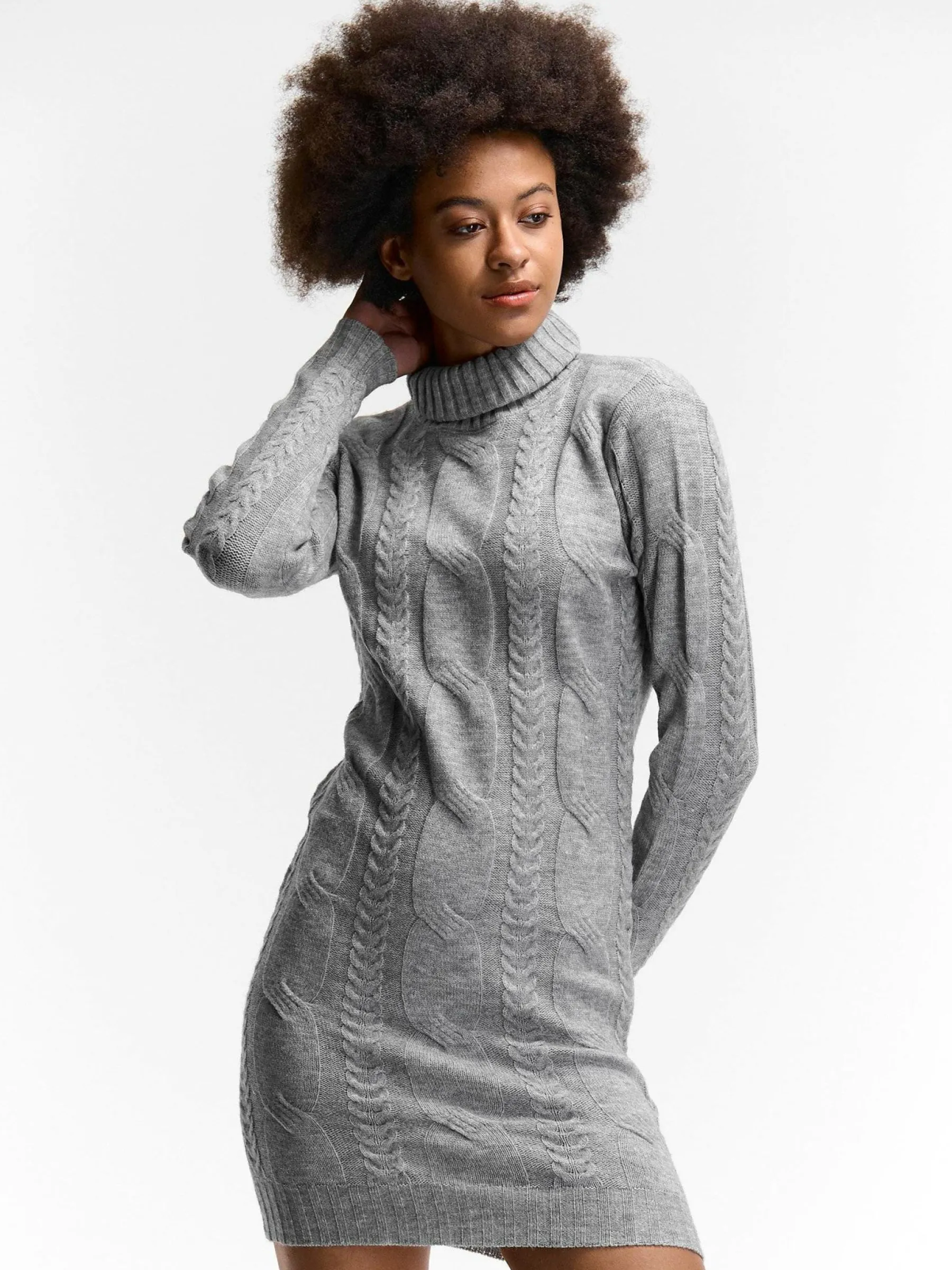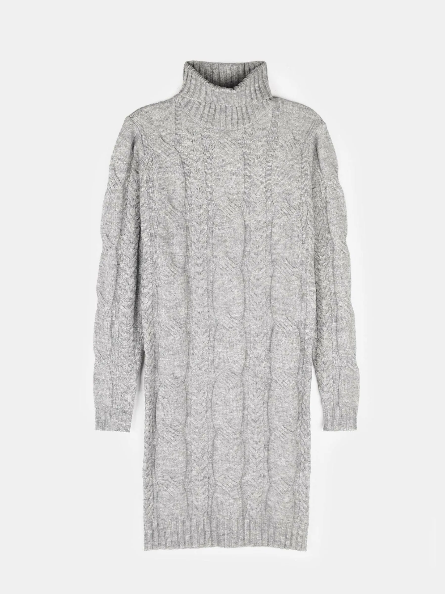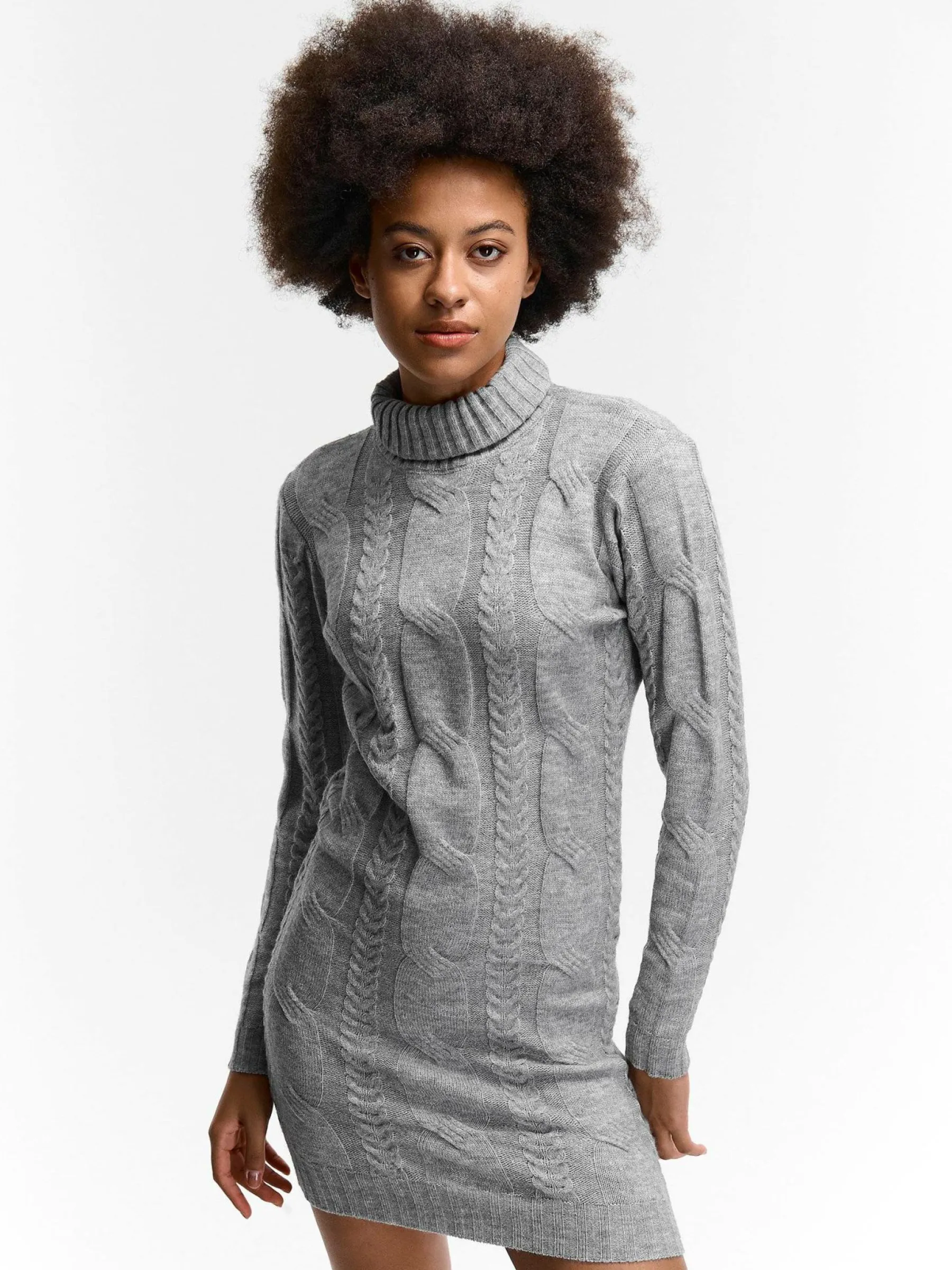 Kolor: szaryKrój: regularTyp: sukienkaRekaw: długi rękawDługość: miniPattern style: pojedynczy kolor, strukturowan…