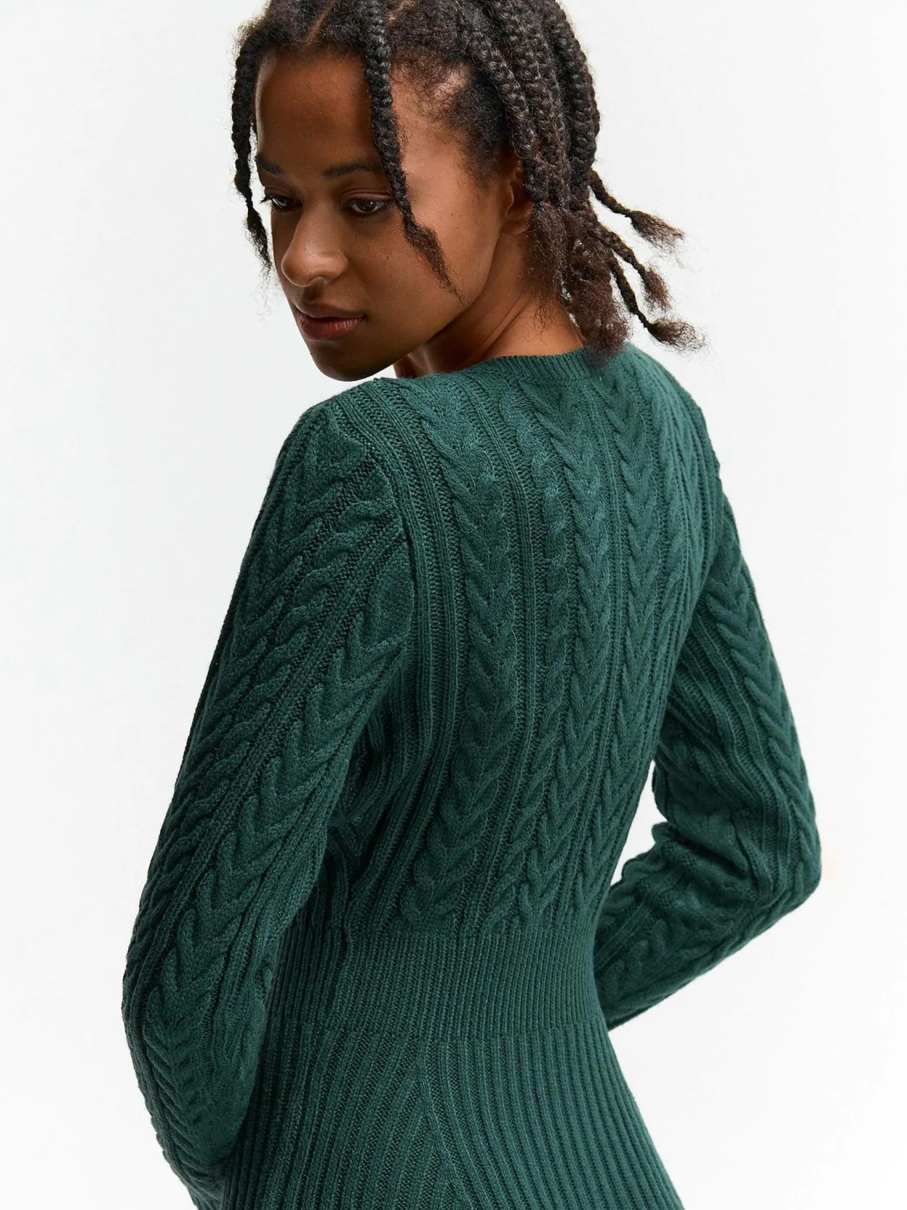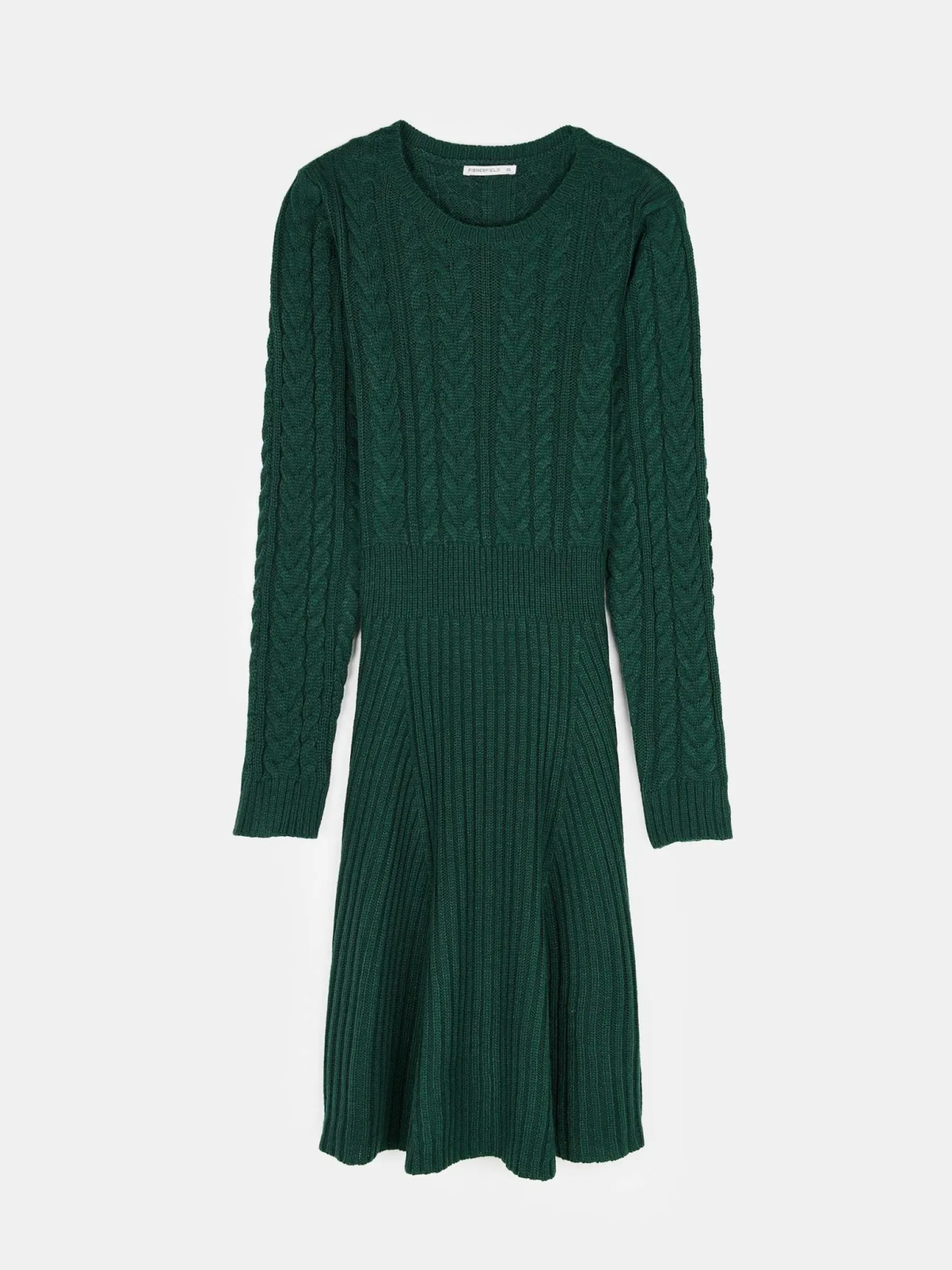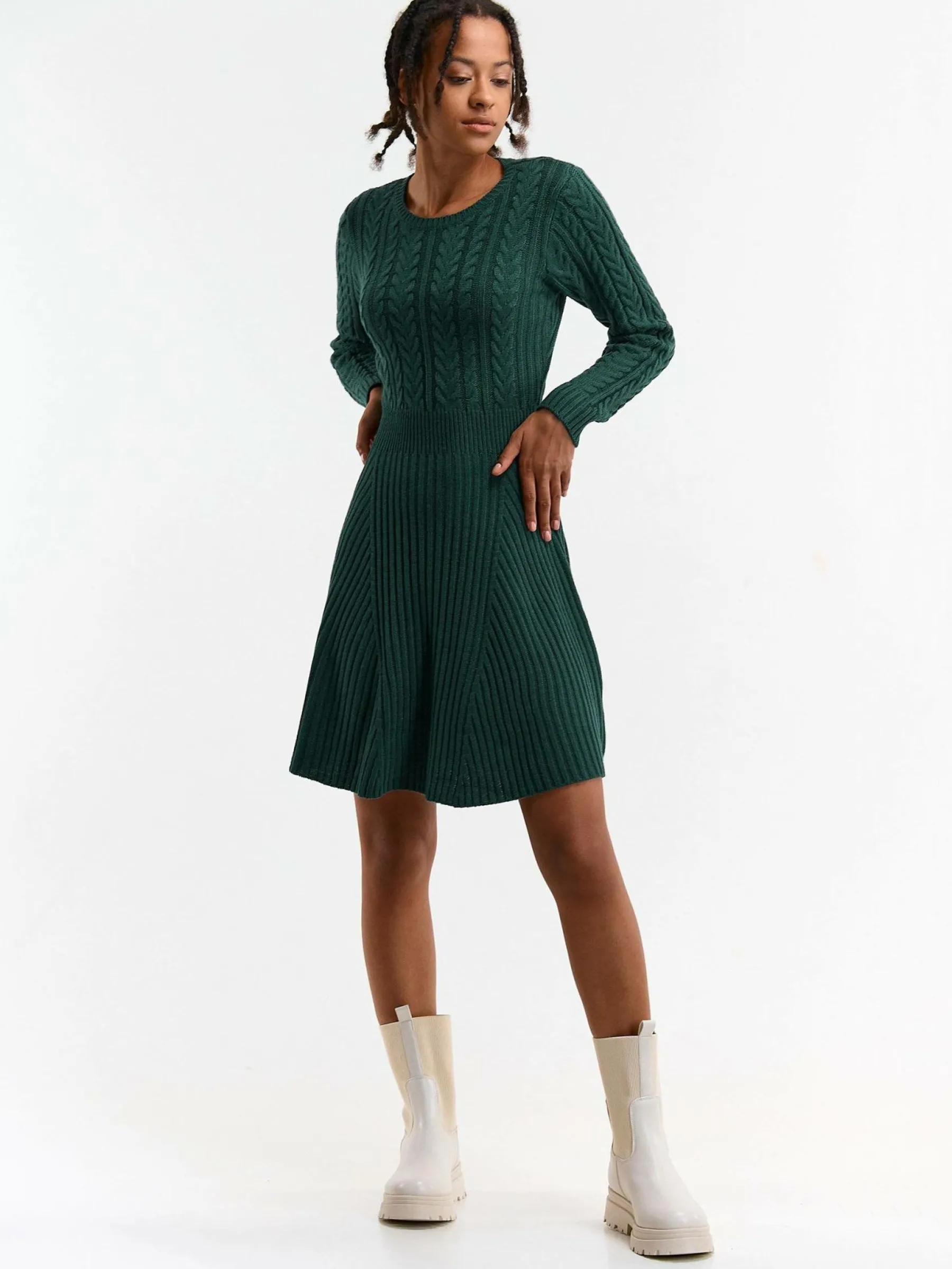 Kolor: zielonyKrój: asyTyp: sukienkaRekaw: długi rękawDługość: miniPattern style: pojedynczy kolor, strukturowaneD…
