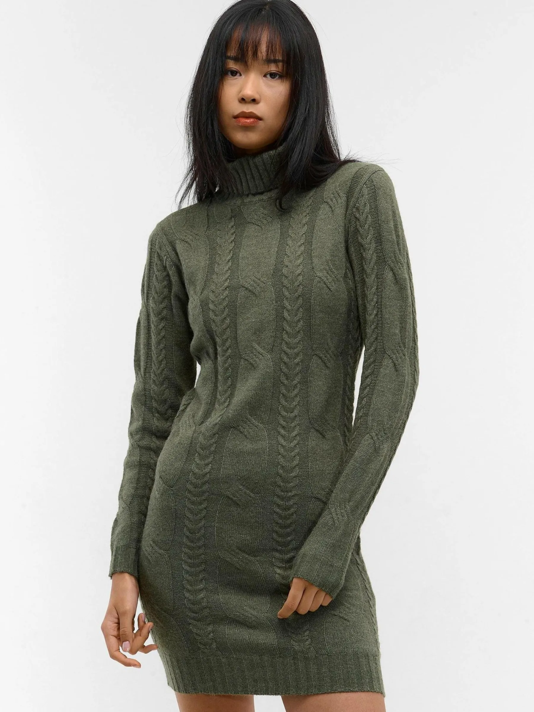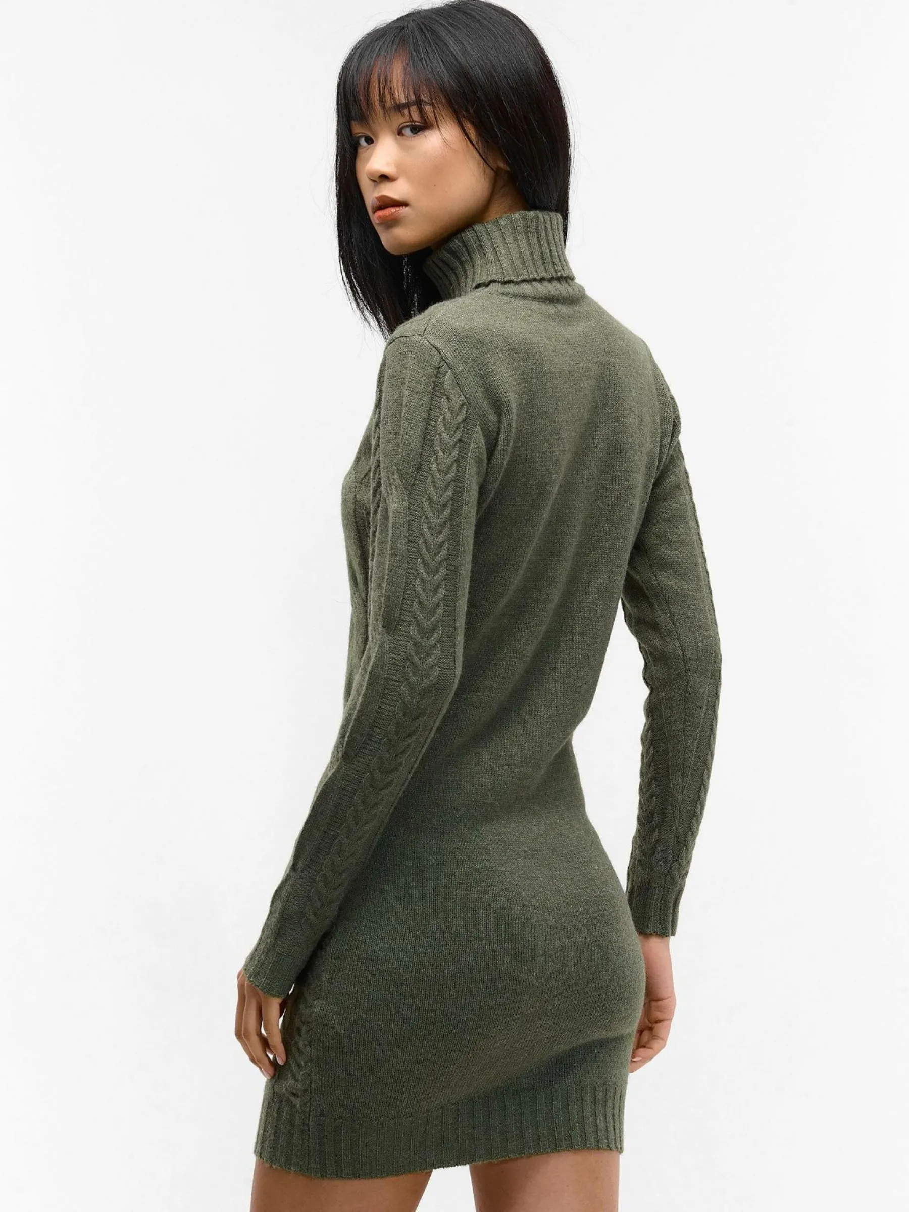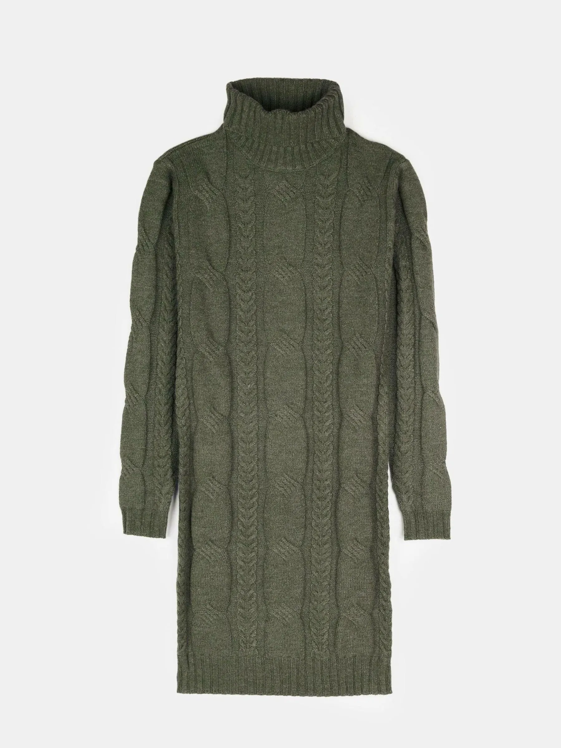 Kolor: khakiKrój: regularTyp: sukienkaRekaw: długi rękawDługość: miniPattern style: pojedynczy kolor, strukturowan…