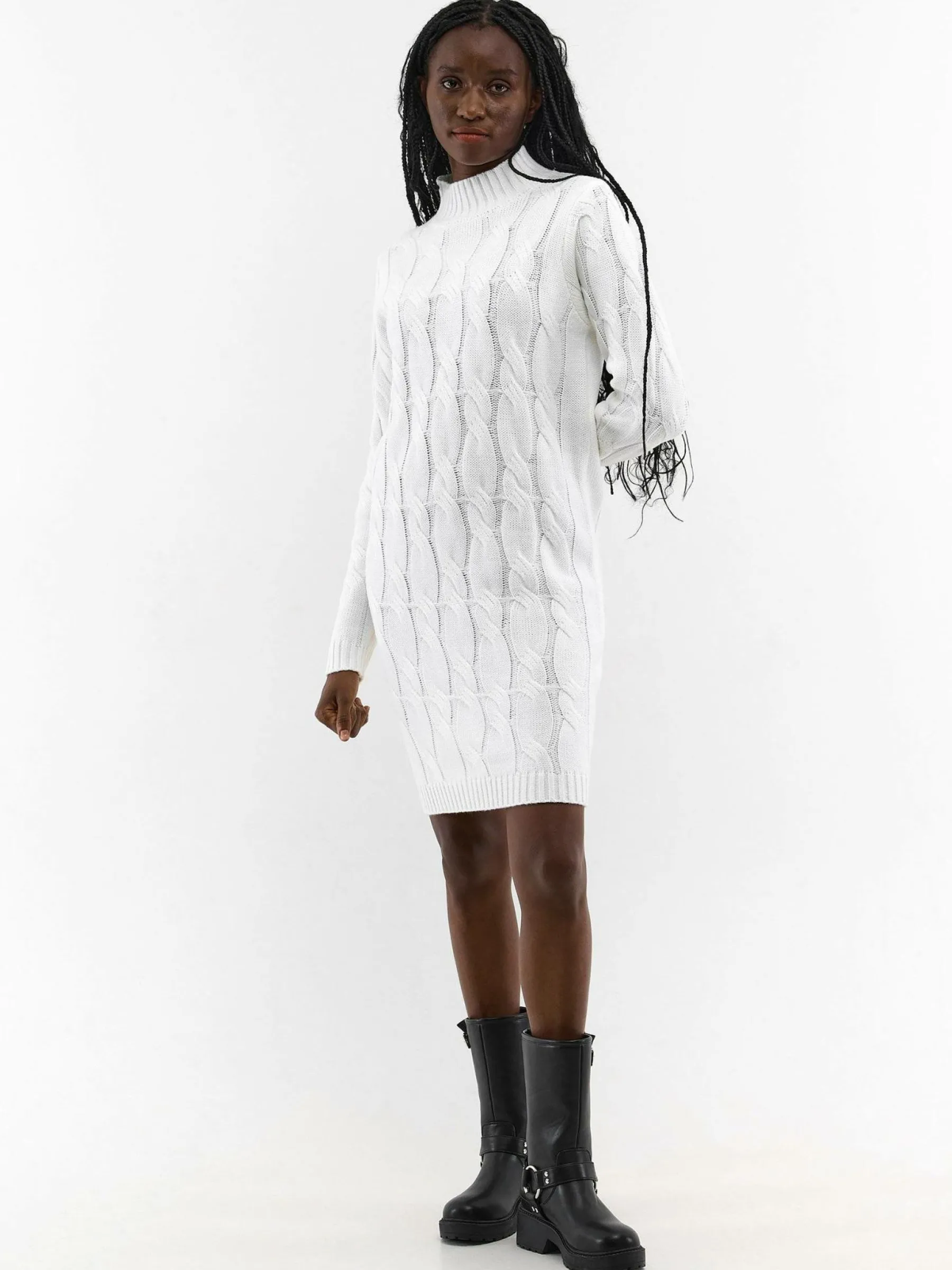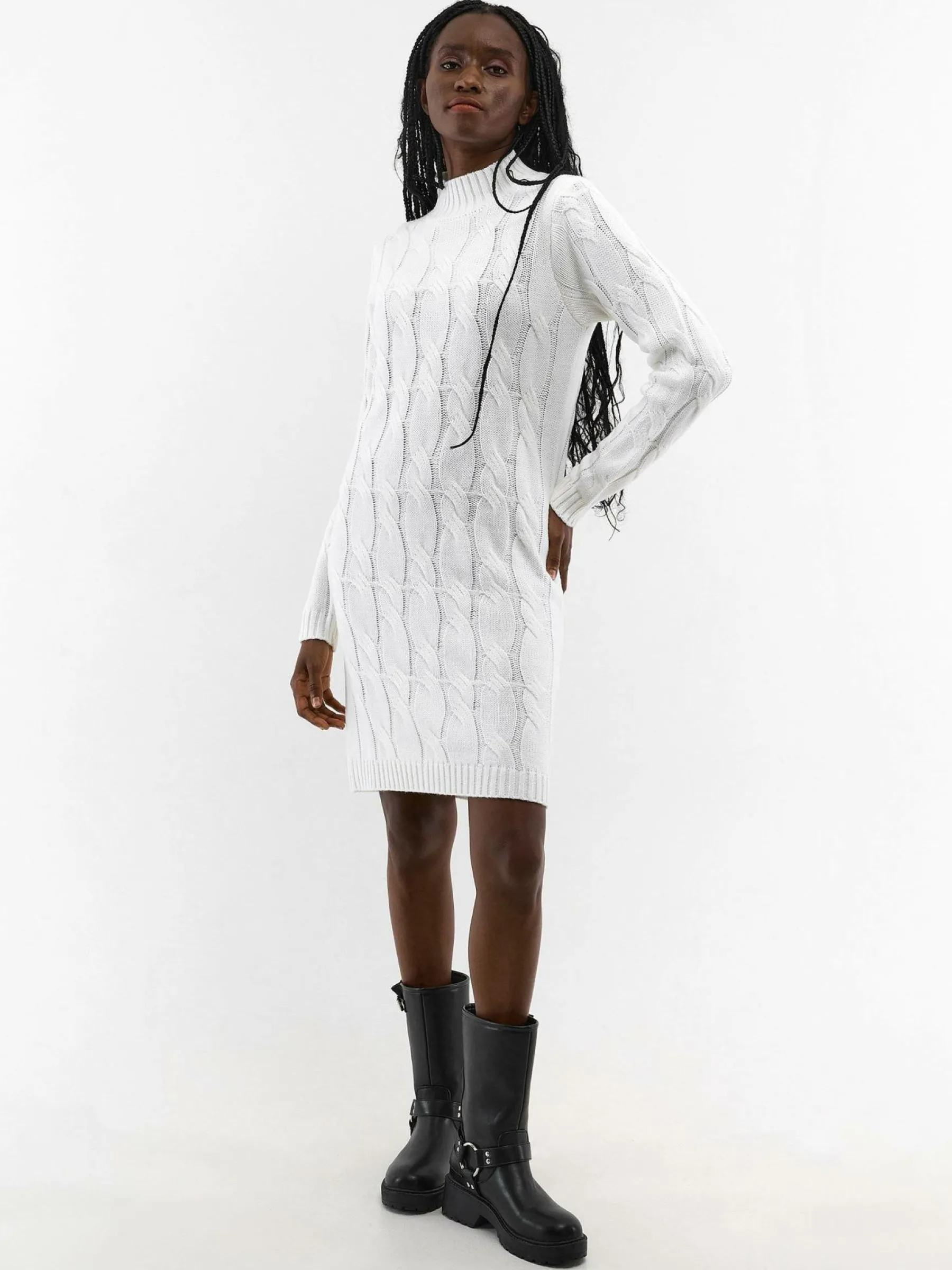 Kolor: białyKrój: regularTyp: sukienkaRekaw: długi rękawDługość: miniPattern style: pojedynczy kolor, strukturowa…