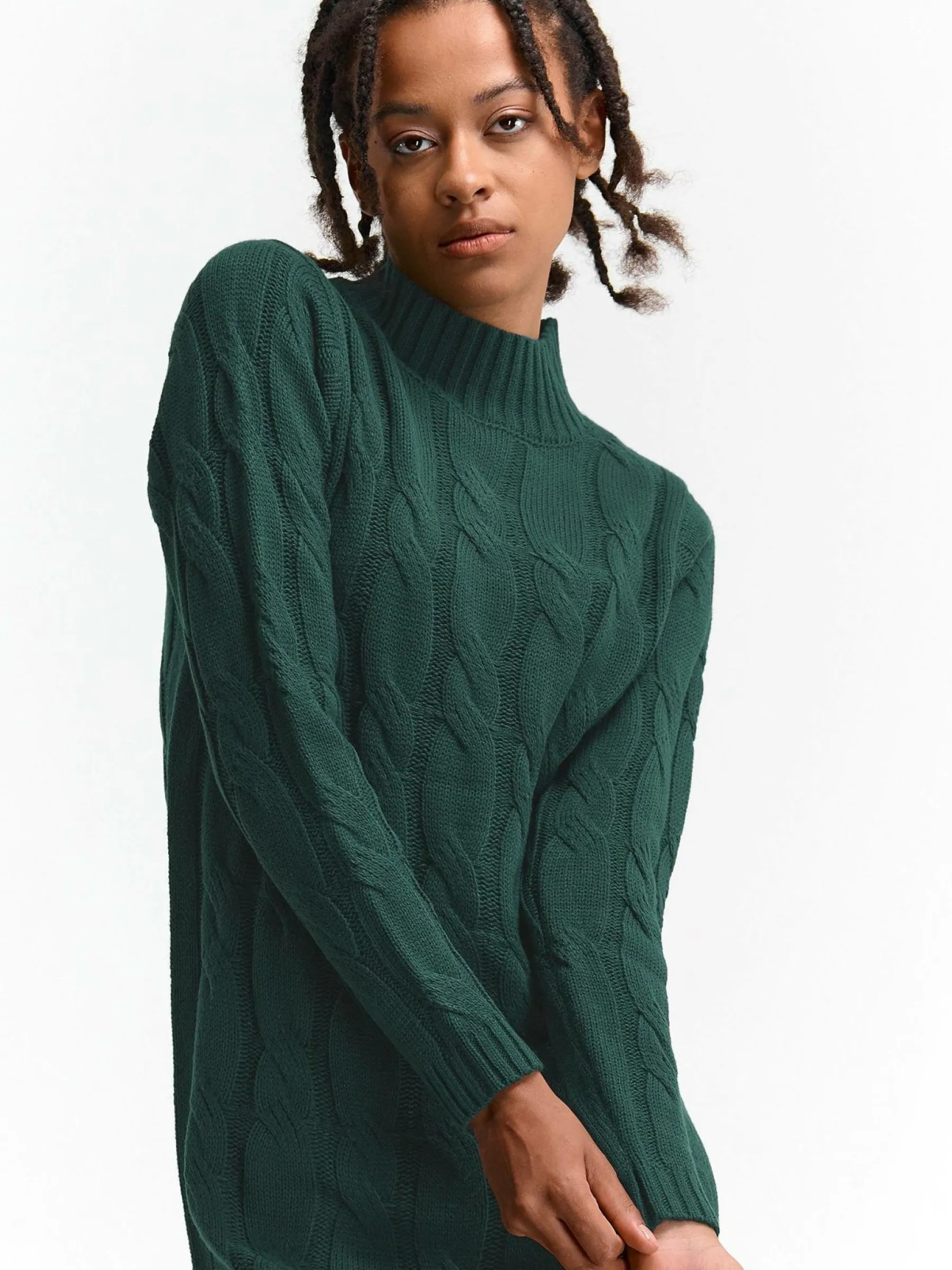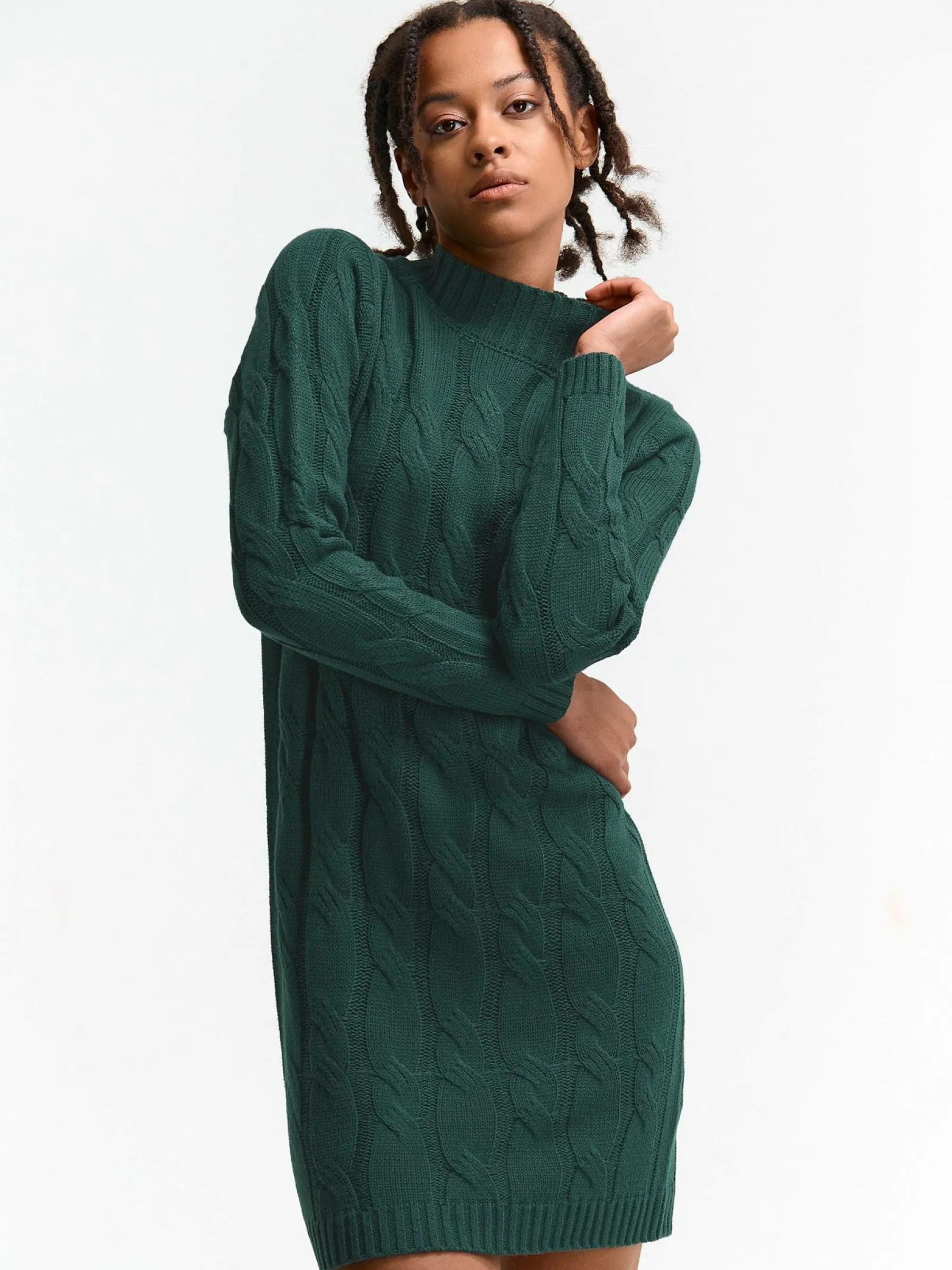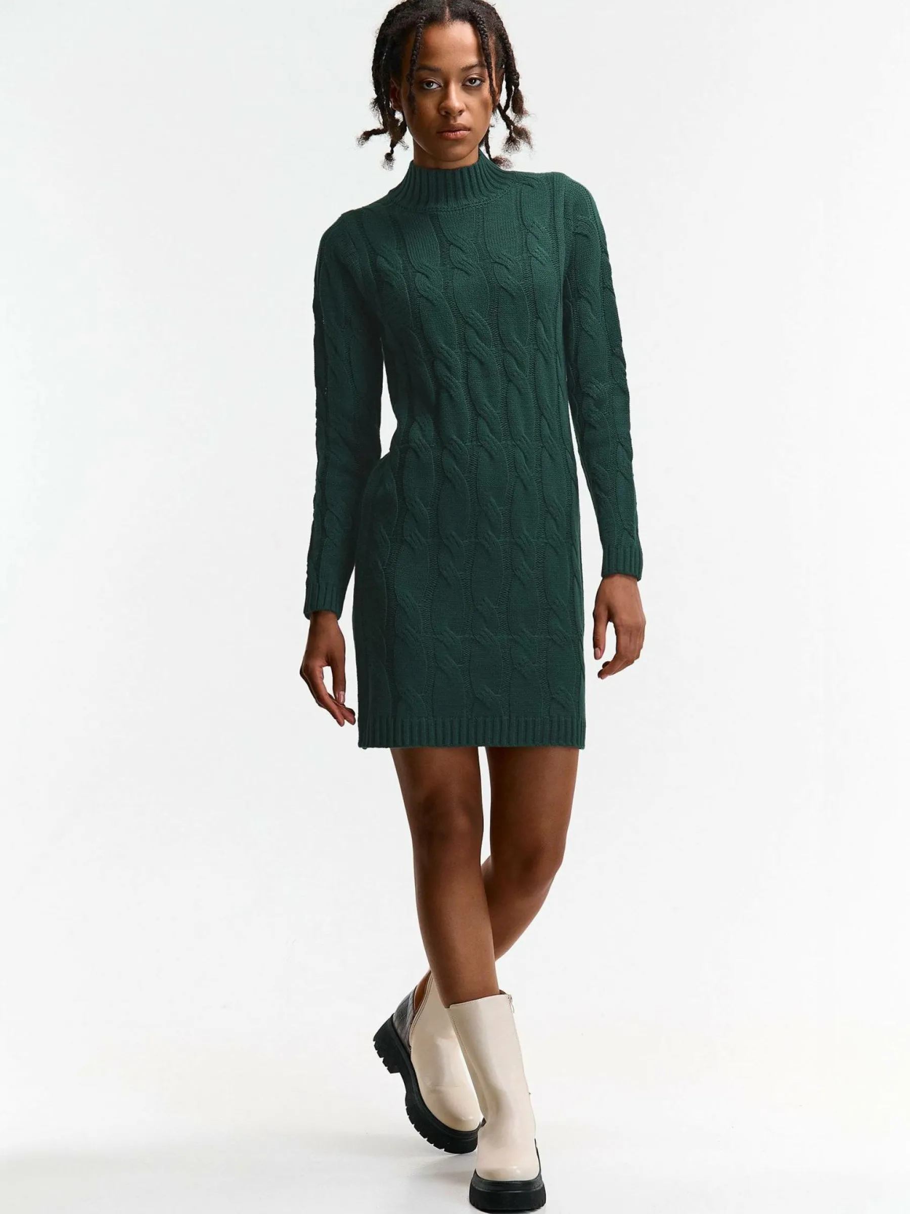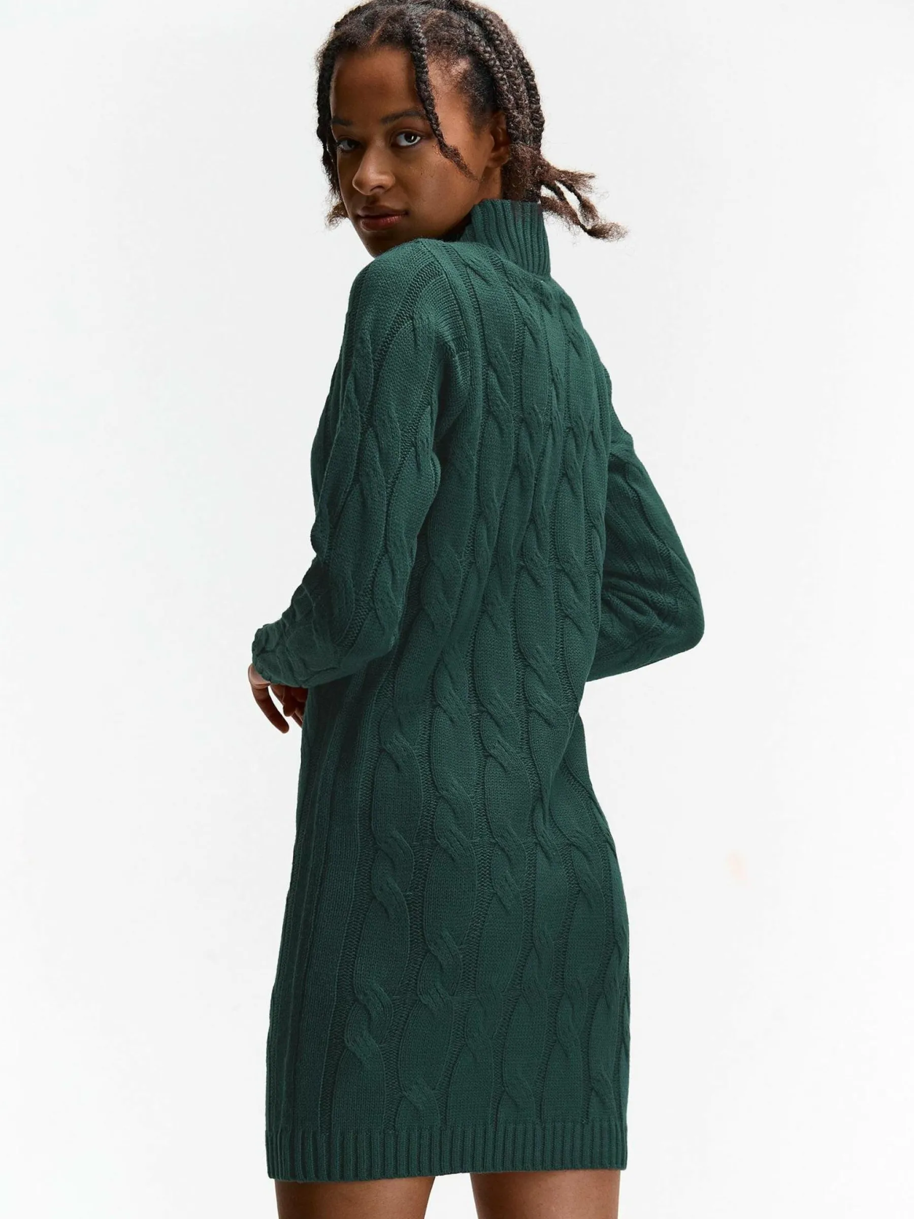 Kolor: zielonyKrój: regularTyp: sukienkaRekaw: długi rękawDługość: miniPattern style: pojedynczy kolor, strukturow…