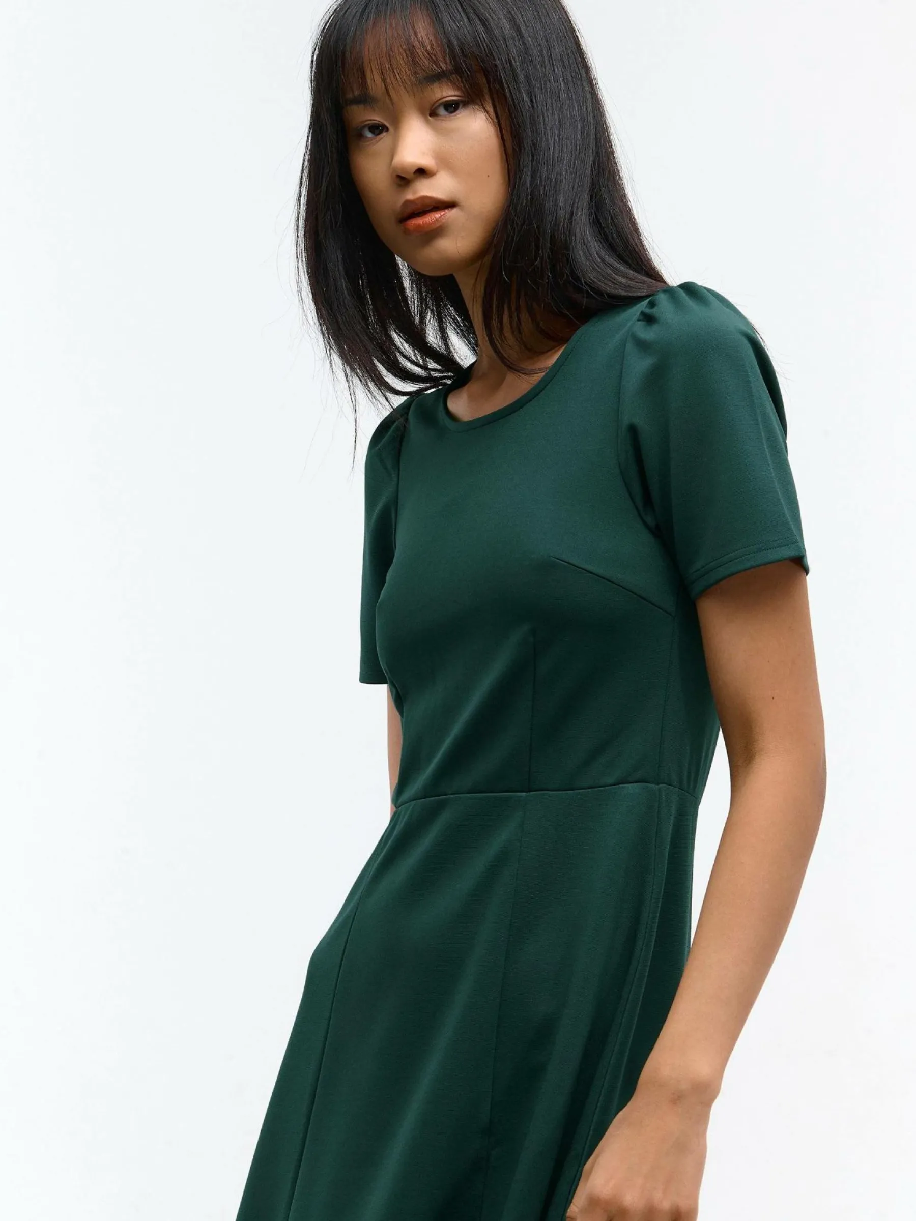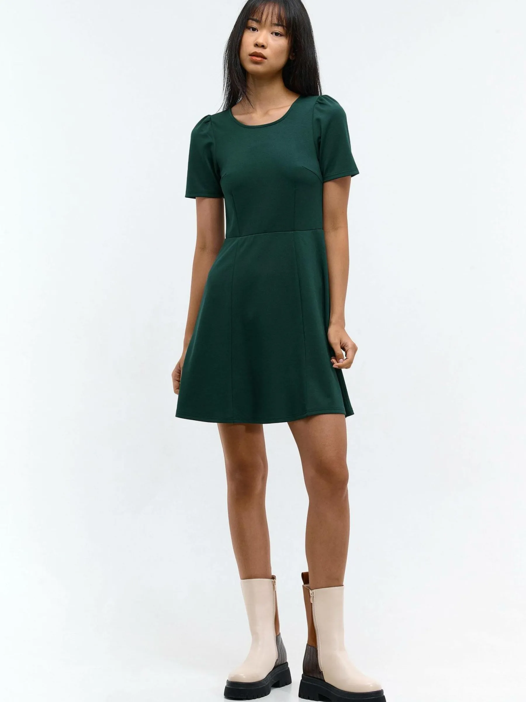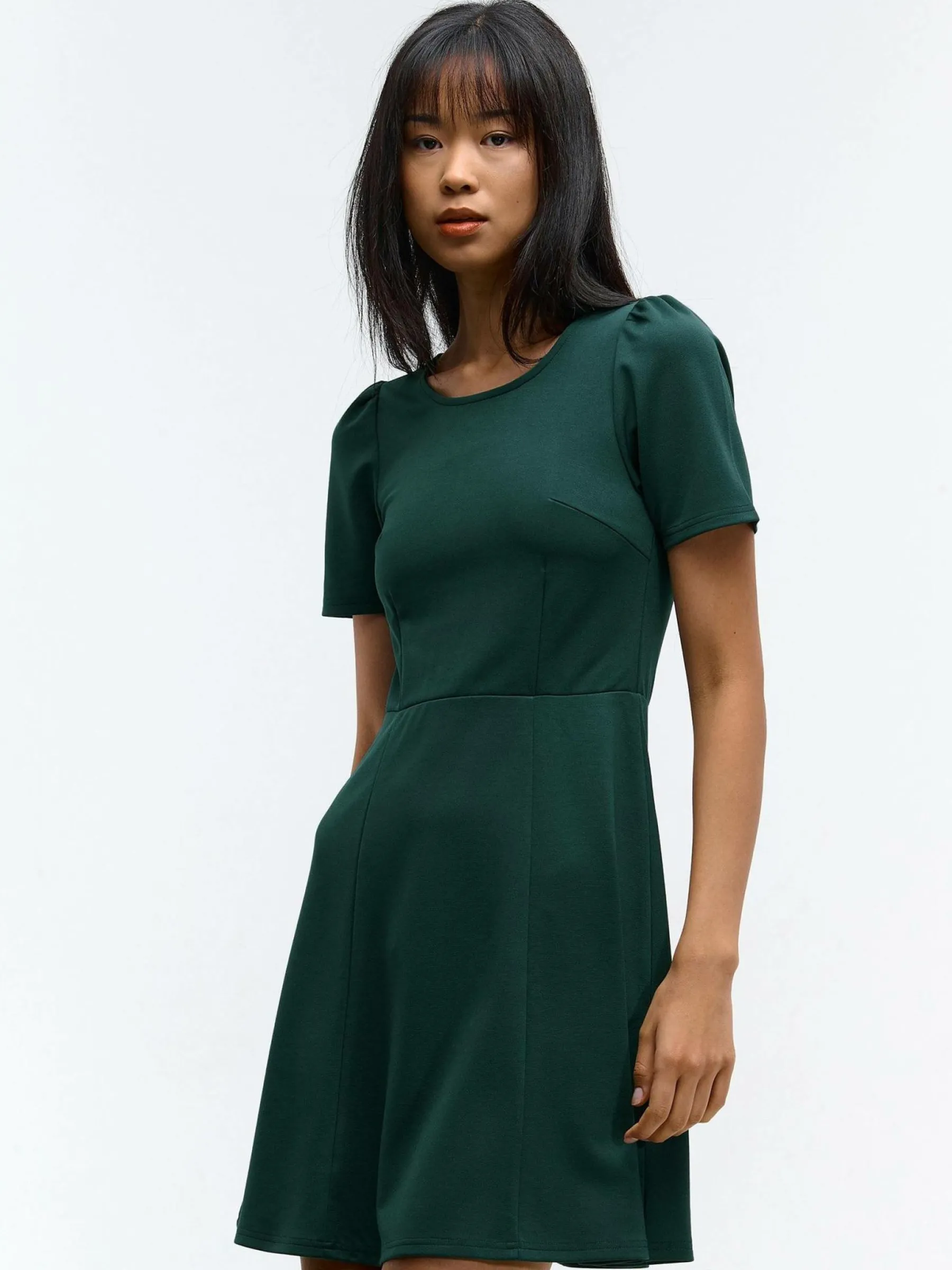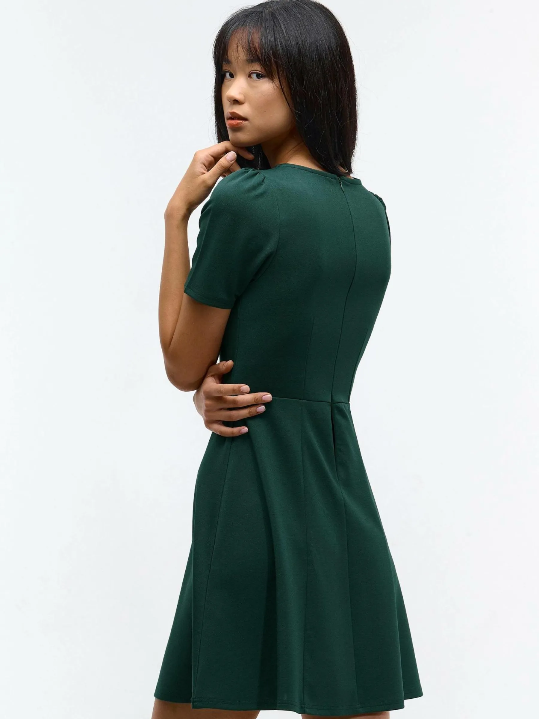 Kolor: zielonyKrój: asyTyp: sukienkaRekaw: krótki rękawDługość: miniPattern style: pojedynczy kolorDetal: na zamek…