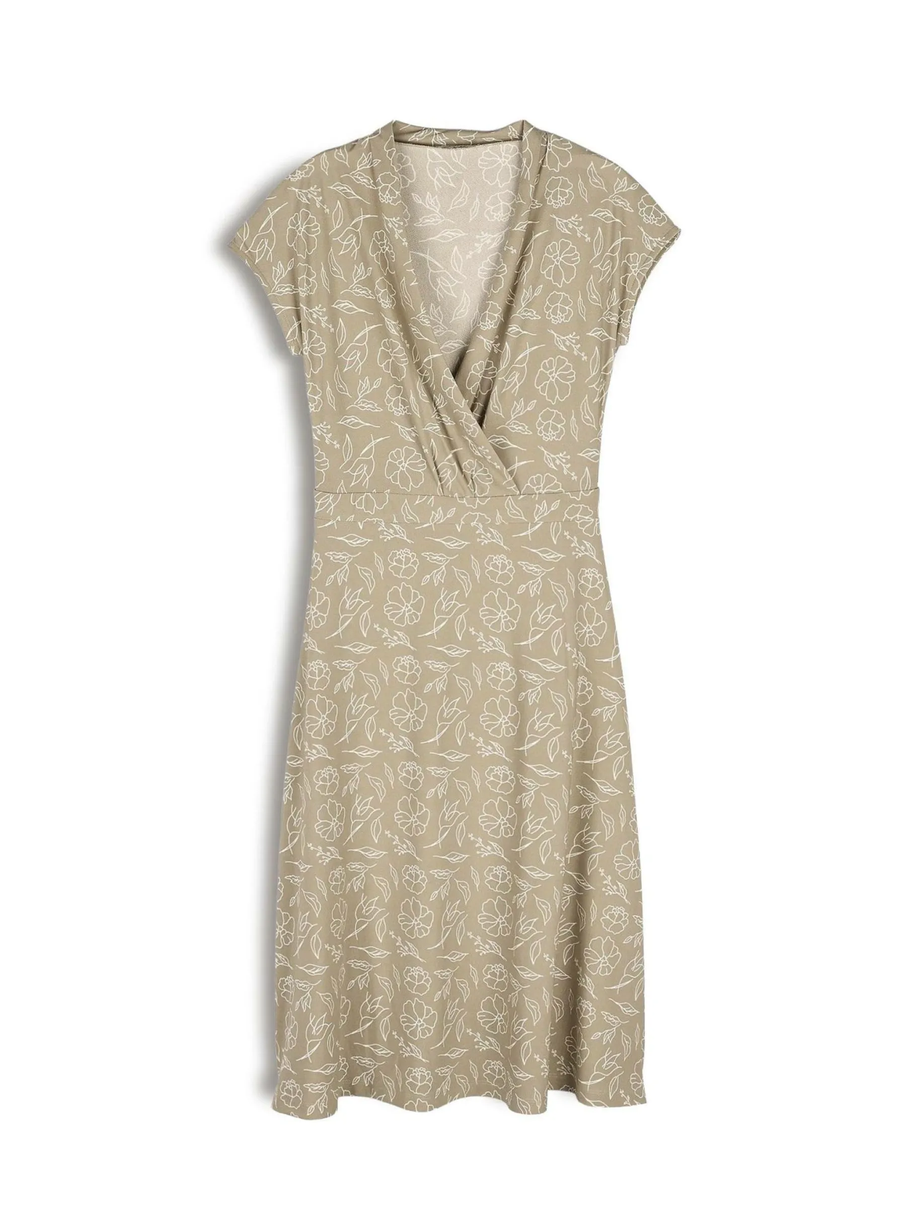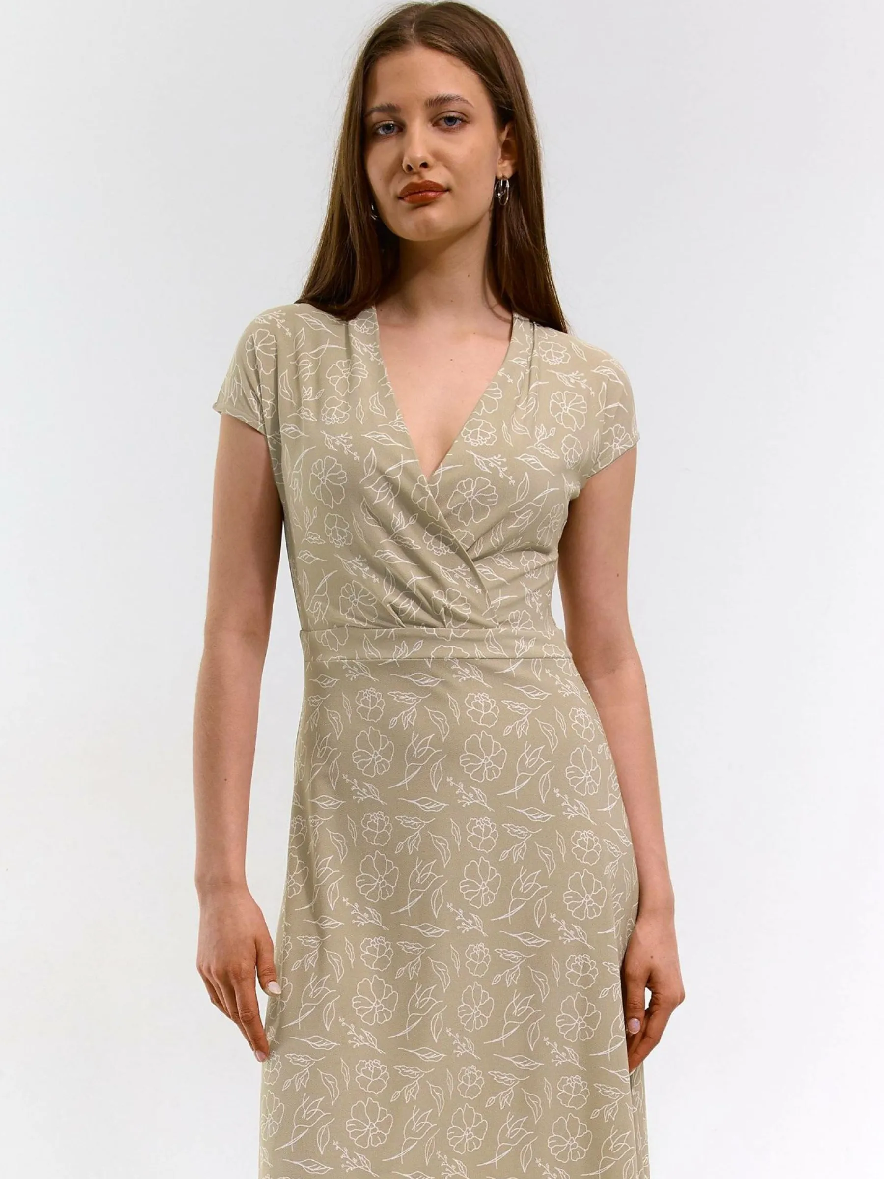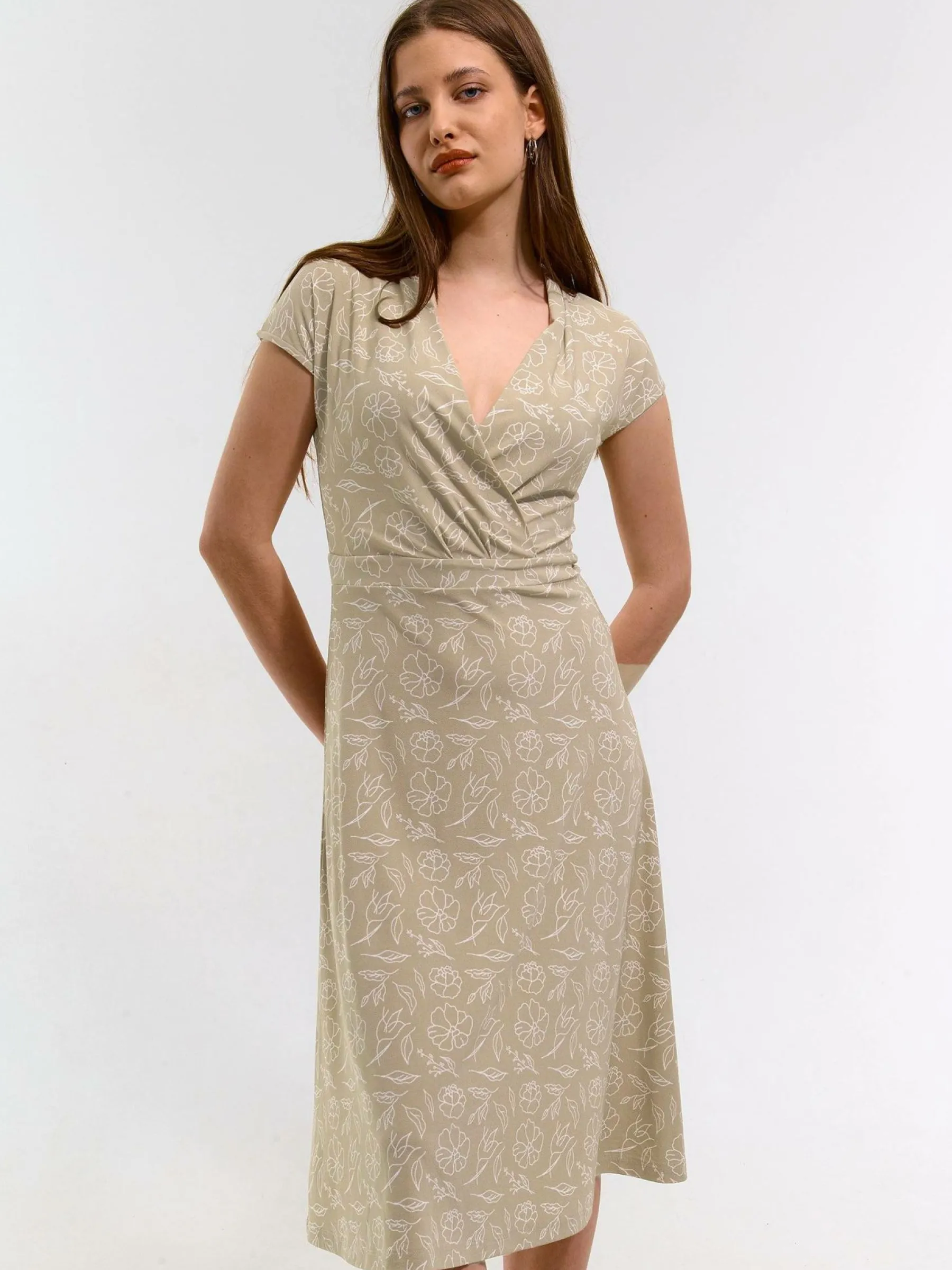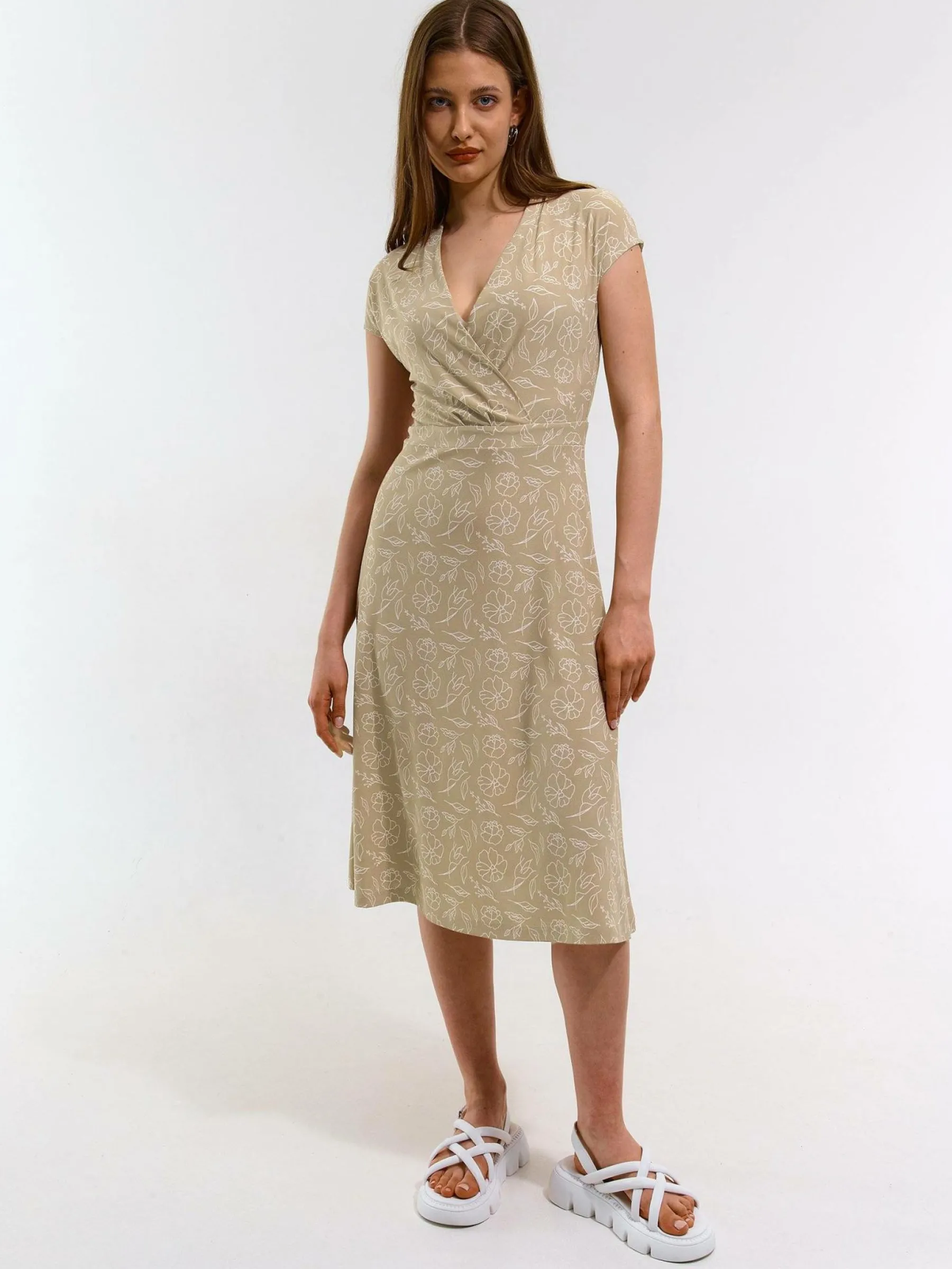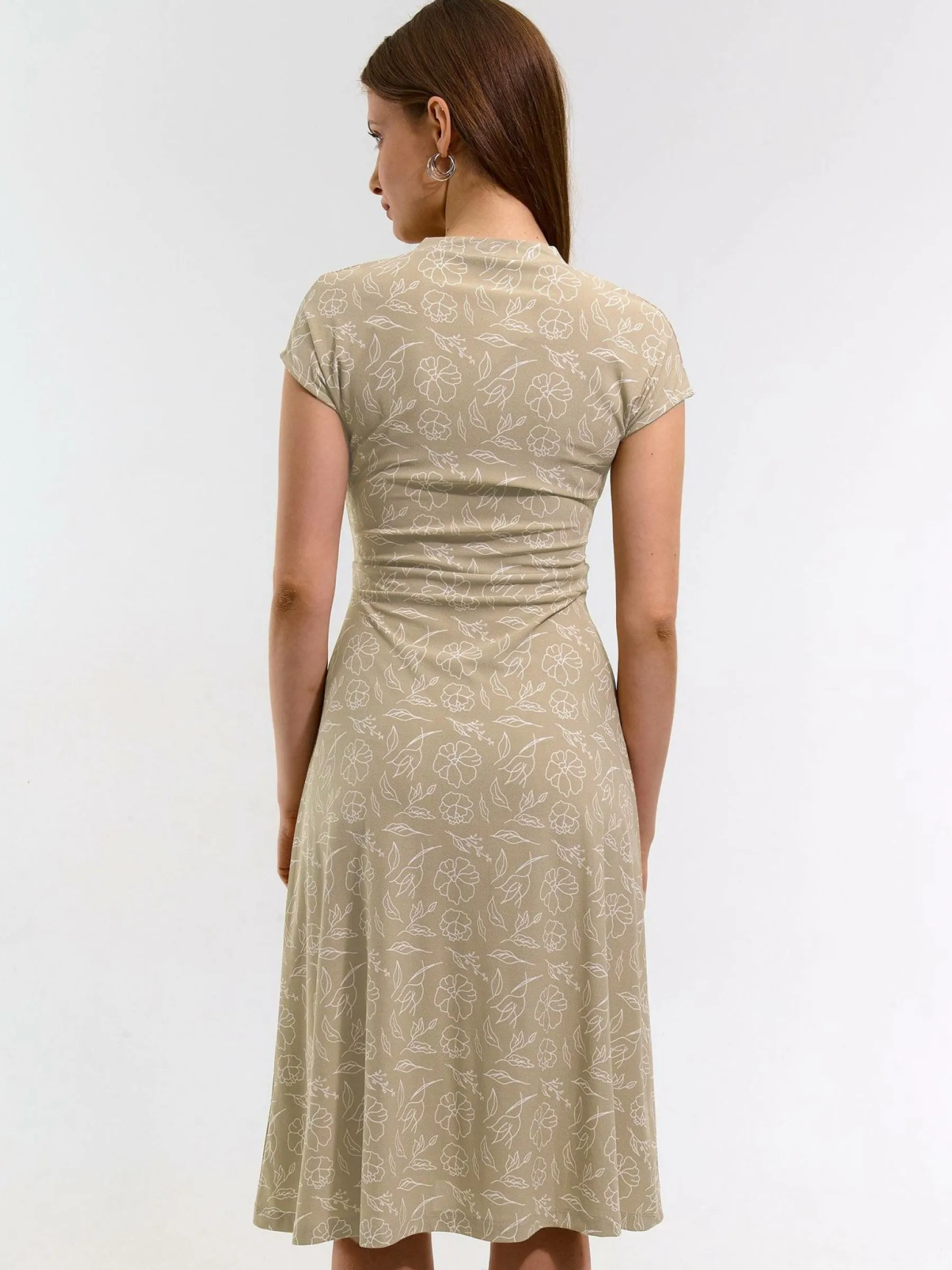 Kolor: beżowy, brązowyKrój: podstawowyTyp: sukienkaRekaw: bez rękawówDługość: midiPattern style: kwiatoweMateria…