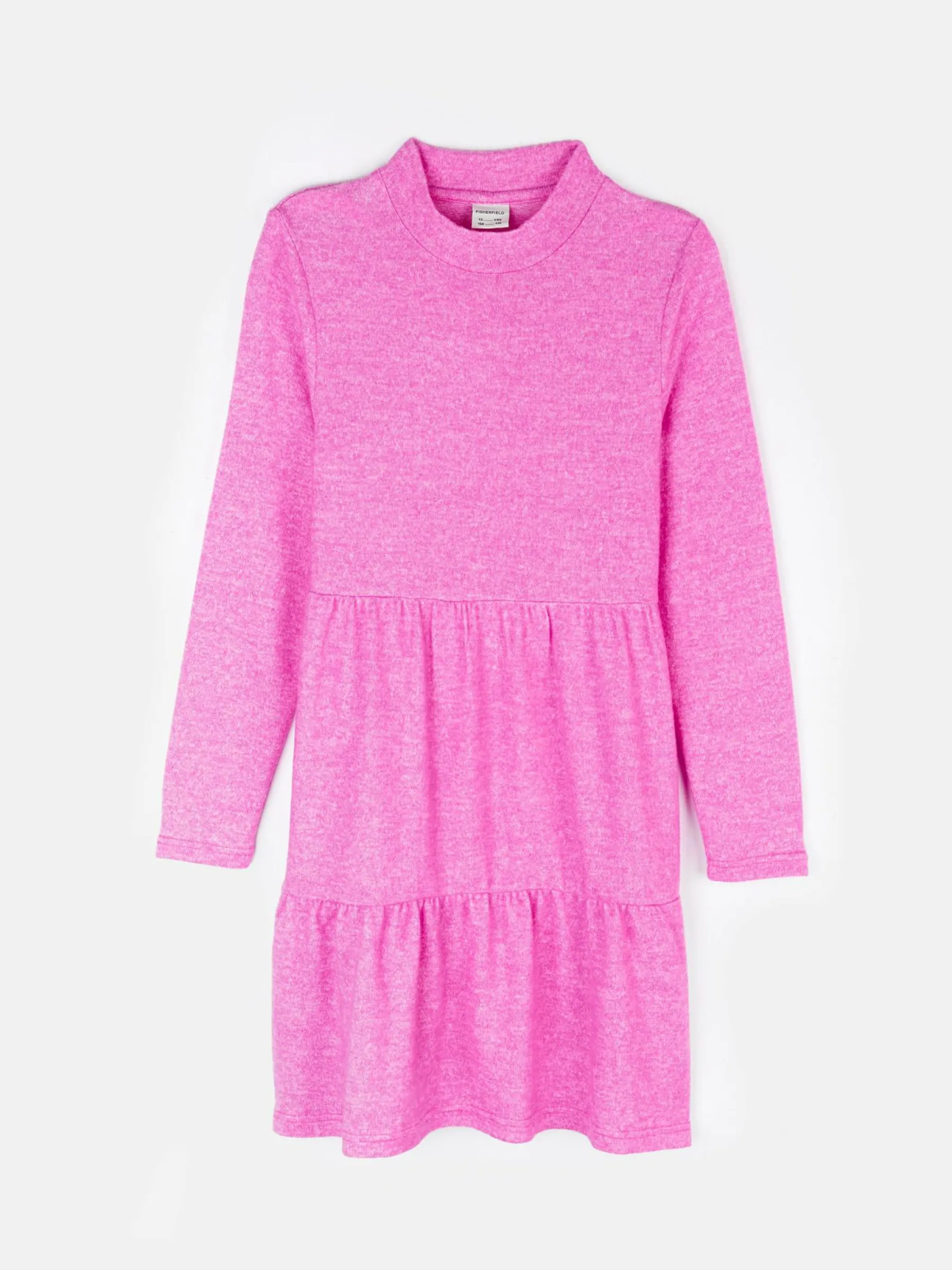 Kolor: różowy, purpurowyKrój: z falbanąTyp: sukienkaRekaw: długi rękawDługość: miniPattern style: podświetlony…
