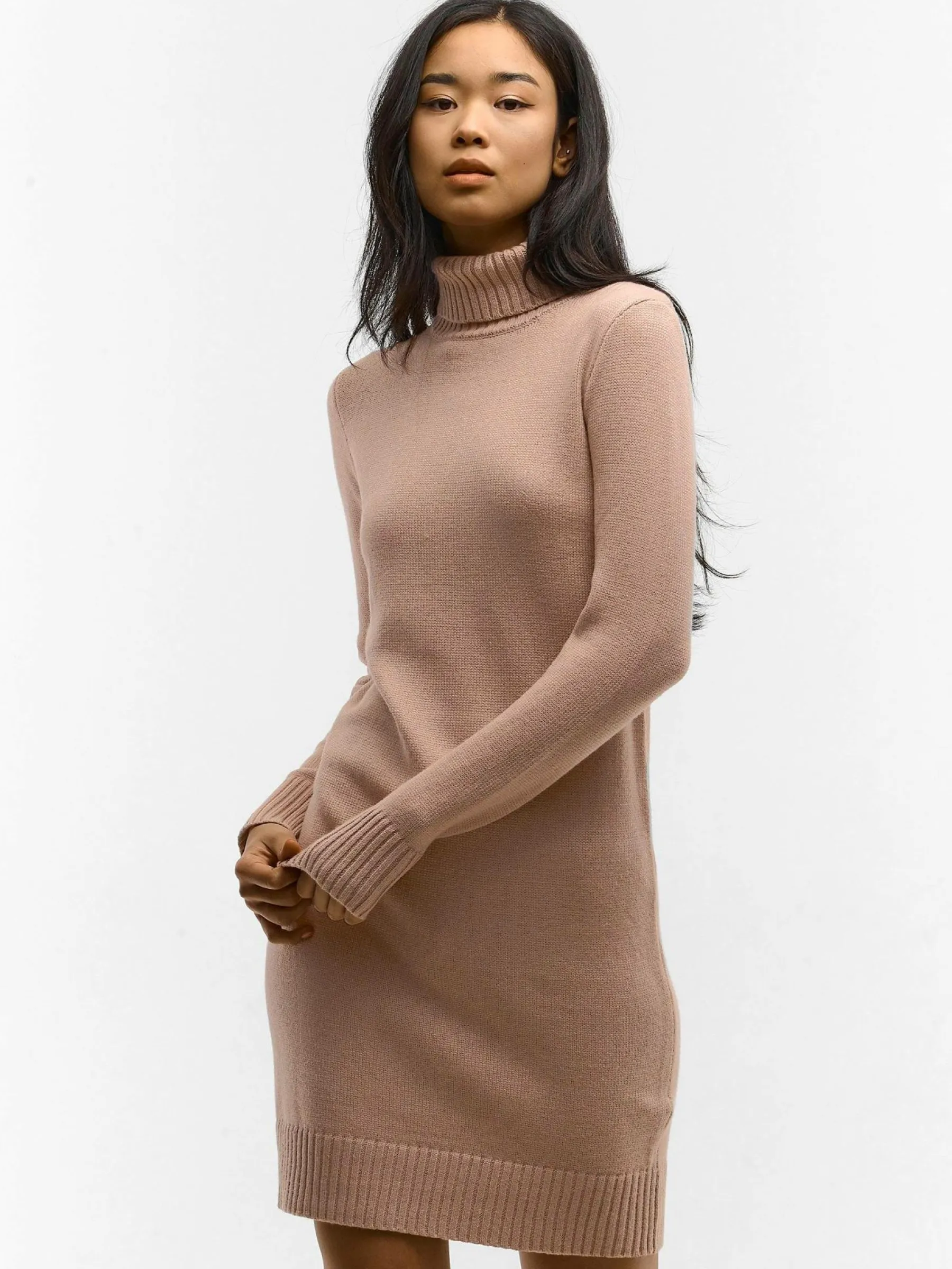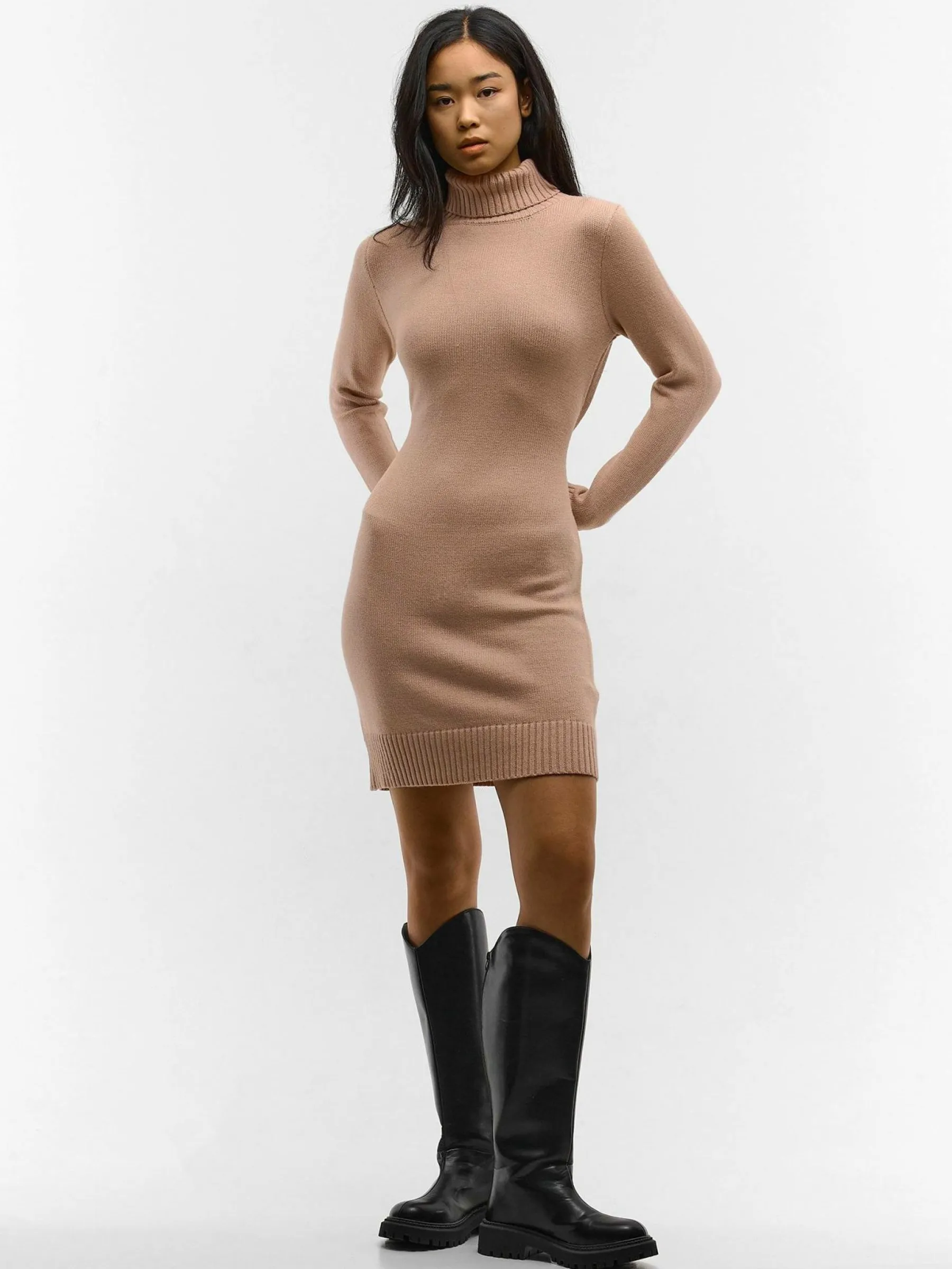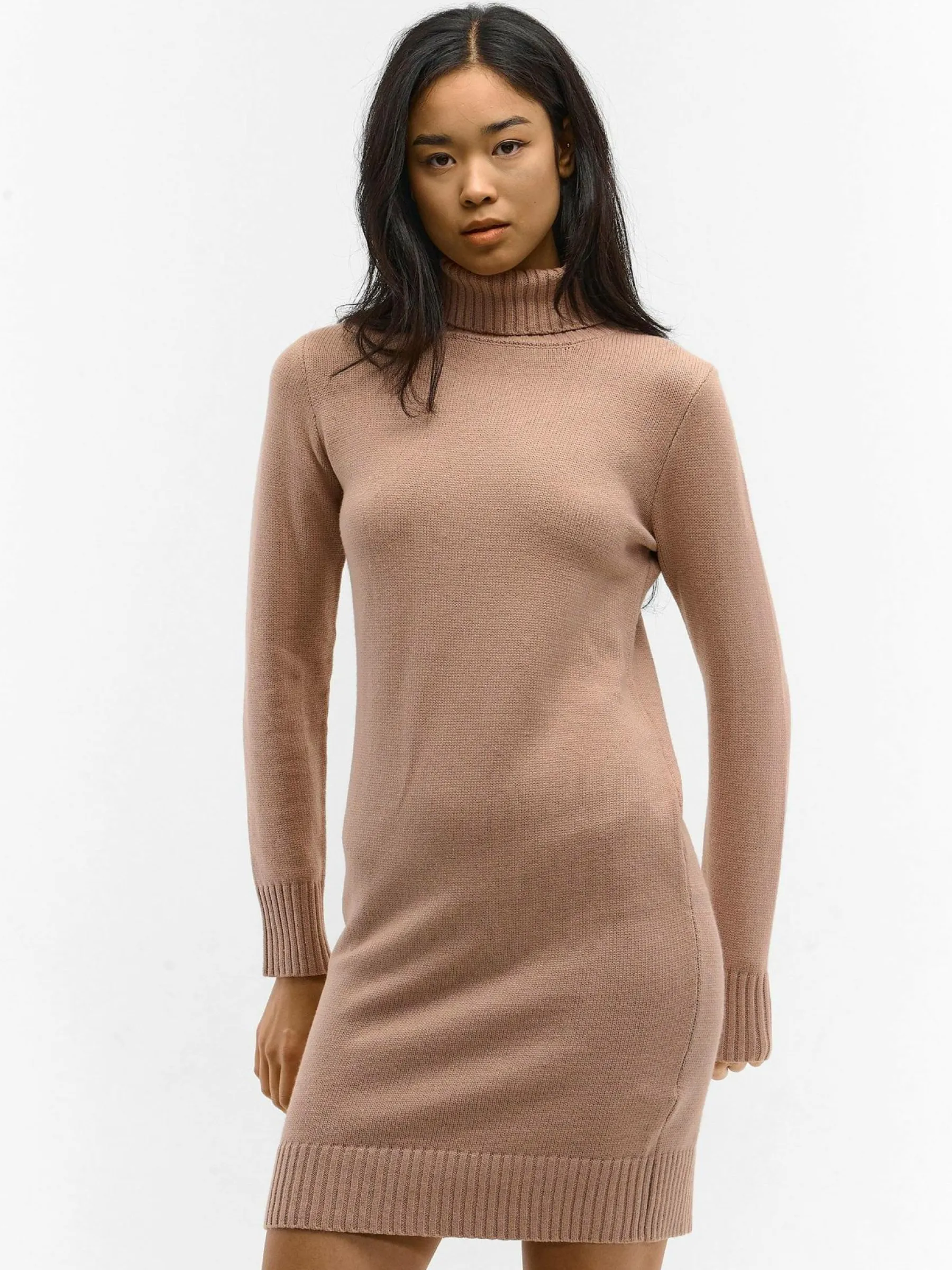 Kolor: beżowyKrój: regularTyp: sukienkaRekaw: długi rękawDługość: miniPattern style: pojedynczy kolorDetal: nad g…