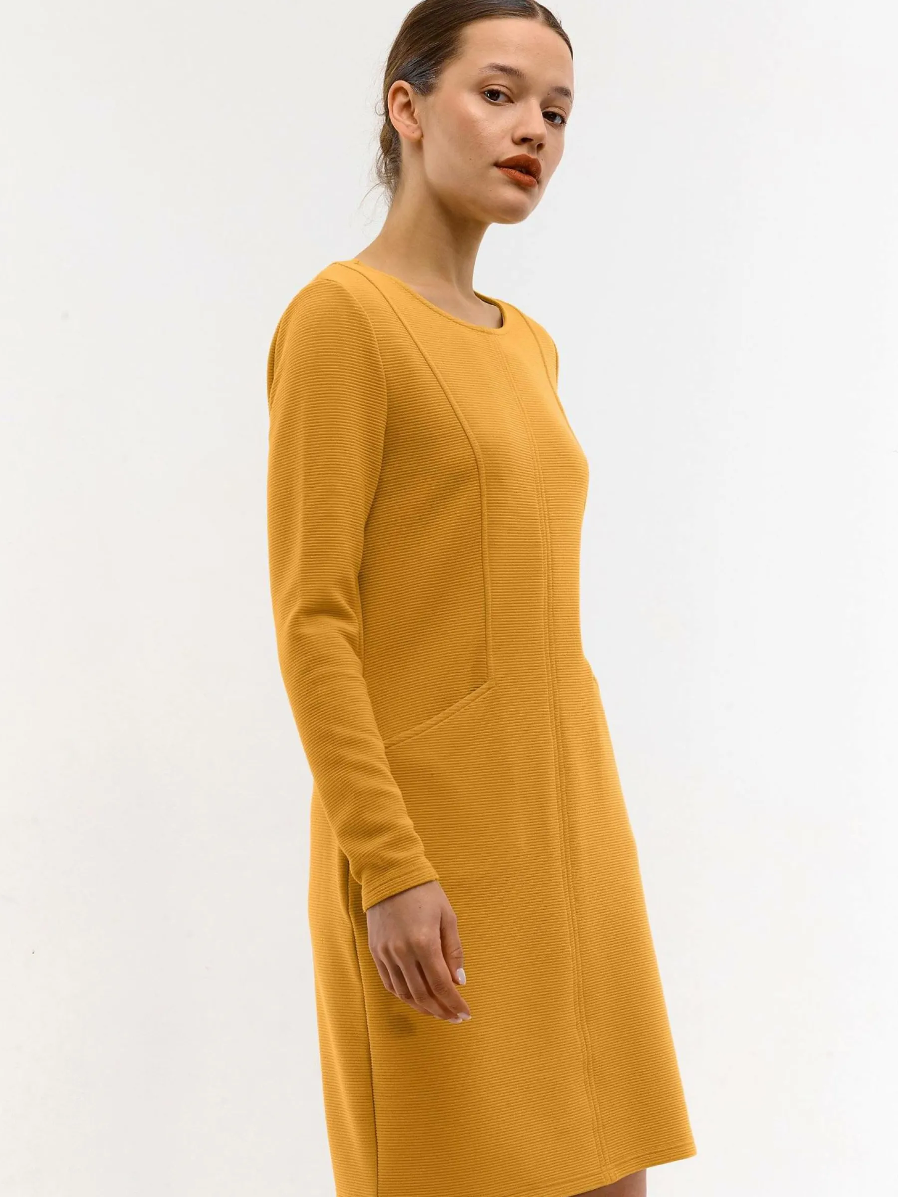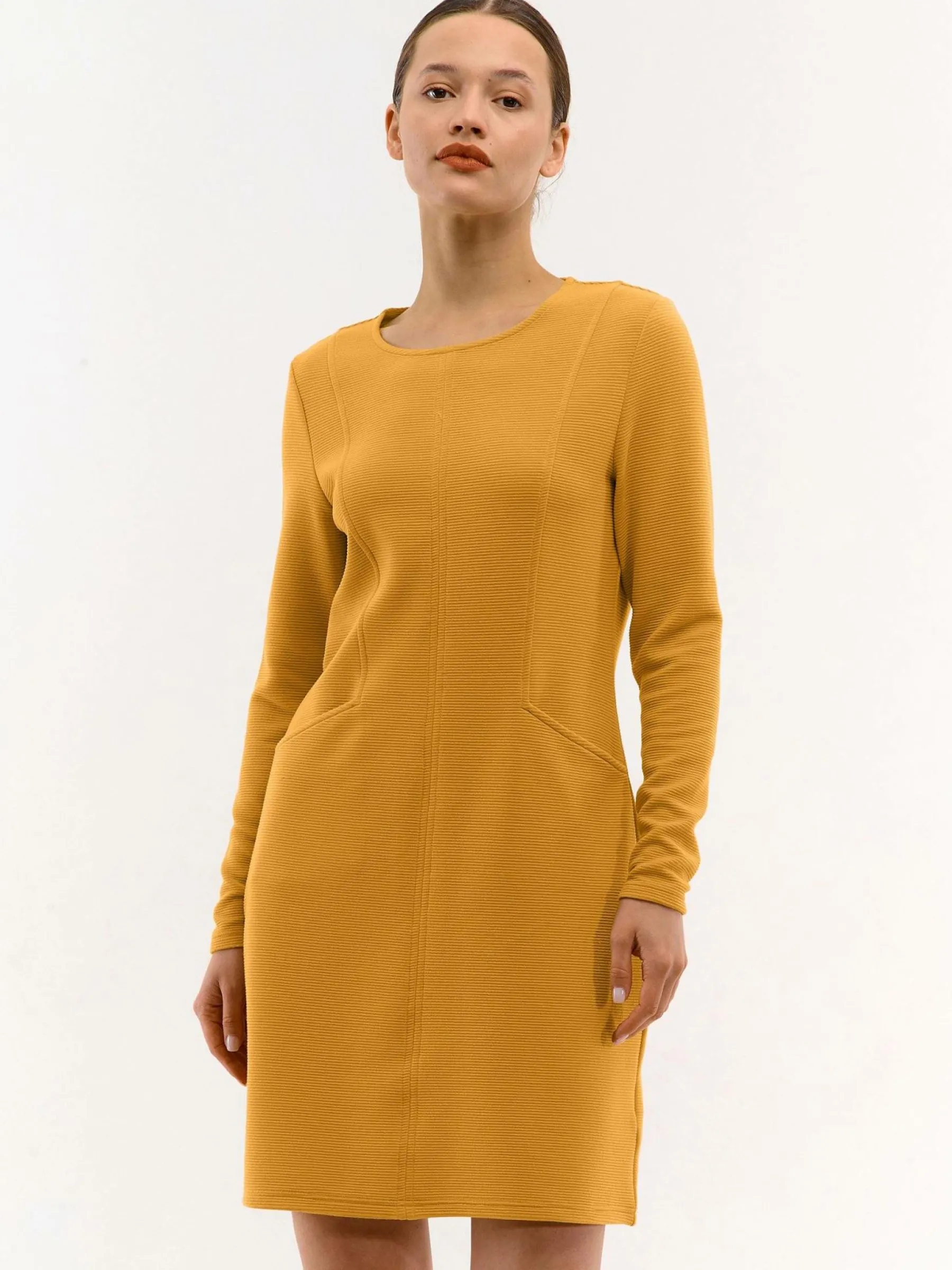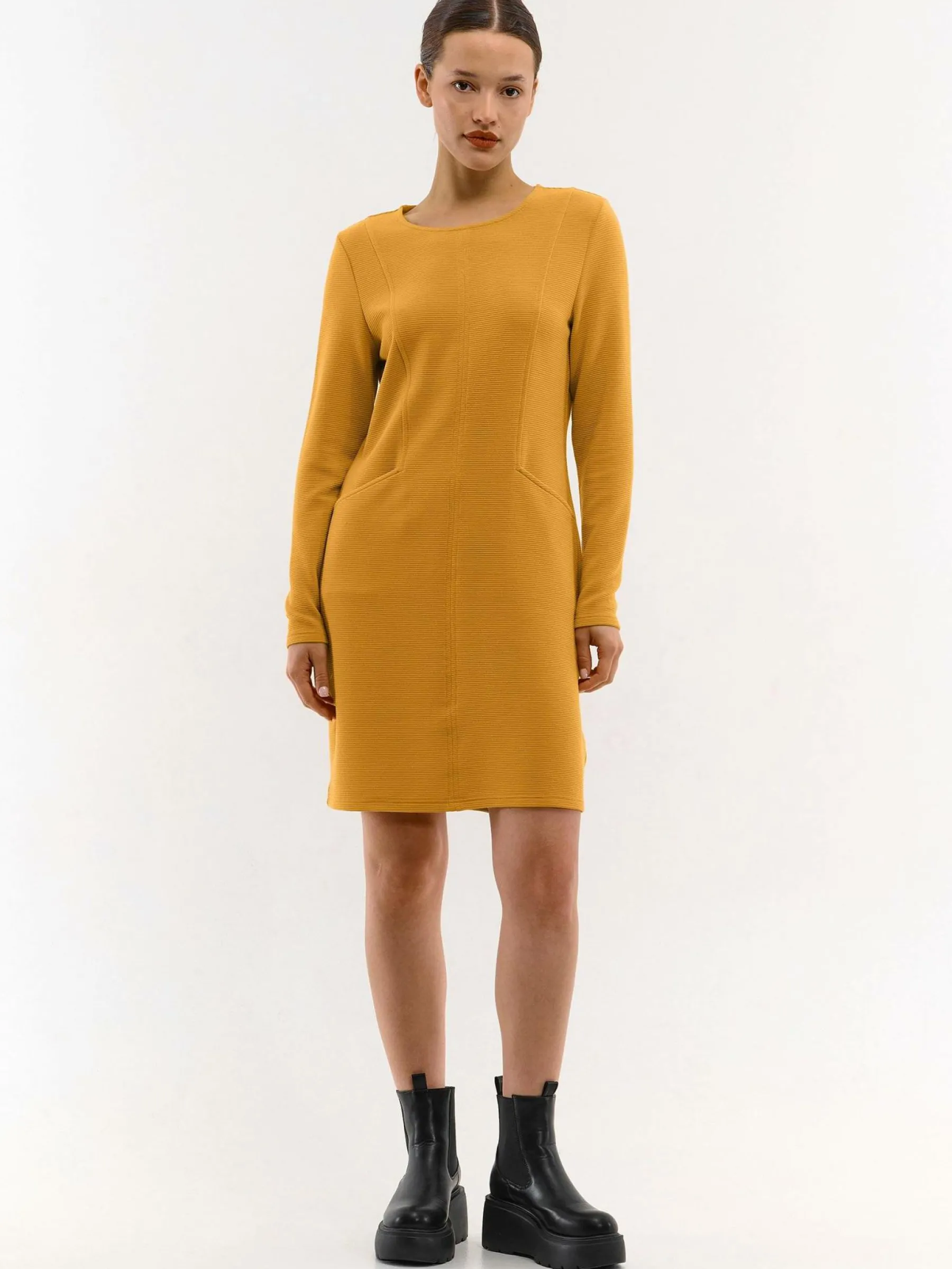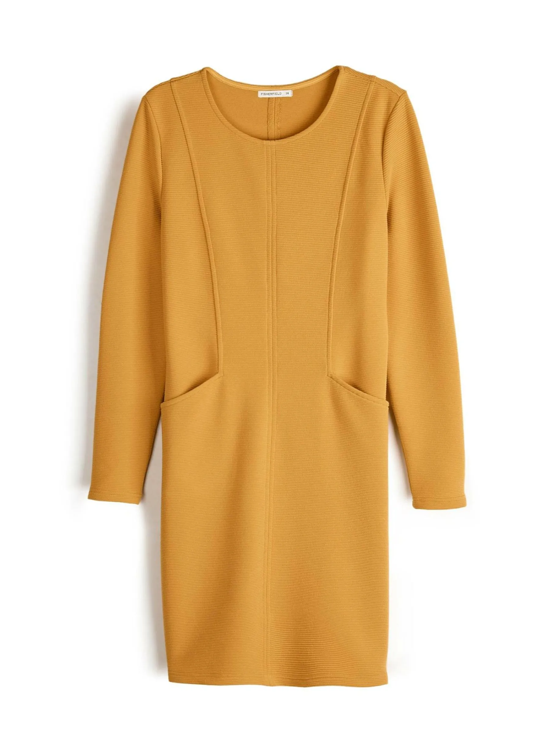 Kolor: pomarańczowyKrój: regularTyp: sukienkaRekaw: długi rękawDługość: miniPattern style: pojedynczy kolor, żeb…