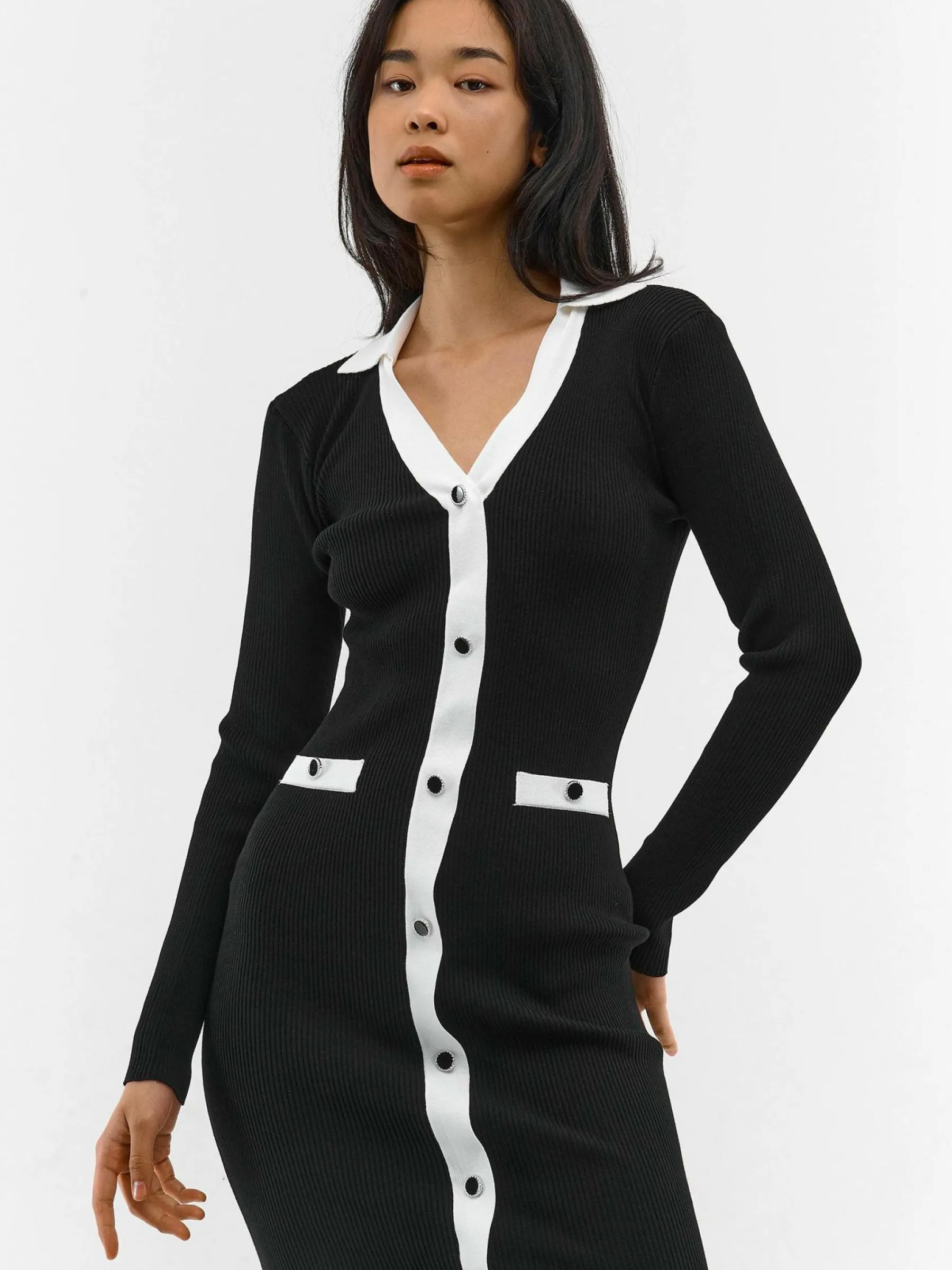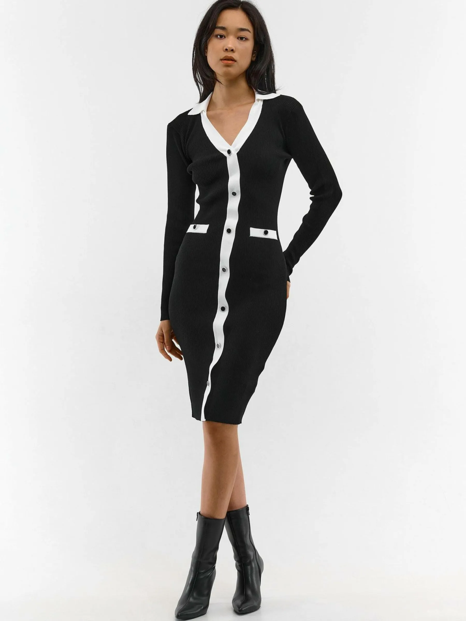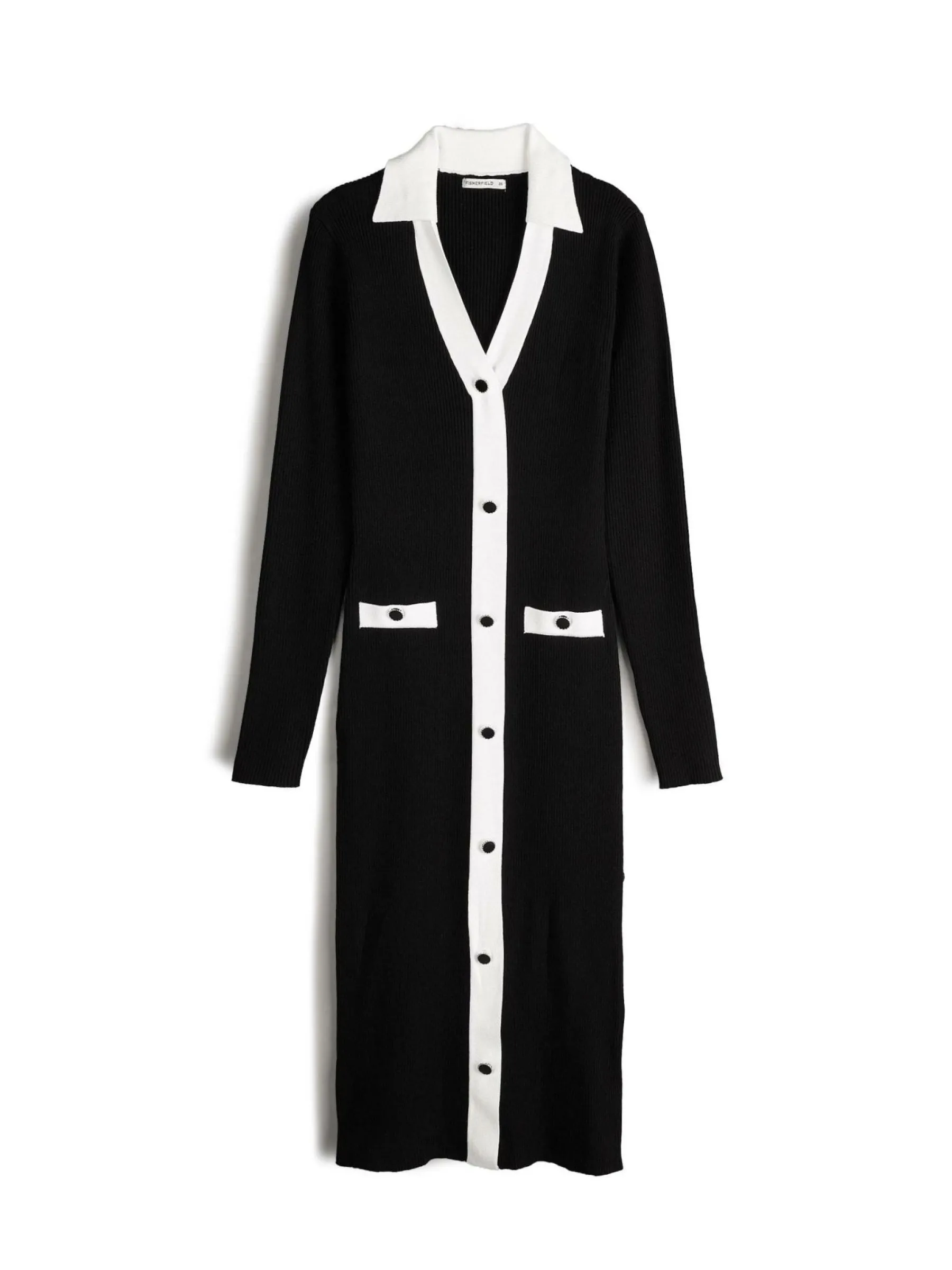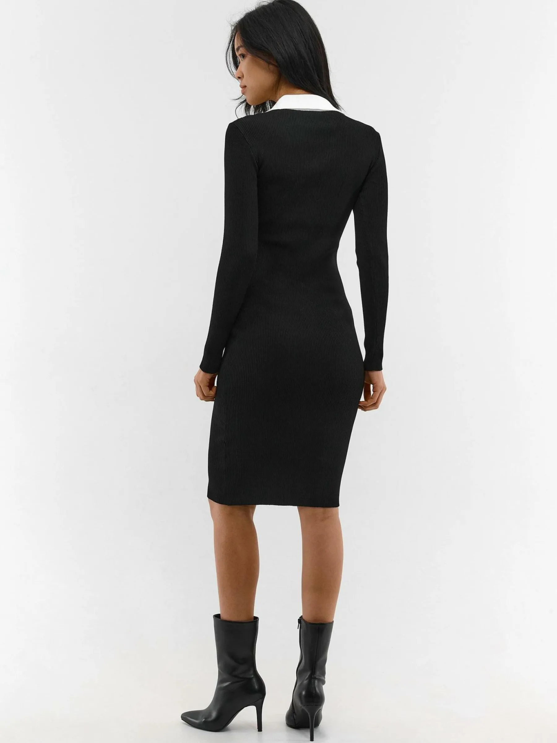 Kolor: czarnyKrój: ołówkoweTyp: sukienkaRekaw: długi rękawDługość: midiPattern style: pojedynczy kolorDetal: na …