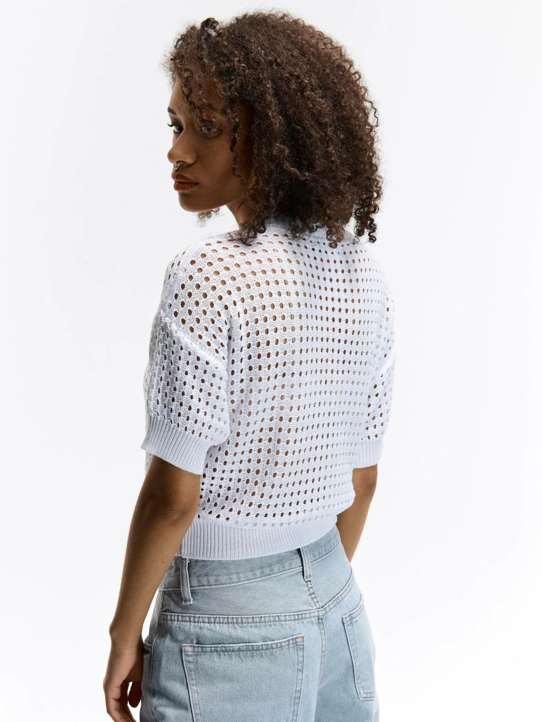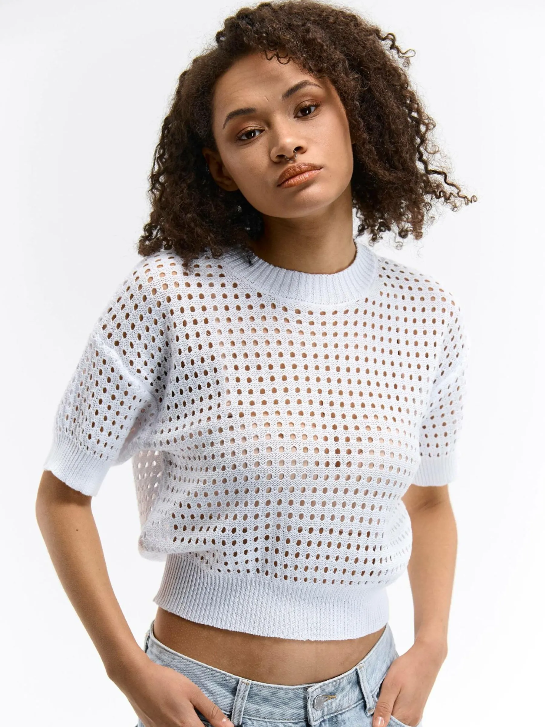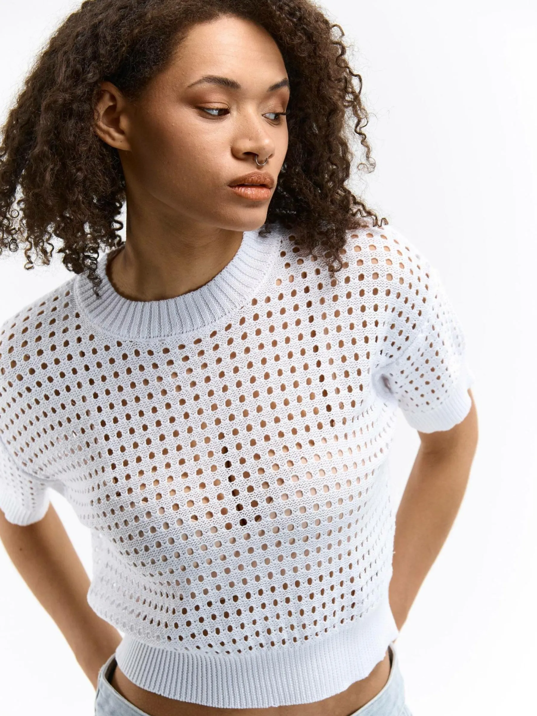 Kolor: białyKrój: regularTyp: top, swetryRekaw: krótki rękawDługość: krótkiPattern style: pojedynczy kolorDetal:…