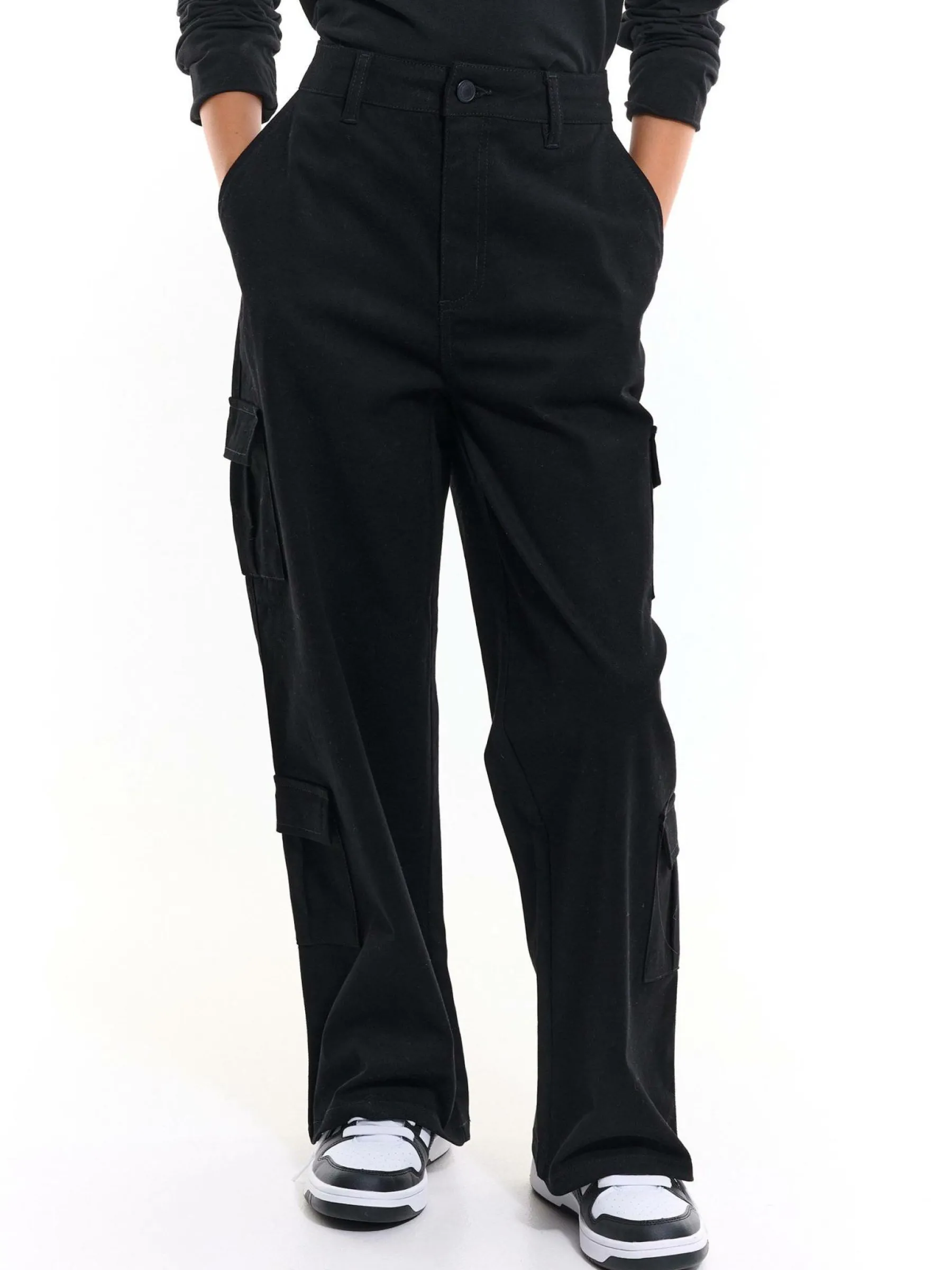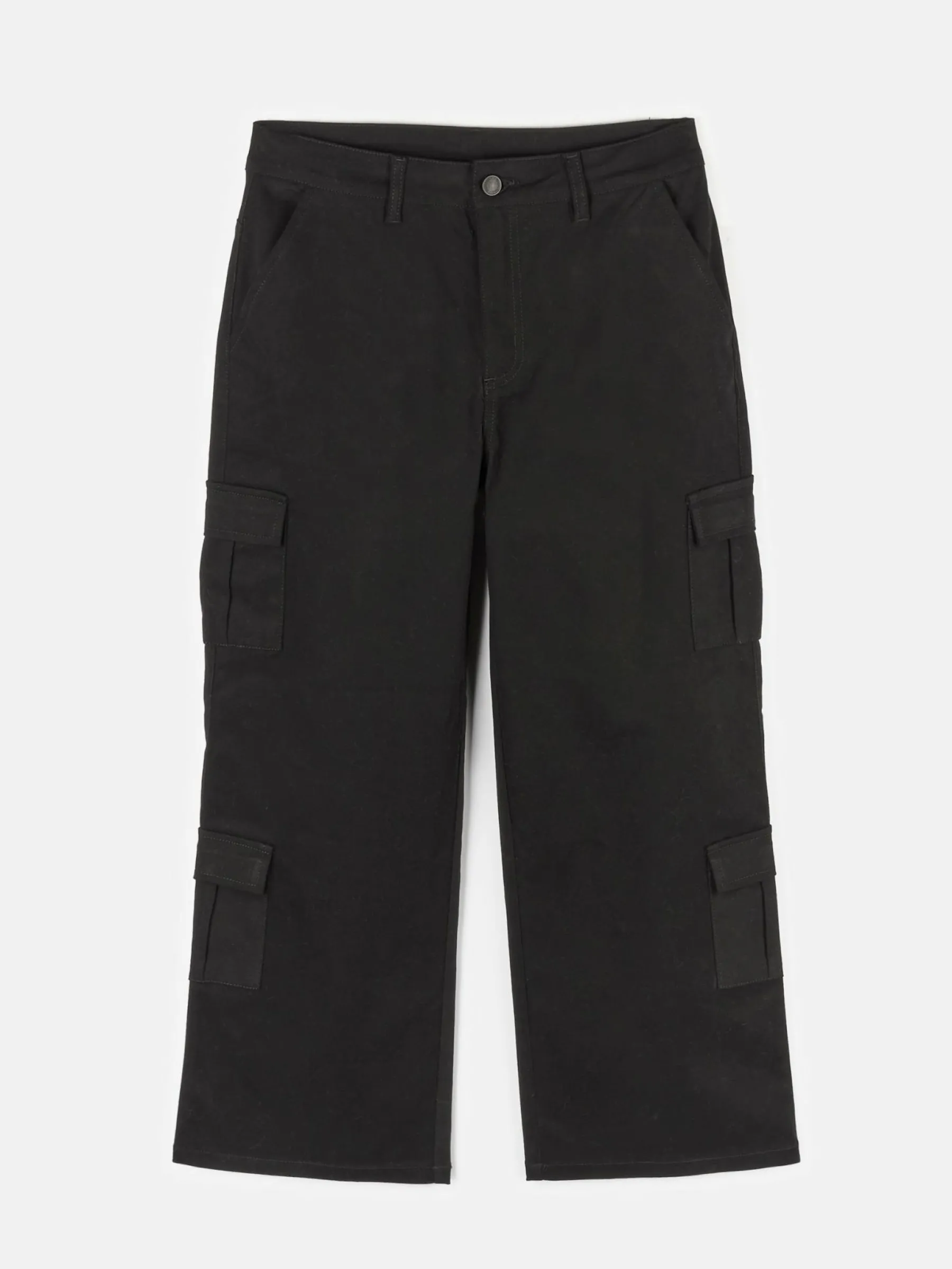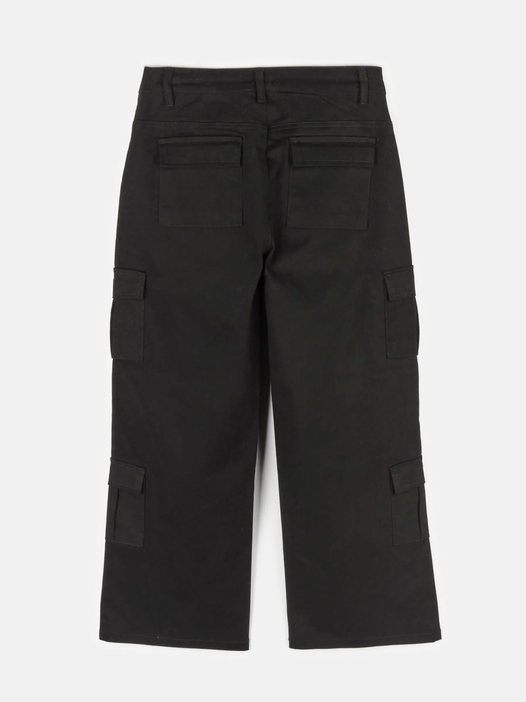 Kolor: czarnyKrój: szerokieTyp: spodnieDługość: dlugiePattern style: pojedynczy kolorMateriał: bawełnaPłeć: dzie…