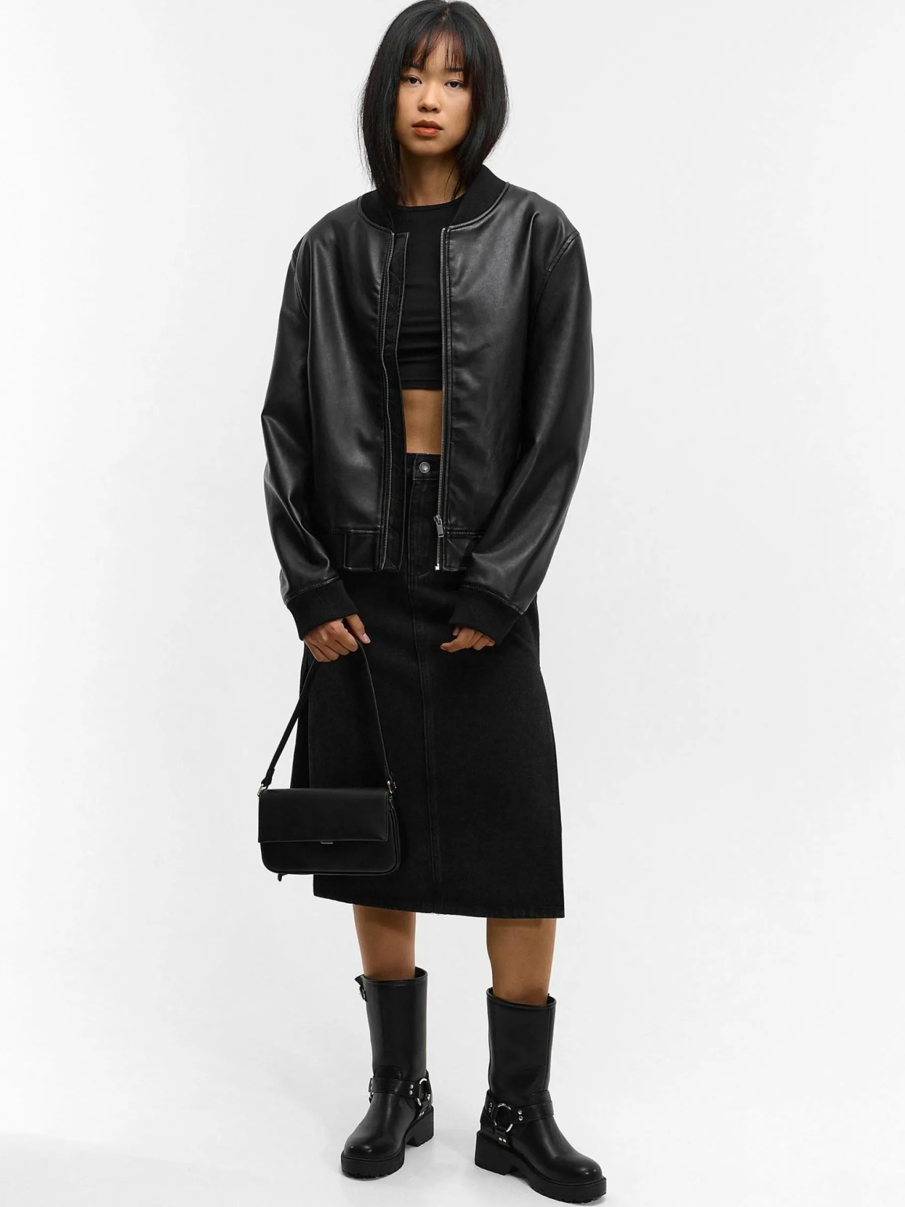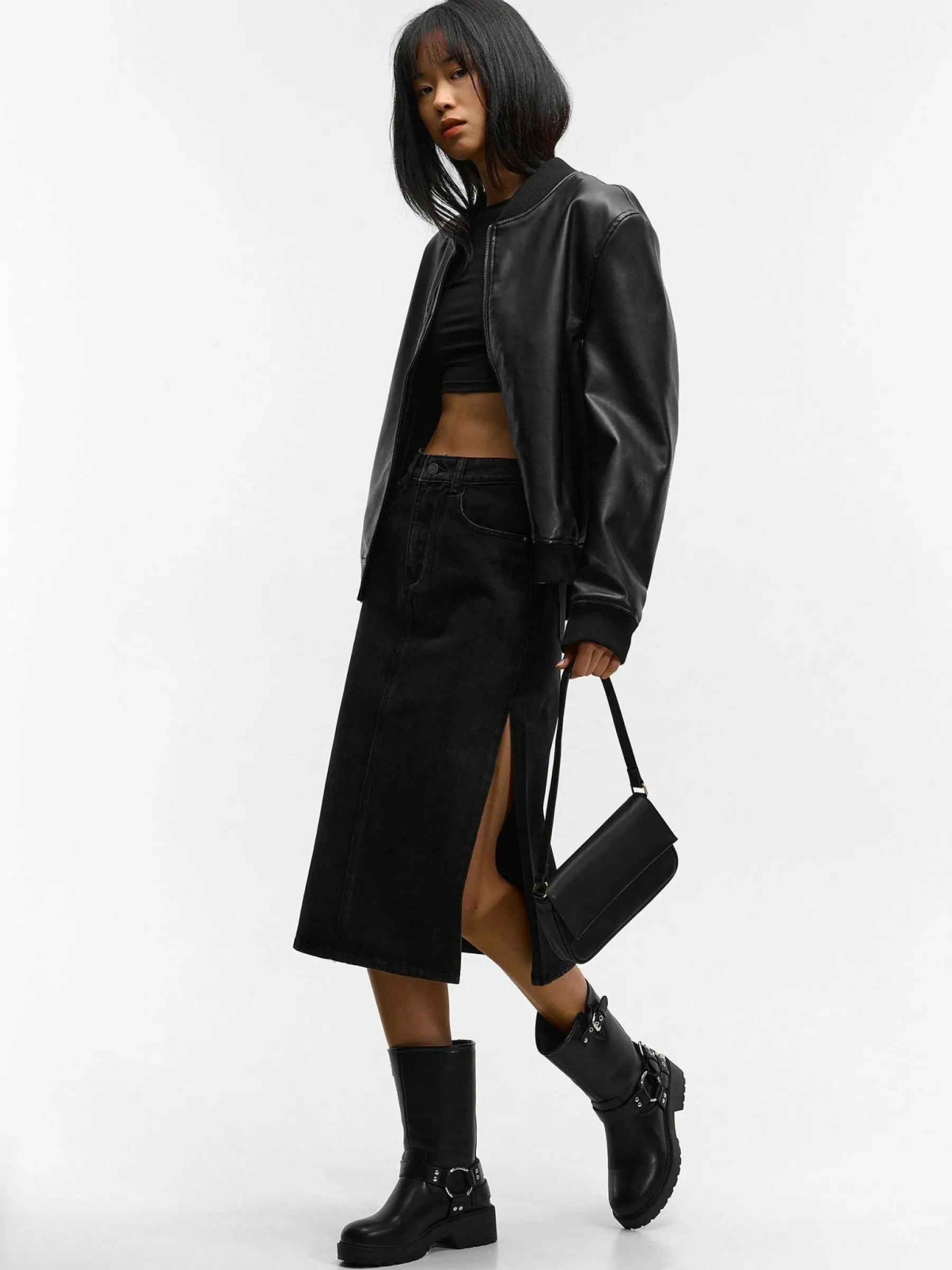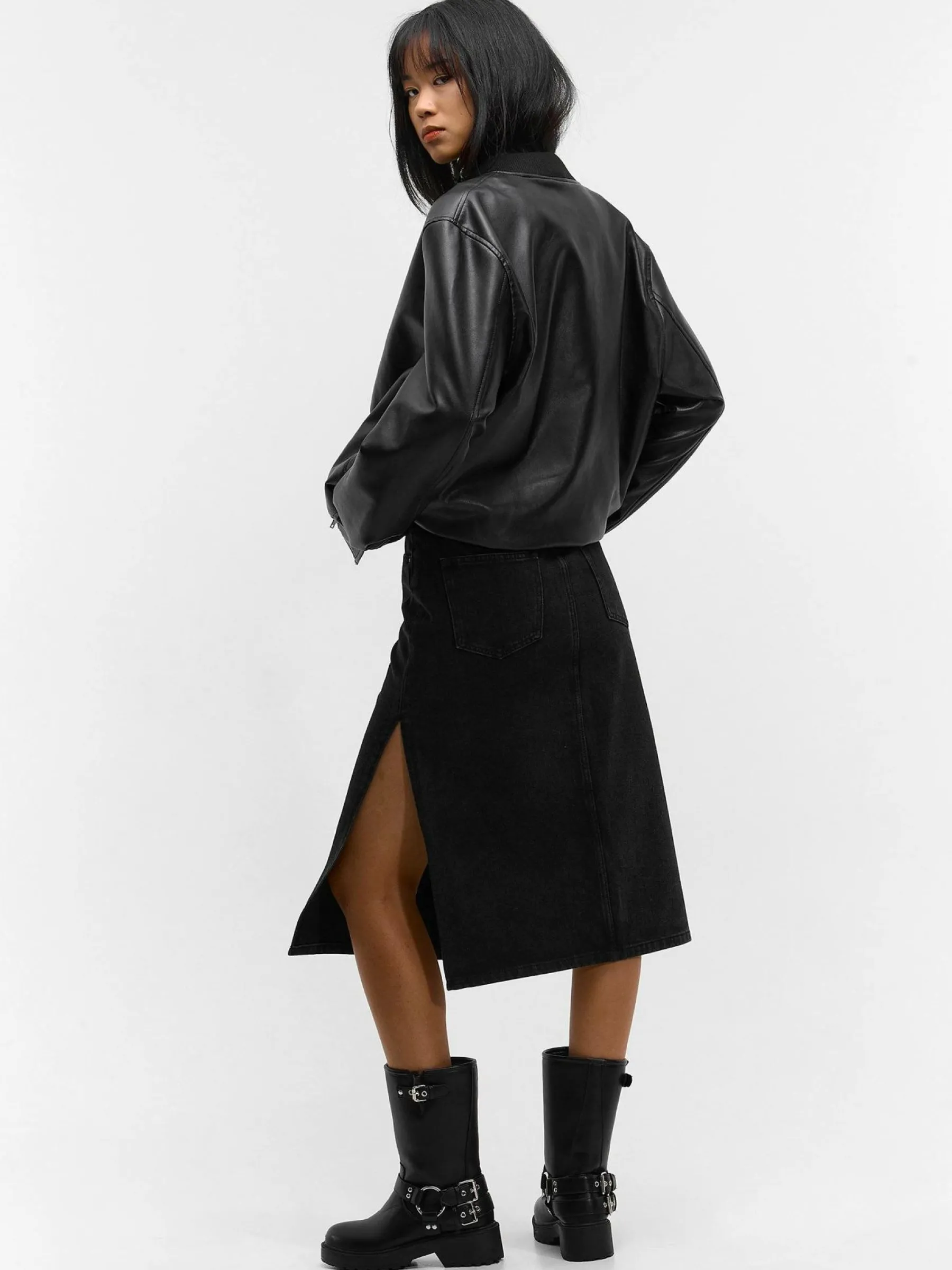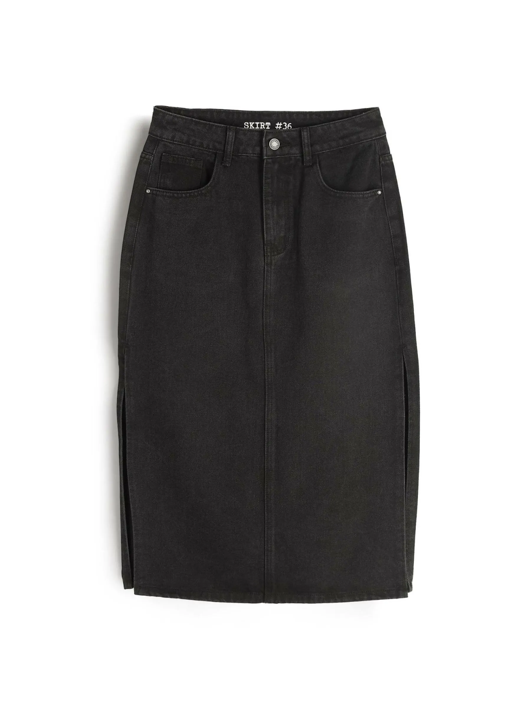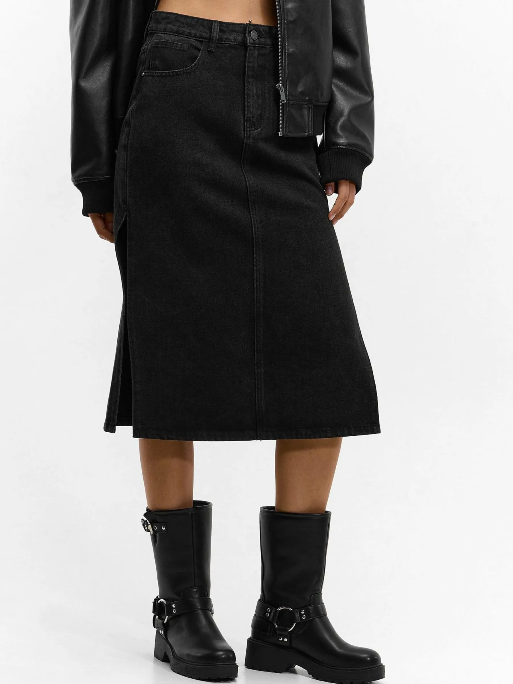 Kolor: czarnyKrój: podstawowyTyp: spódnicaDługość: midiPattern style: pojedynczy kolorDetal: z rozcięciem, na zame…