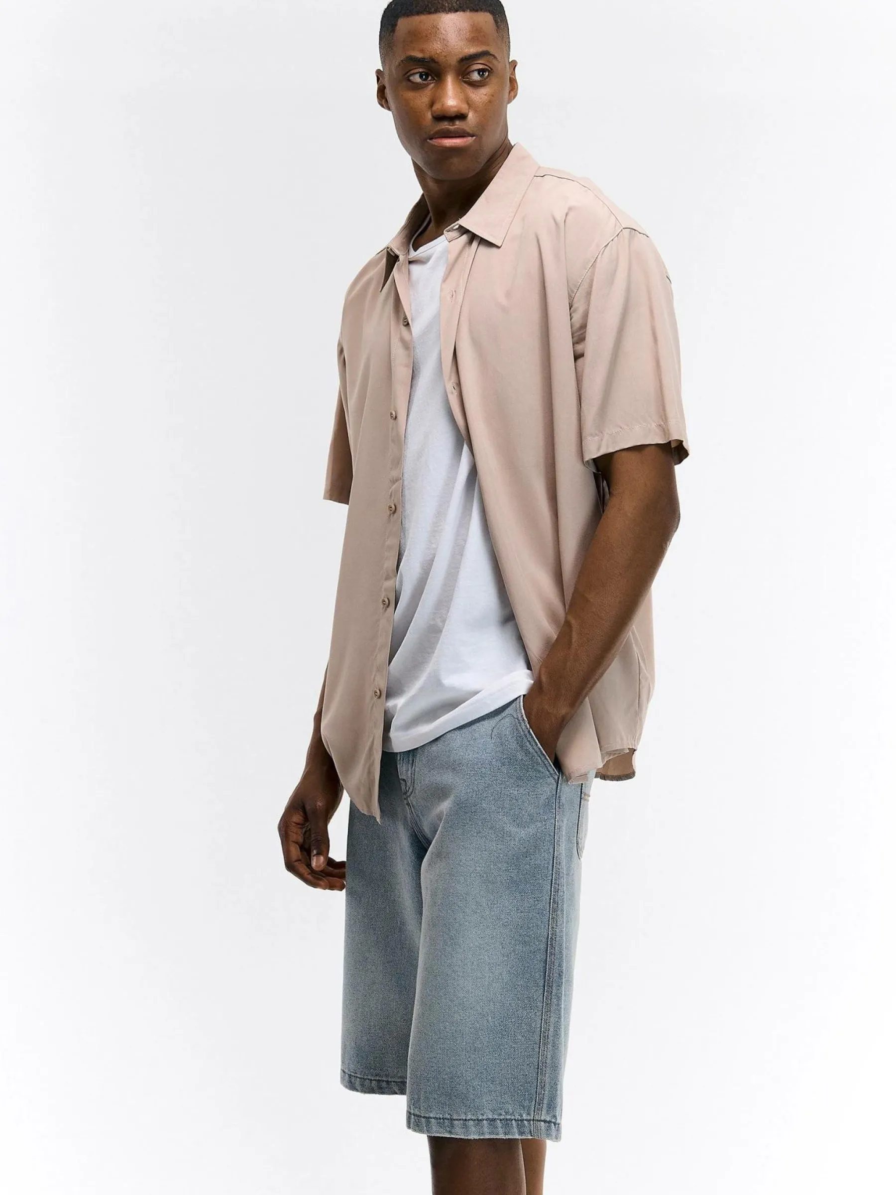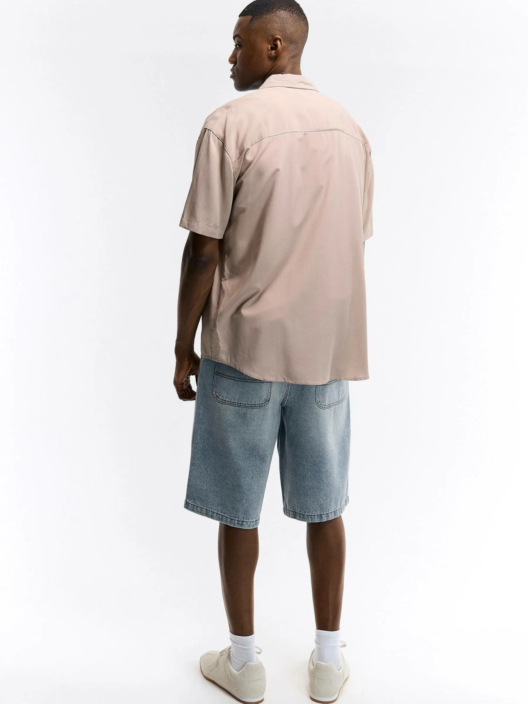 Kolor: niebieskiKrój: skaterTyp: spodenkiDługość: krótkiPattern style: pojedynczy kolorDetal: na zamek, z kieszenia…