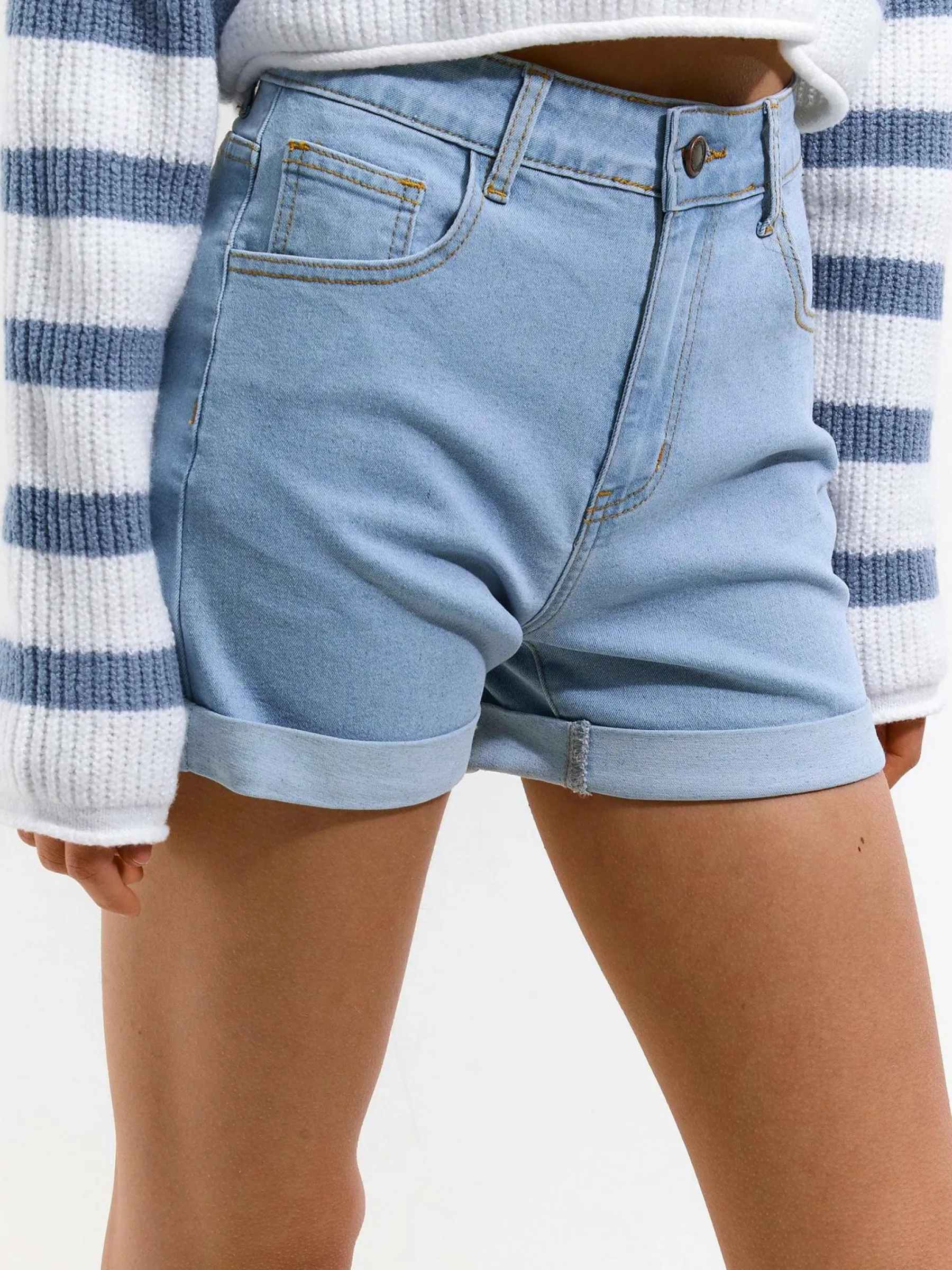 Kolor: niebieskiKrój: straightTyp: spodenkiDługość: krótkiPattern style: pojedynczy kolorMateriał: dżinsowePłeć…