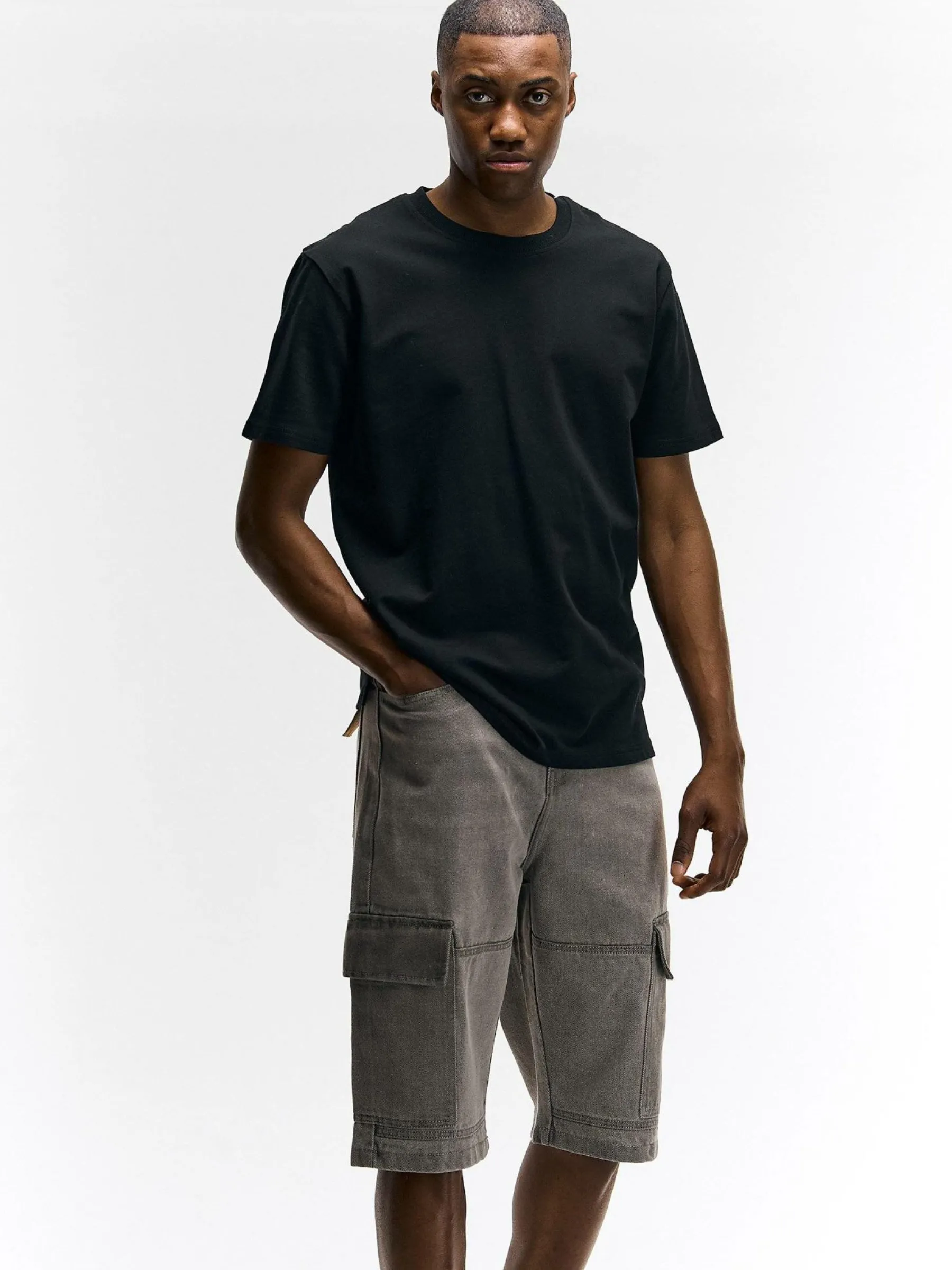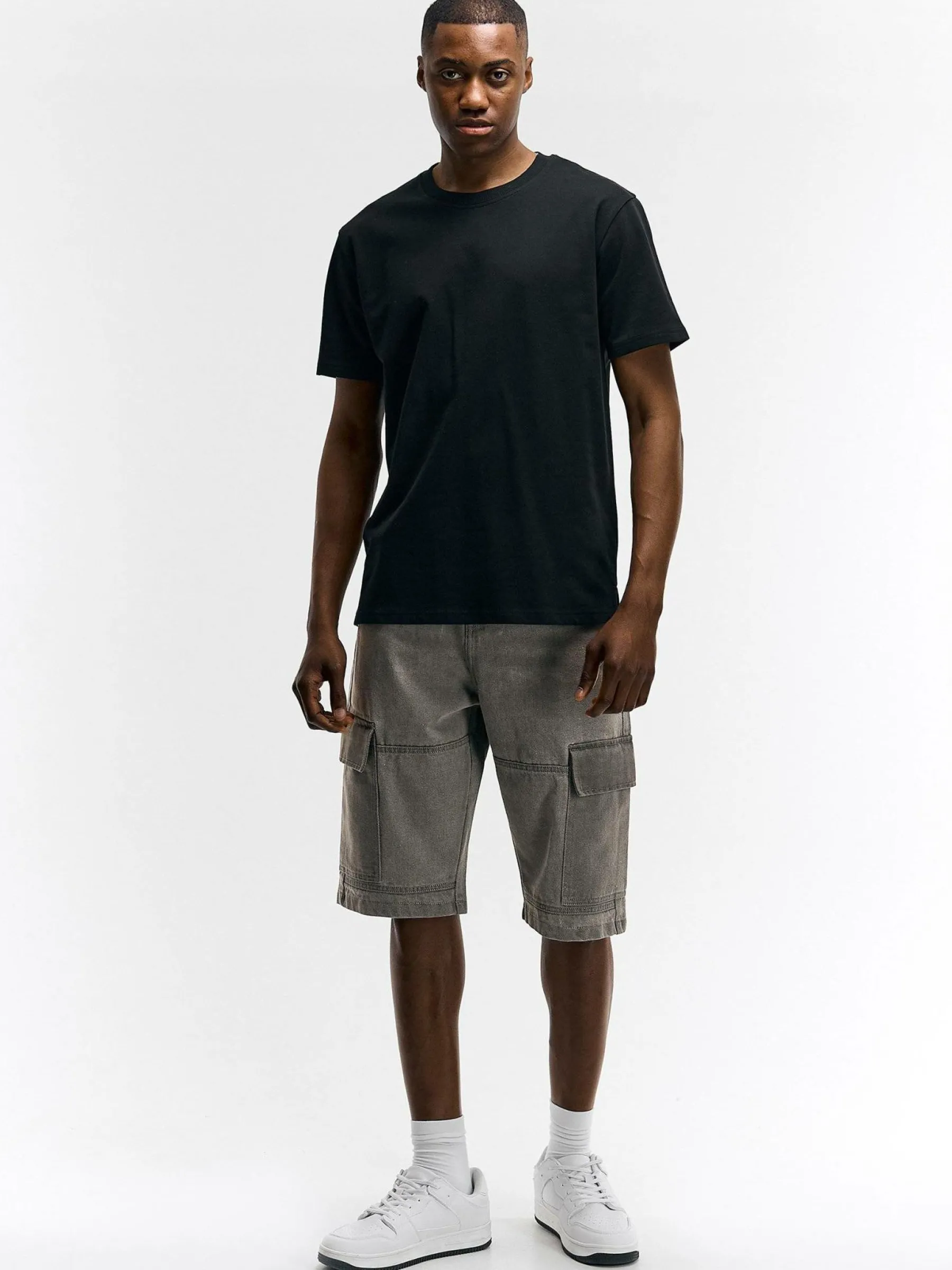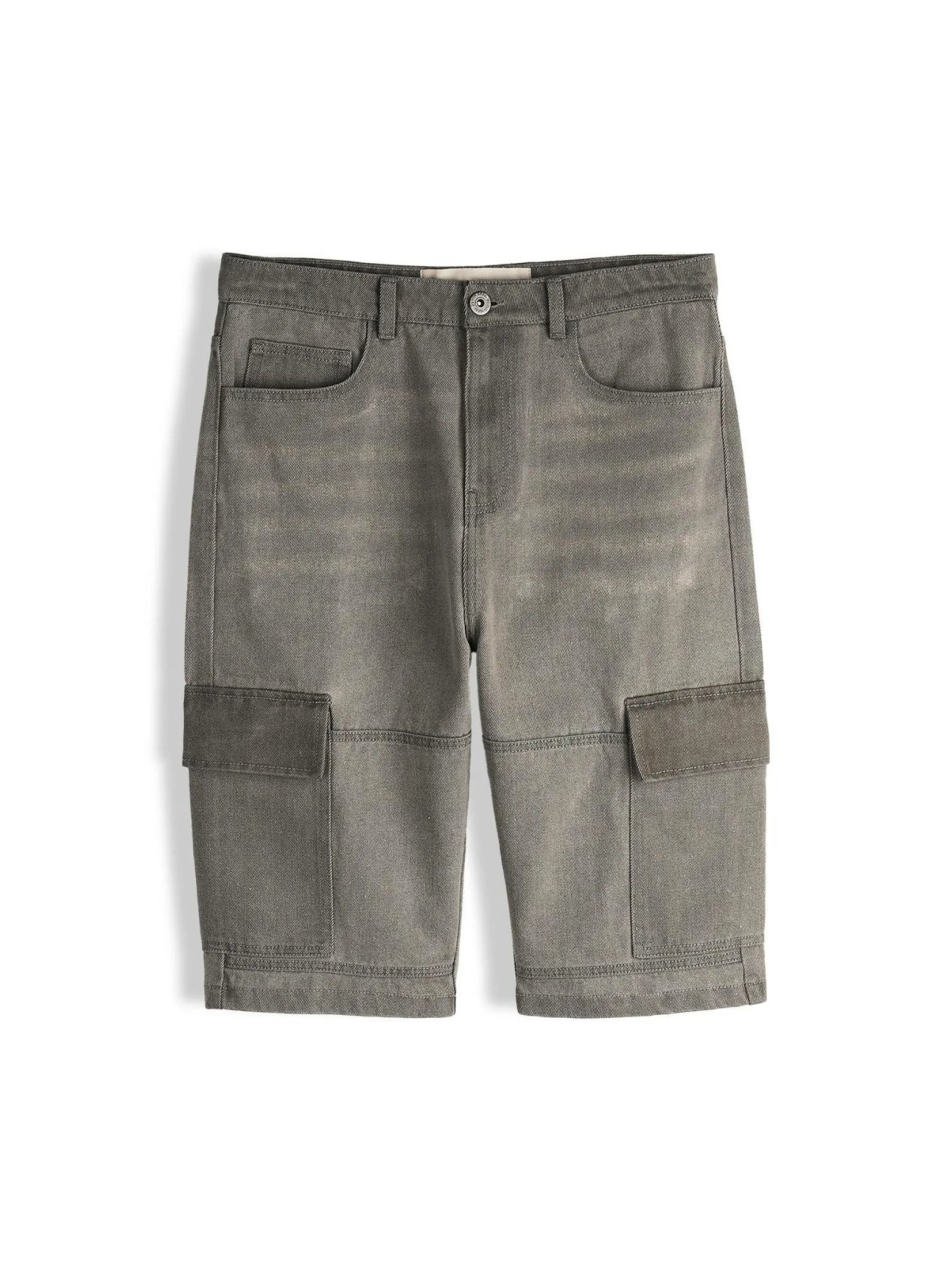 Kolor: szaryKrój: cargoTyp: spodenkiDługość: krótkiPattern style: pojedynczy kolorDetal: na zamek, z kieszeniamiMat…