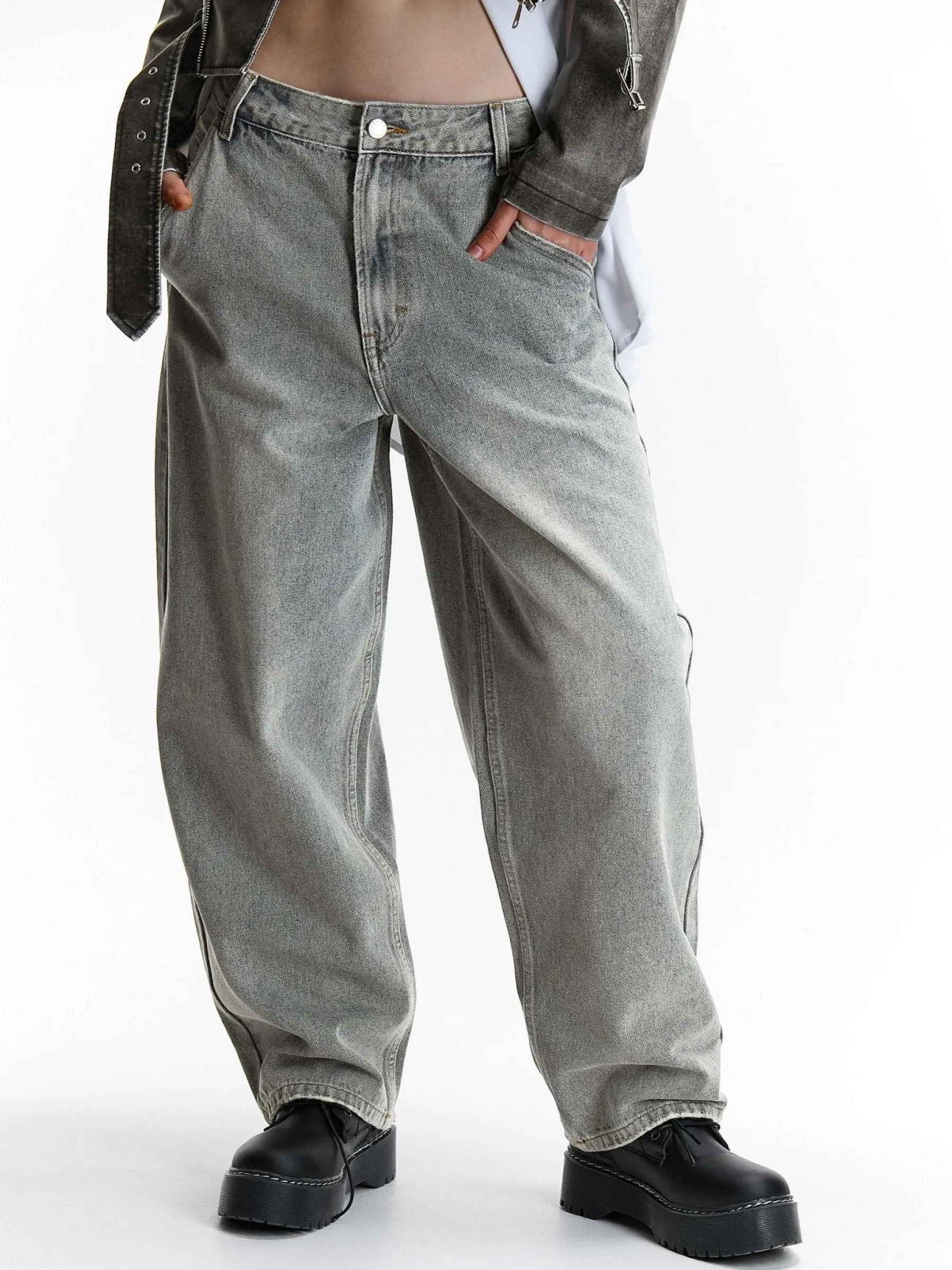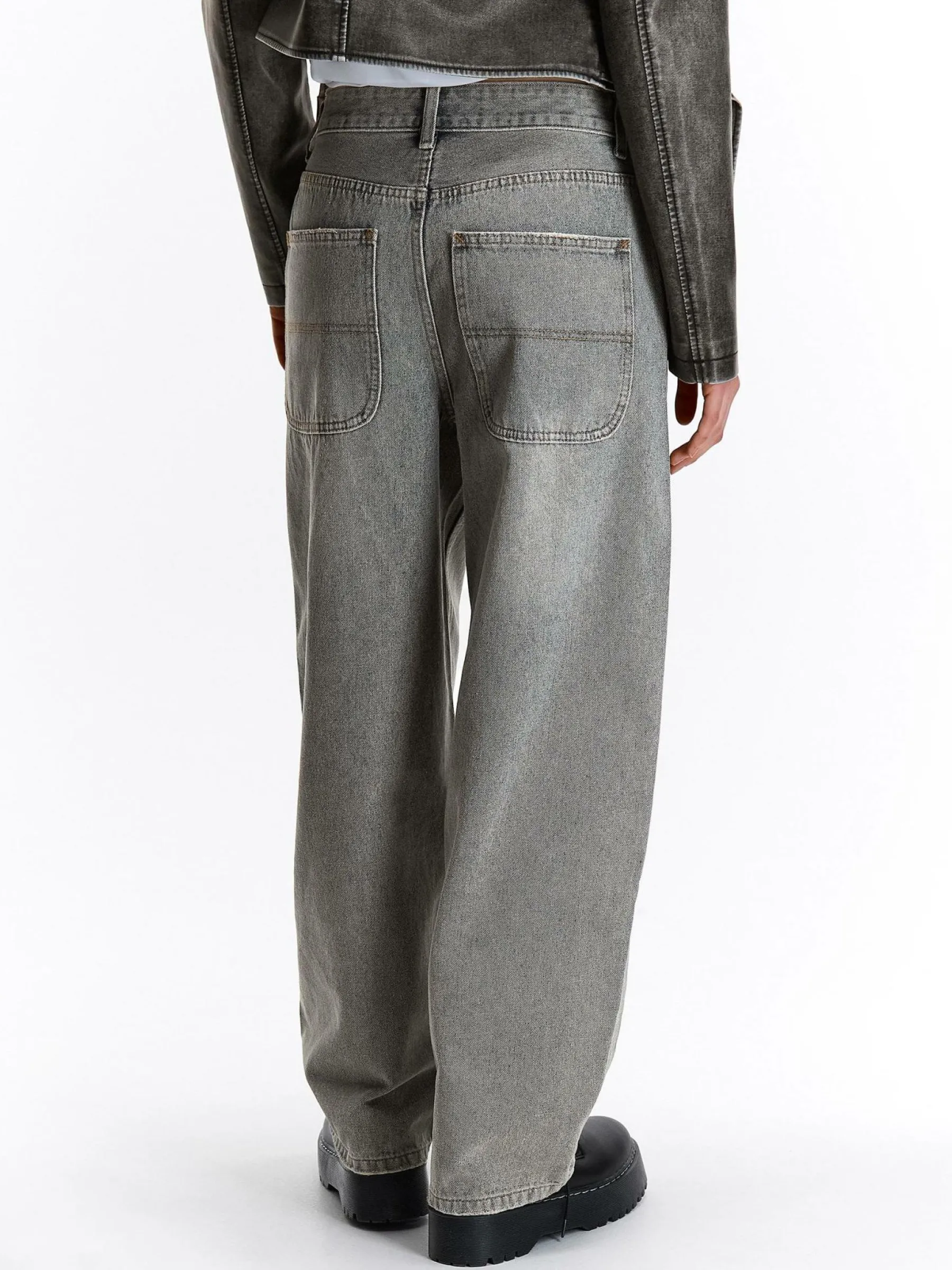 Kolor: szaryKrój: szerokieTyp: jeansDługość: dlugiePattern style: pojedynczy kolorMateriał: dżinsowePłeć: kobiet…