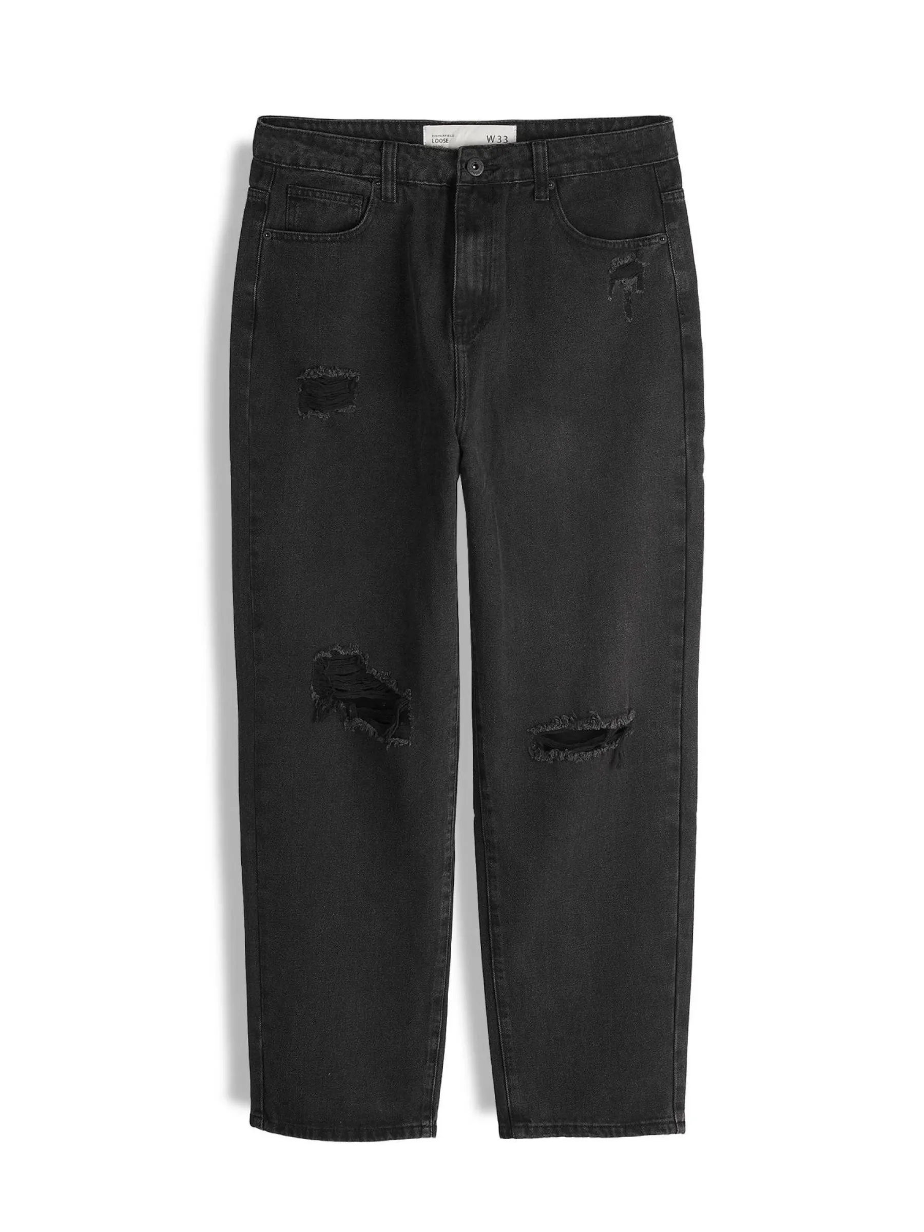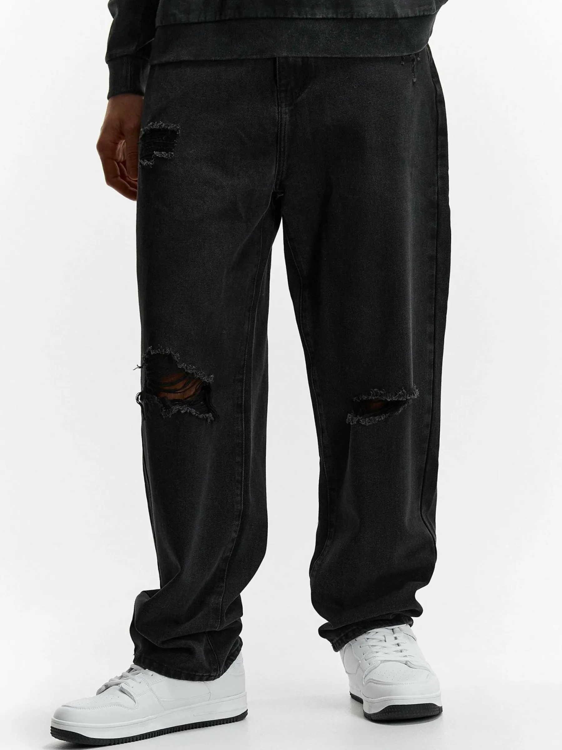 Kolor: czarnyKrój: szerokieTyp: jeansDługość: dlugiePattern style: pojedynczy kolorDetal: z otworamiMateriał: dżin…