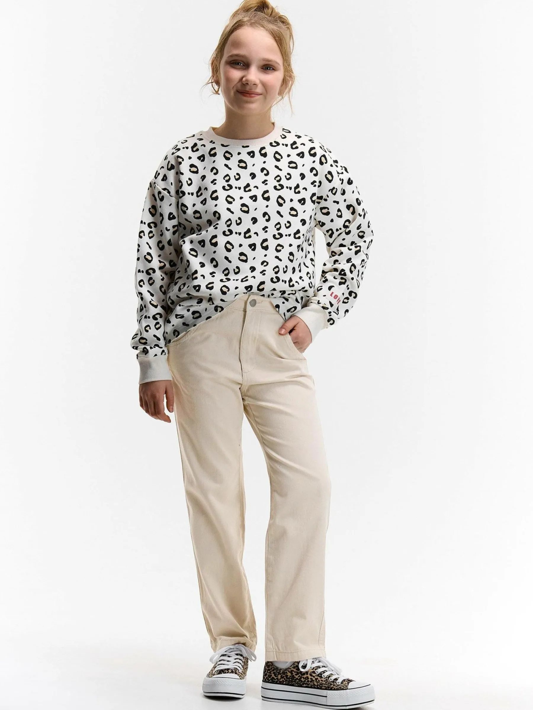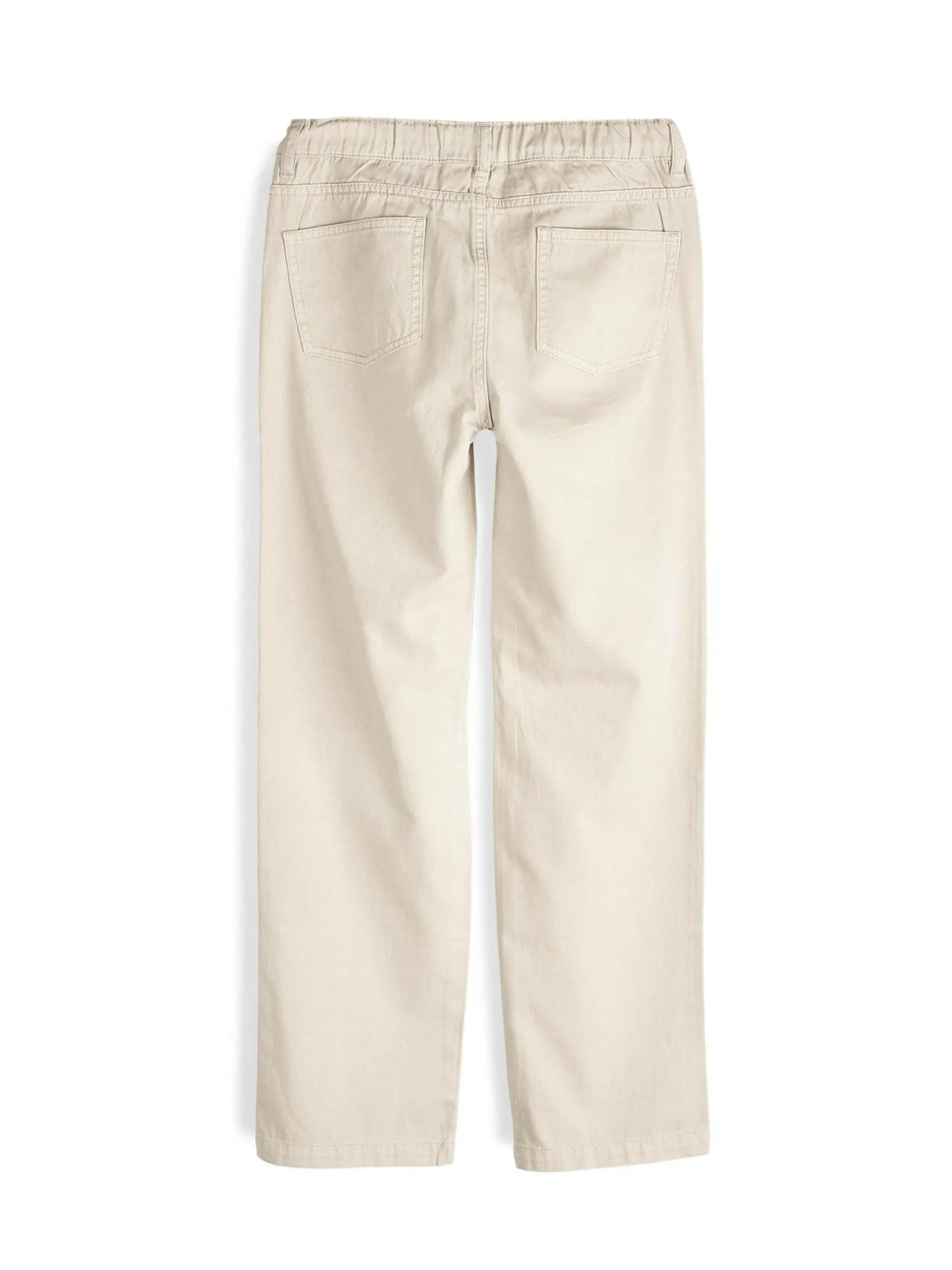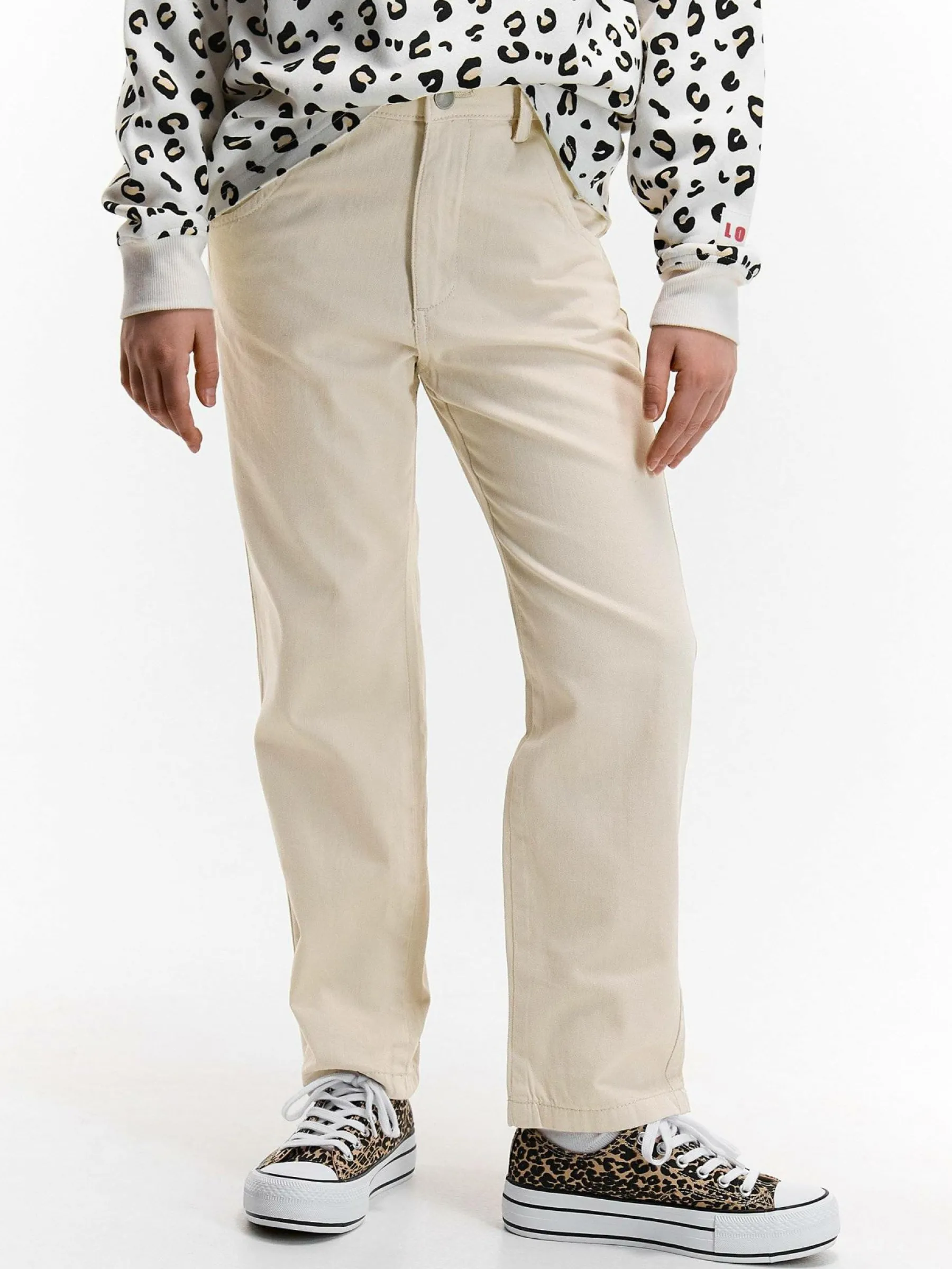 Kolor: beżowyKrój: szerokieTyp: jeansDługość: dlugiePattern style: pojedynczy kolorDetal: na guzikiMateriał: dżin…