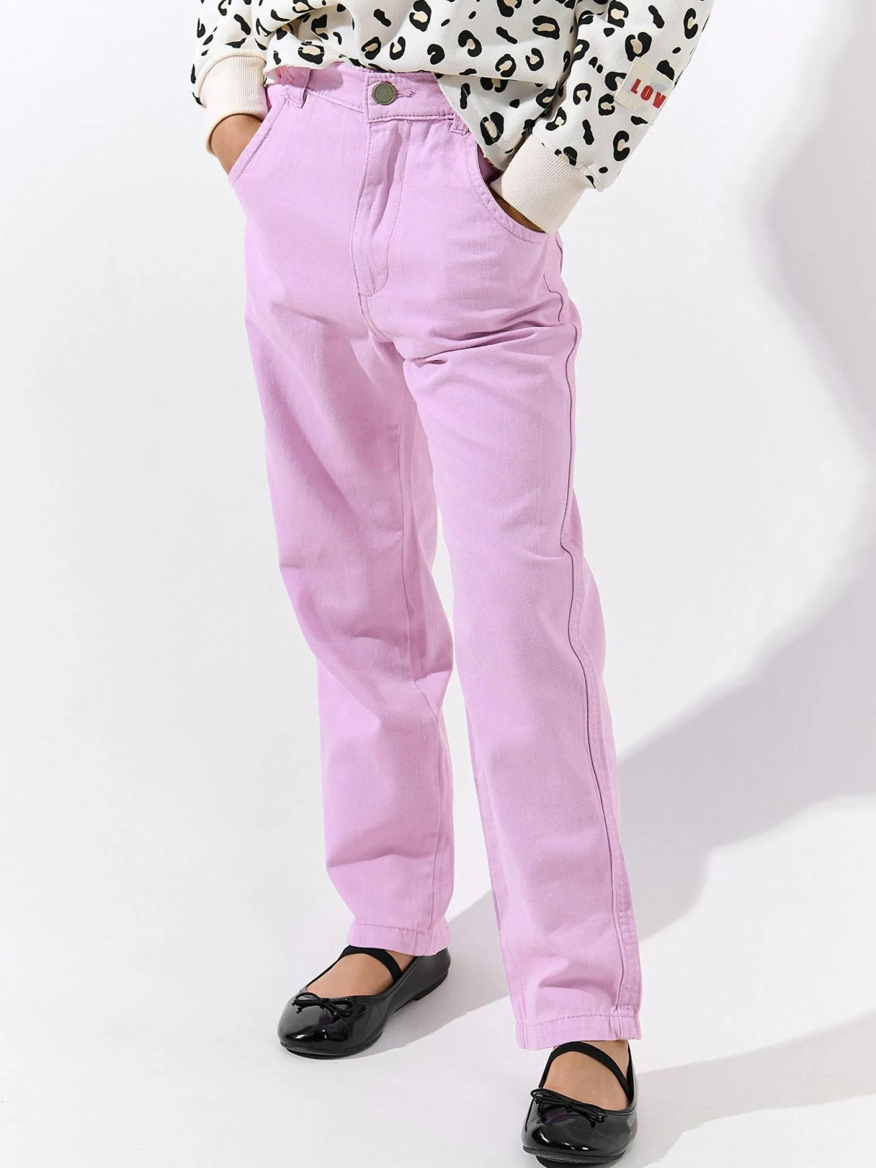 Kolor: różowy, purpurowyKrój: straightTyp: jeansDługość: dlugiePattern style: pojedynczy kolorDetal: na zamekMater…