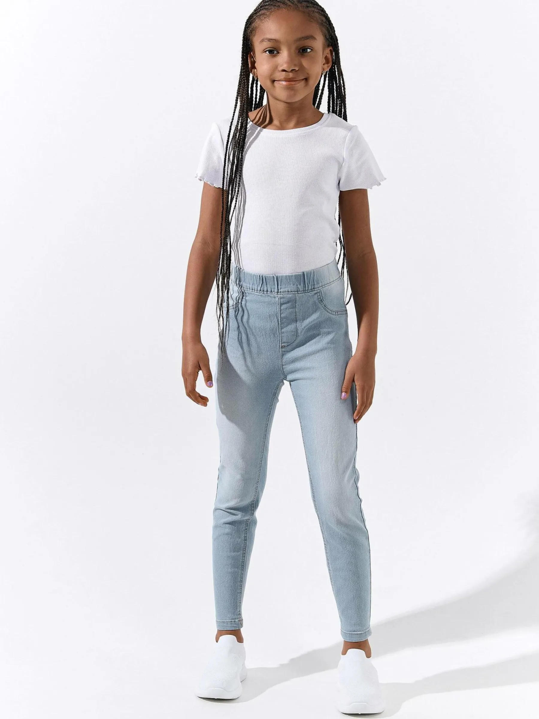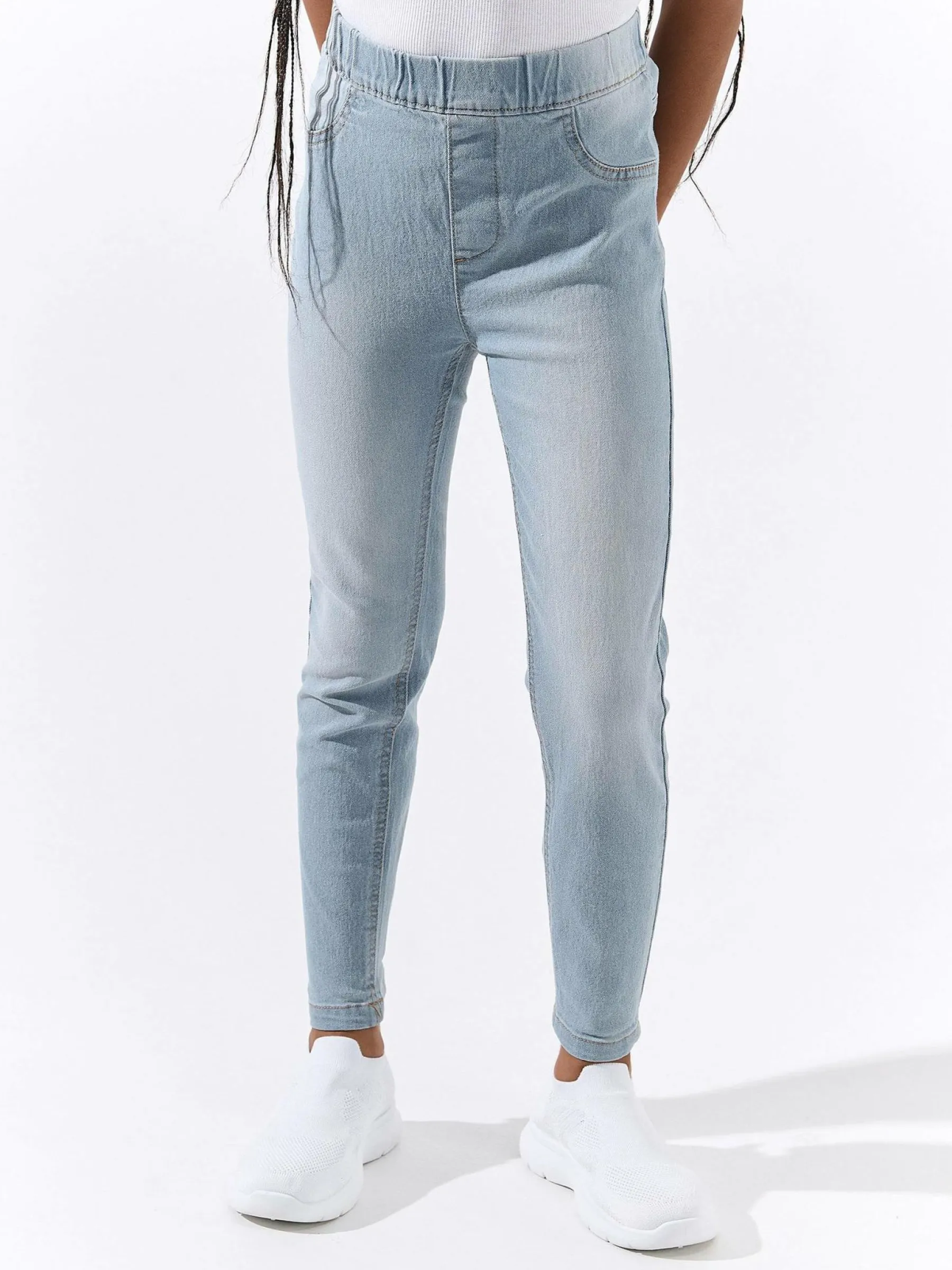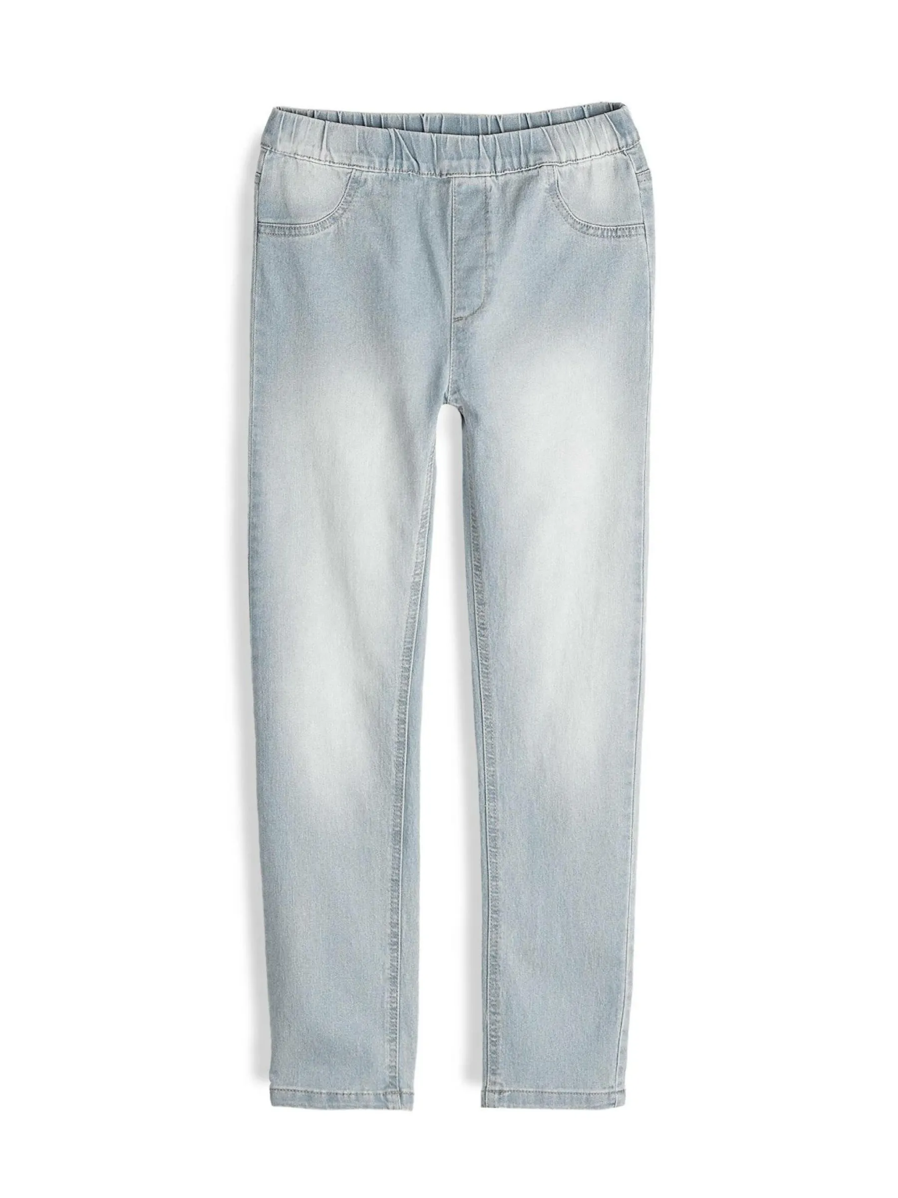 Kolor: niebieskiKrój: skinnyTyp: jeansDługość: dlugiePattern style: pojedynczy kolorDetal: z elastyczną opaskąMate…