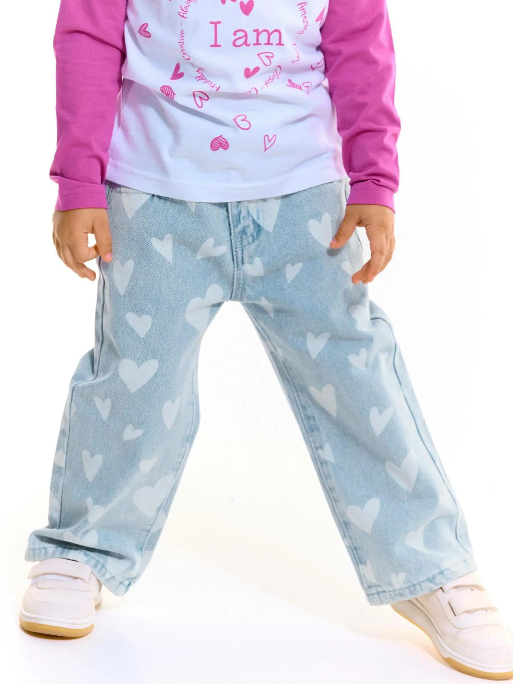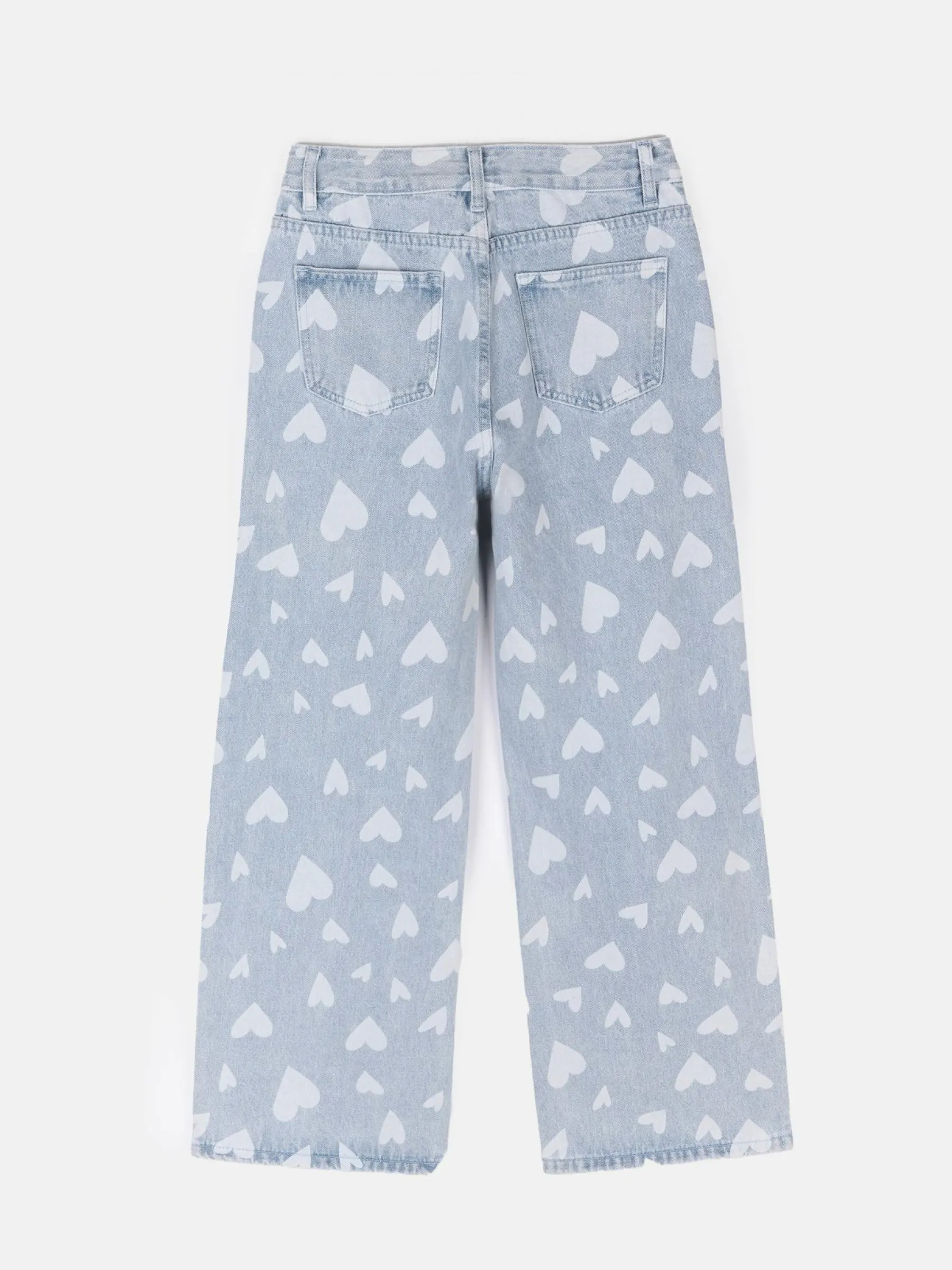 Kolor: niebieskiKrój: szerokieTyp: jeansDługość: dlugiePattern style: z nadrukiemMateriał: dżinsowePłeć: dziewcz…