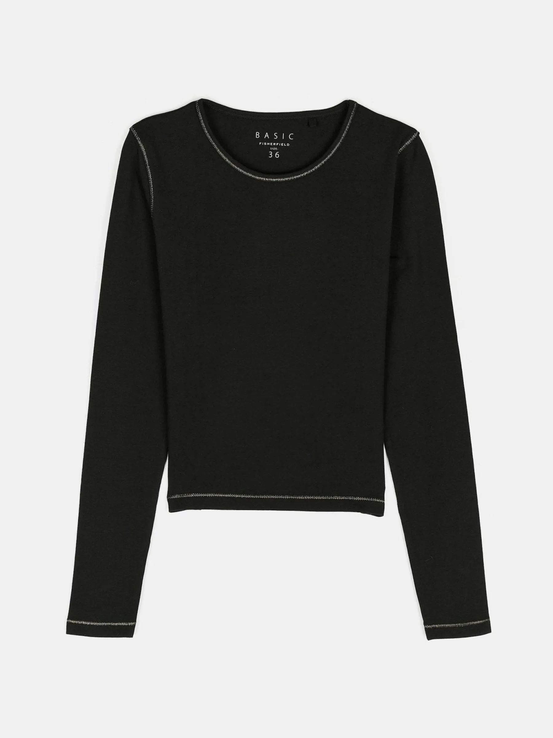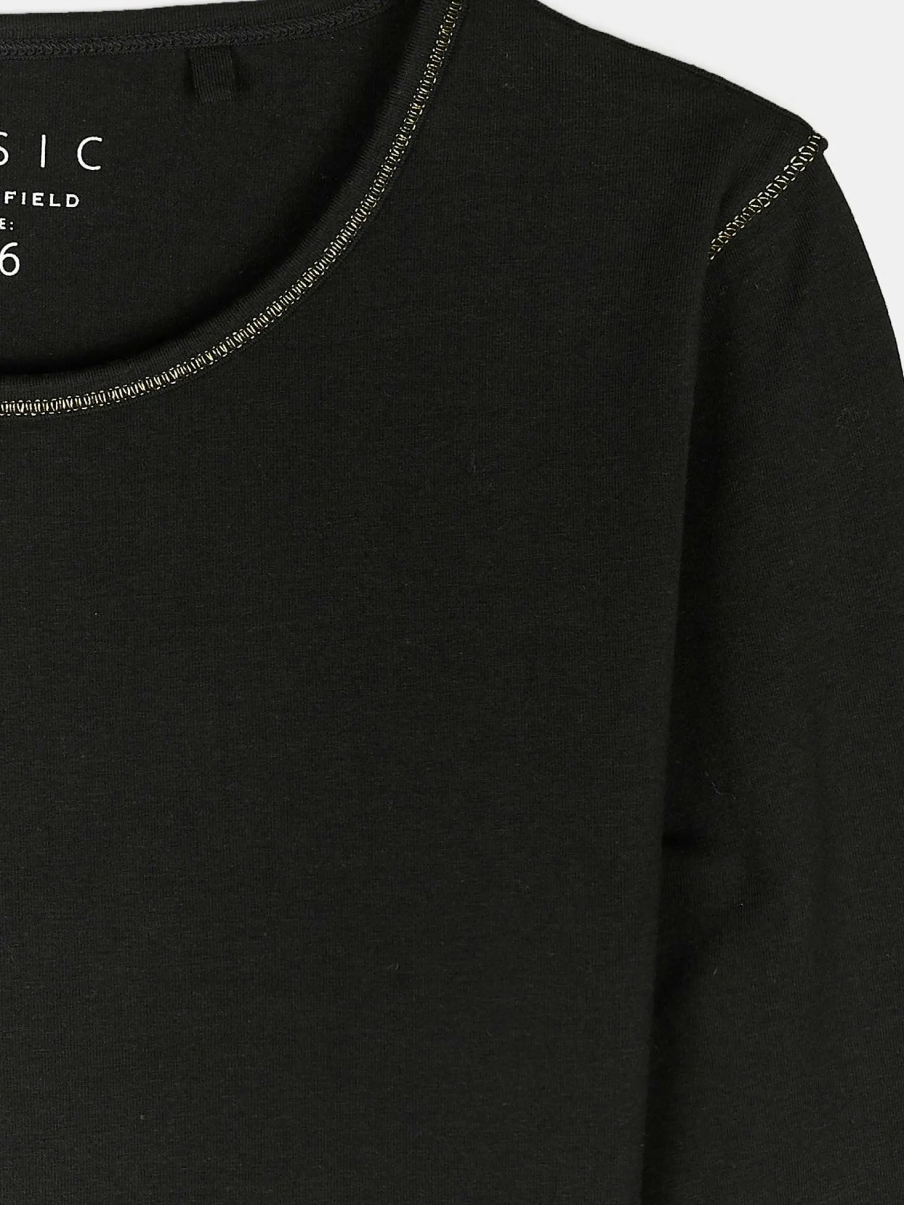 Kolor: czarnyKrój: podstawowyTyp: koszulkaRekaw: długi rękawDługość: krótkiPattern style: pojedynczy kolorDetal: …