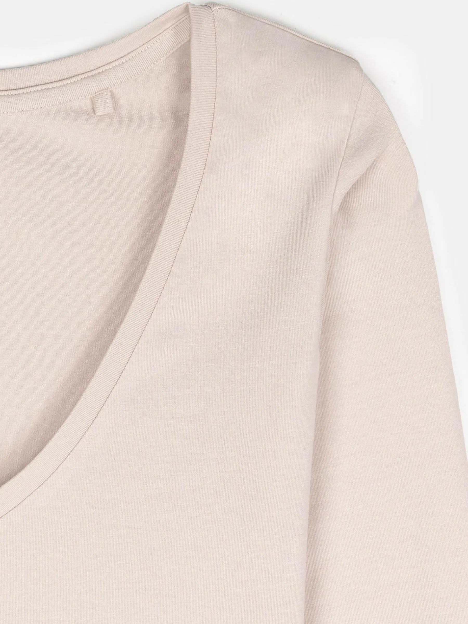 Zdjęcia z modelką mogą nie odpowiadać rzeczywistemu kolorowi produktu.Kolor: beżowyKrój: regularTyp: koszulkaRekaw…