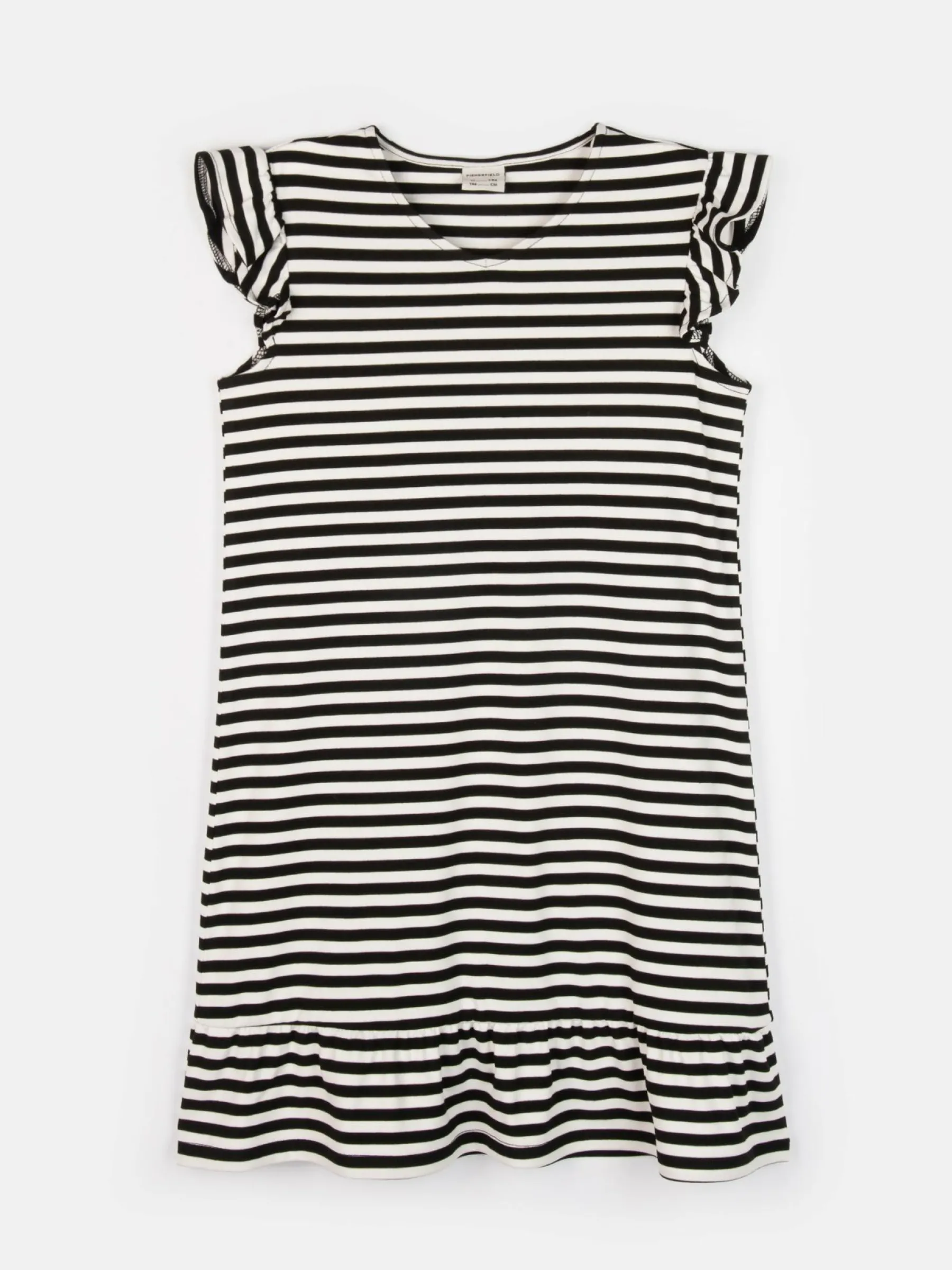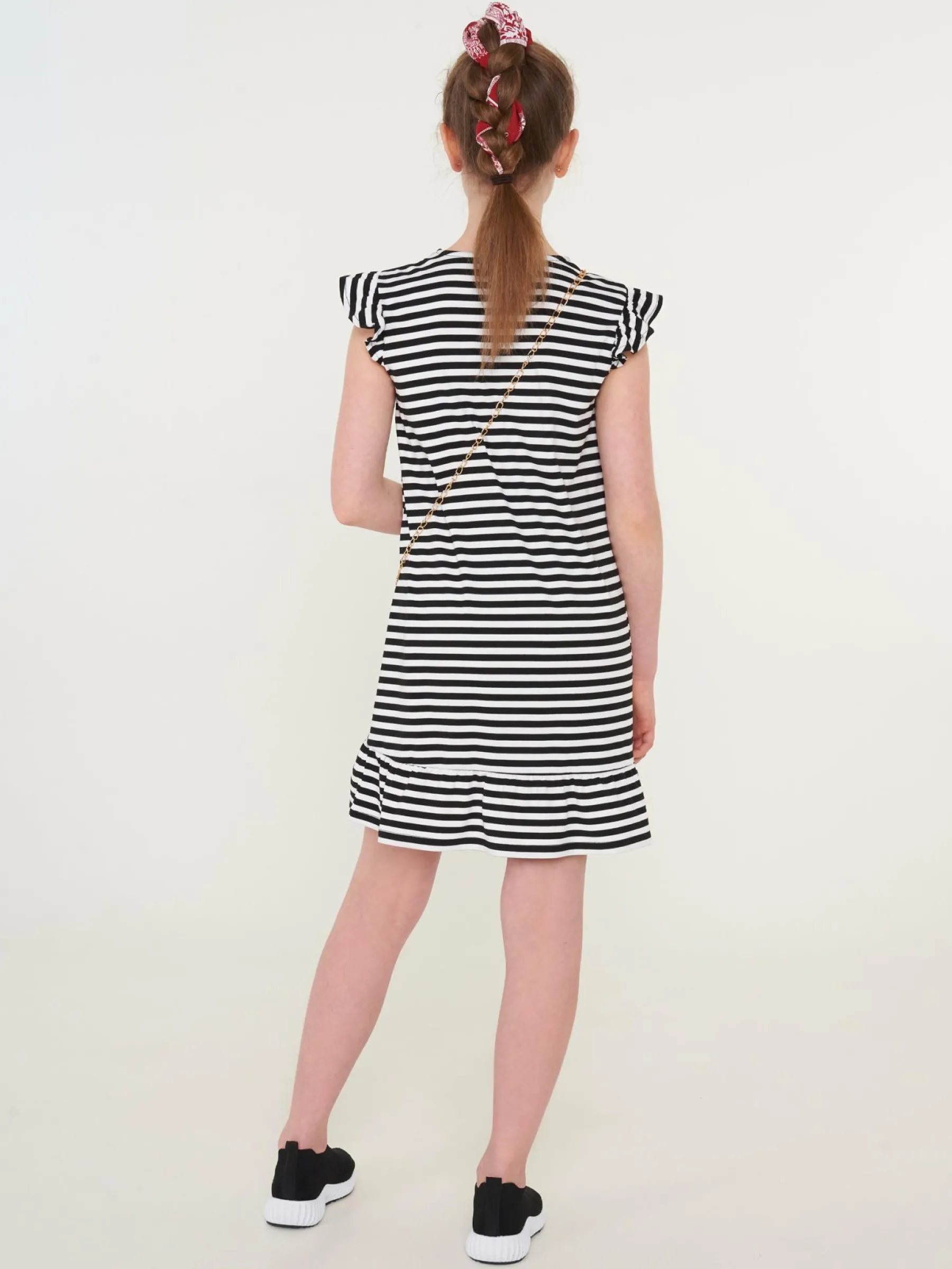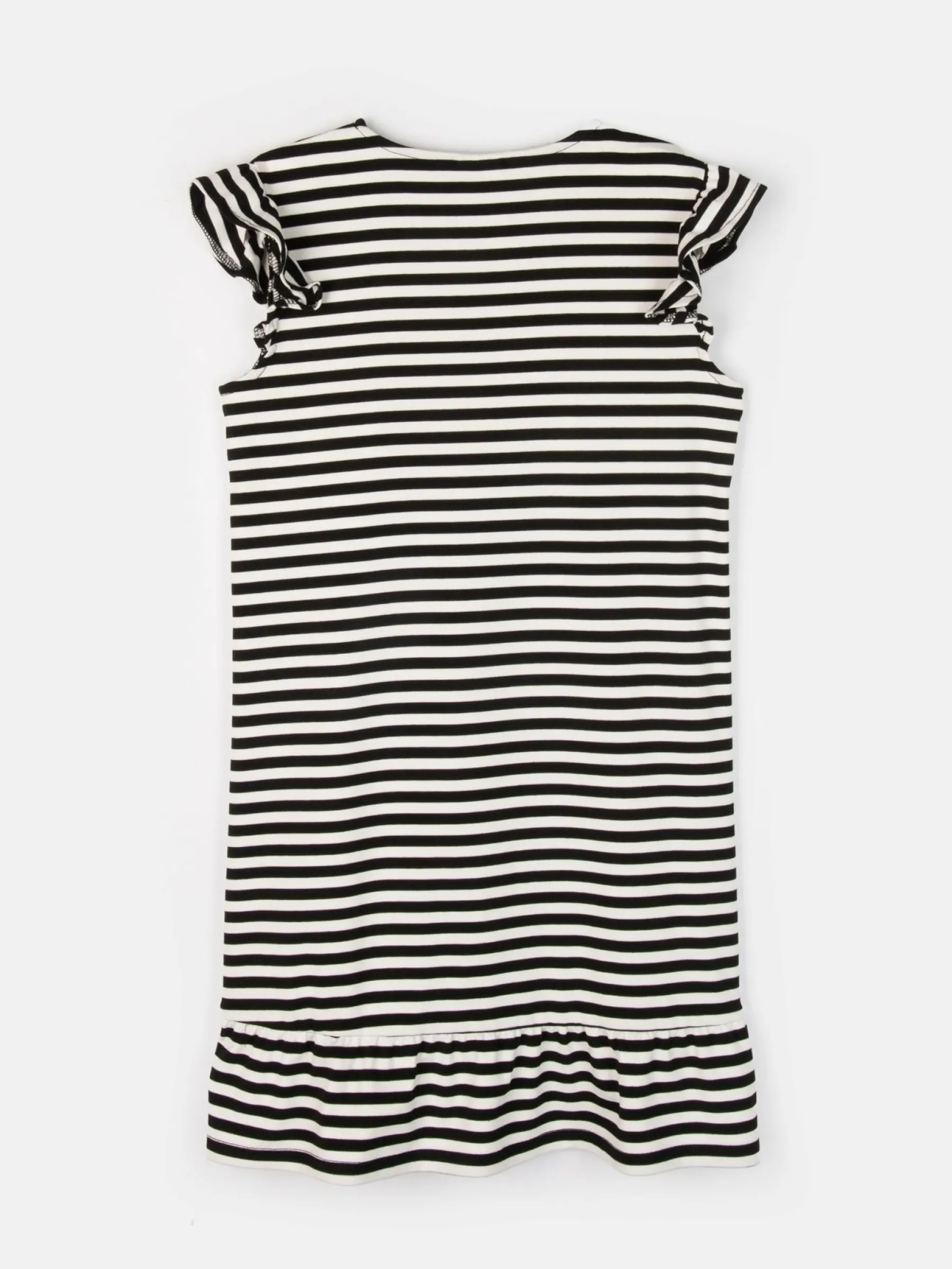 Kolor: białyKrój: podstawowyTyp: sukienkaRekaw: krótki rękawDługość: miniPattern style: w prążkiMateriał: synt…