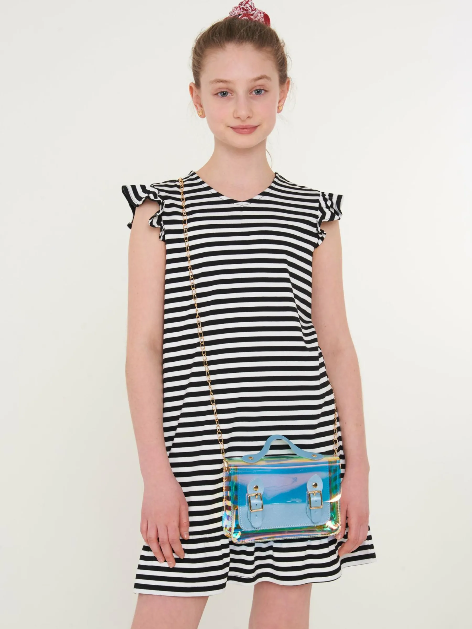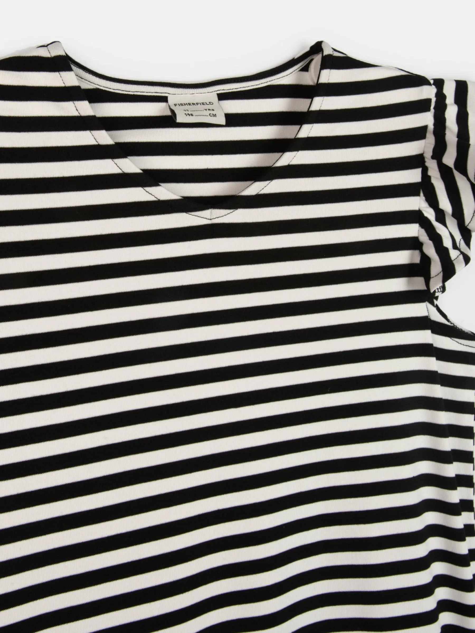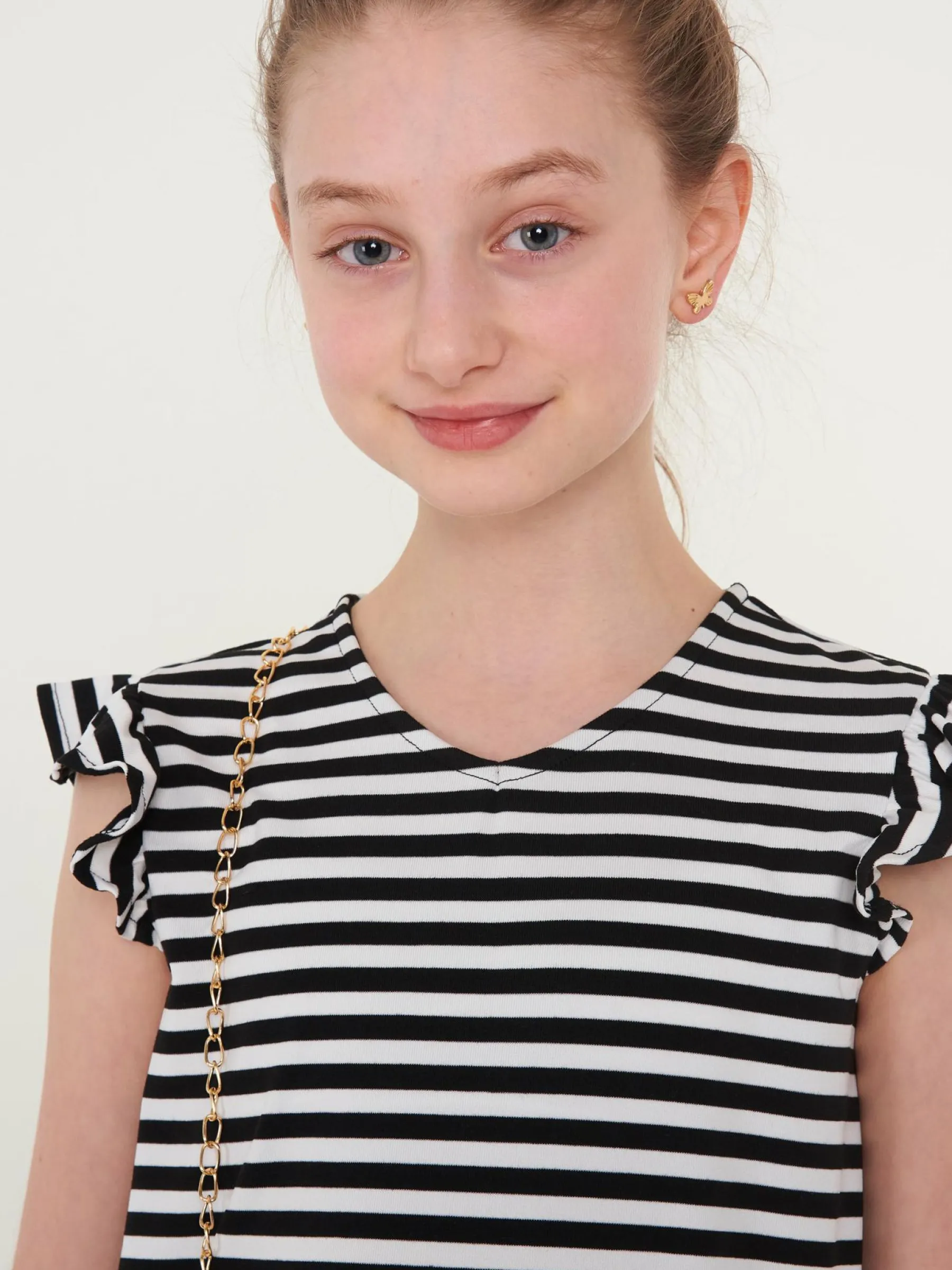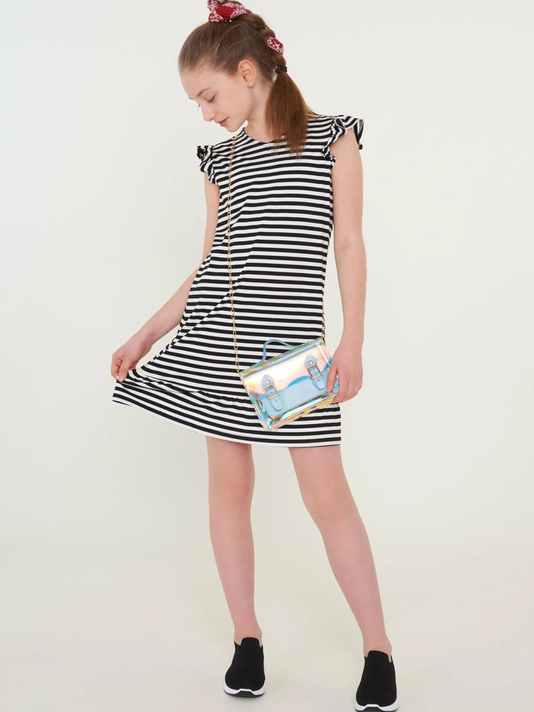 Kolor: białyKrój: podstawowyTyp: sukienkaRekaw: krótki rękawDługość: miniPattern style: w prążkiMateriał: synt…