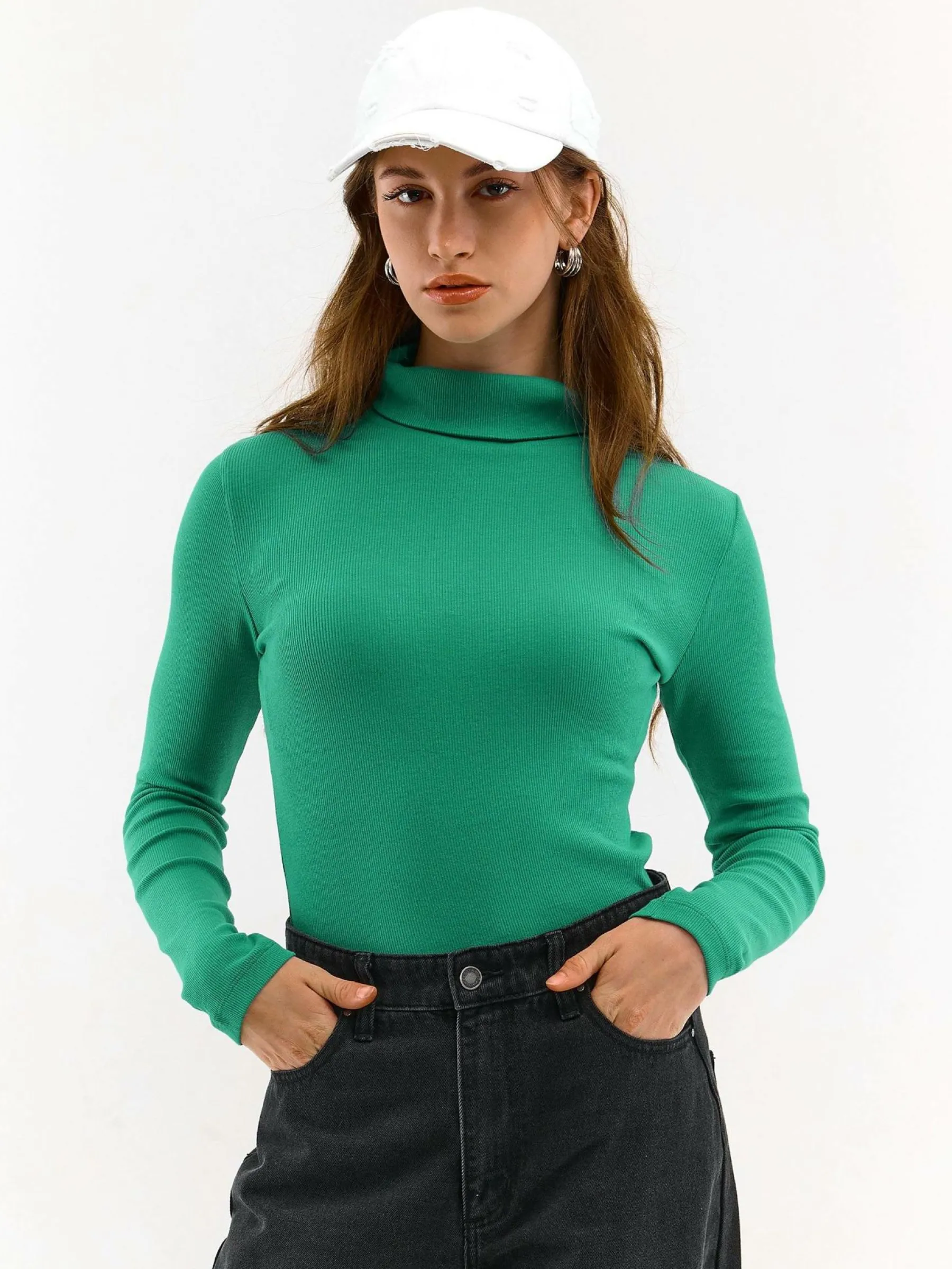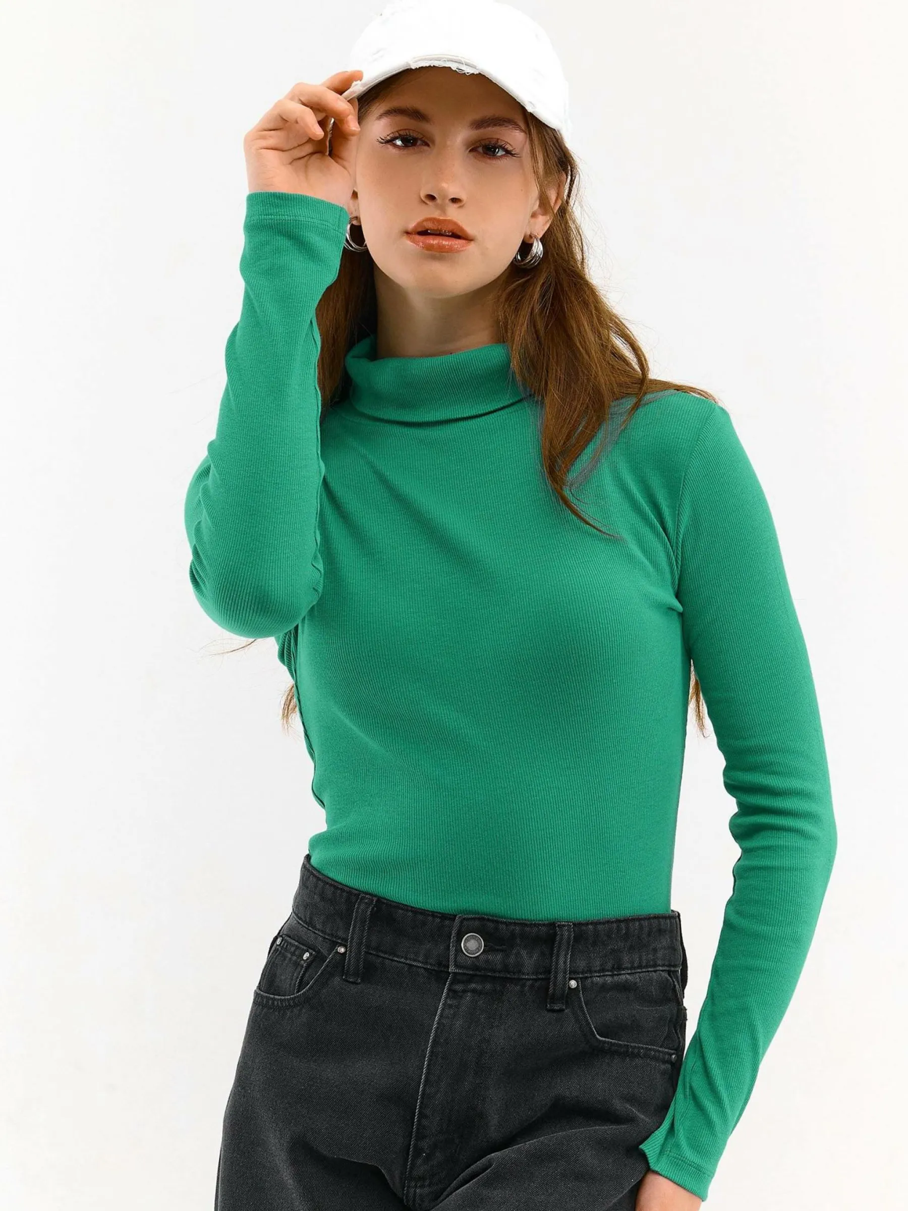 Kolor: zielonyKrój: regularTyp: golfRekaw: długi rękawDługość: krótkiPattern style: pojedynczy kolor, żebrowanyD…