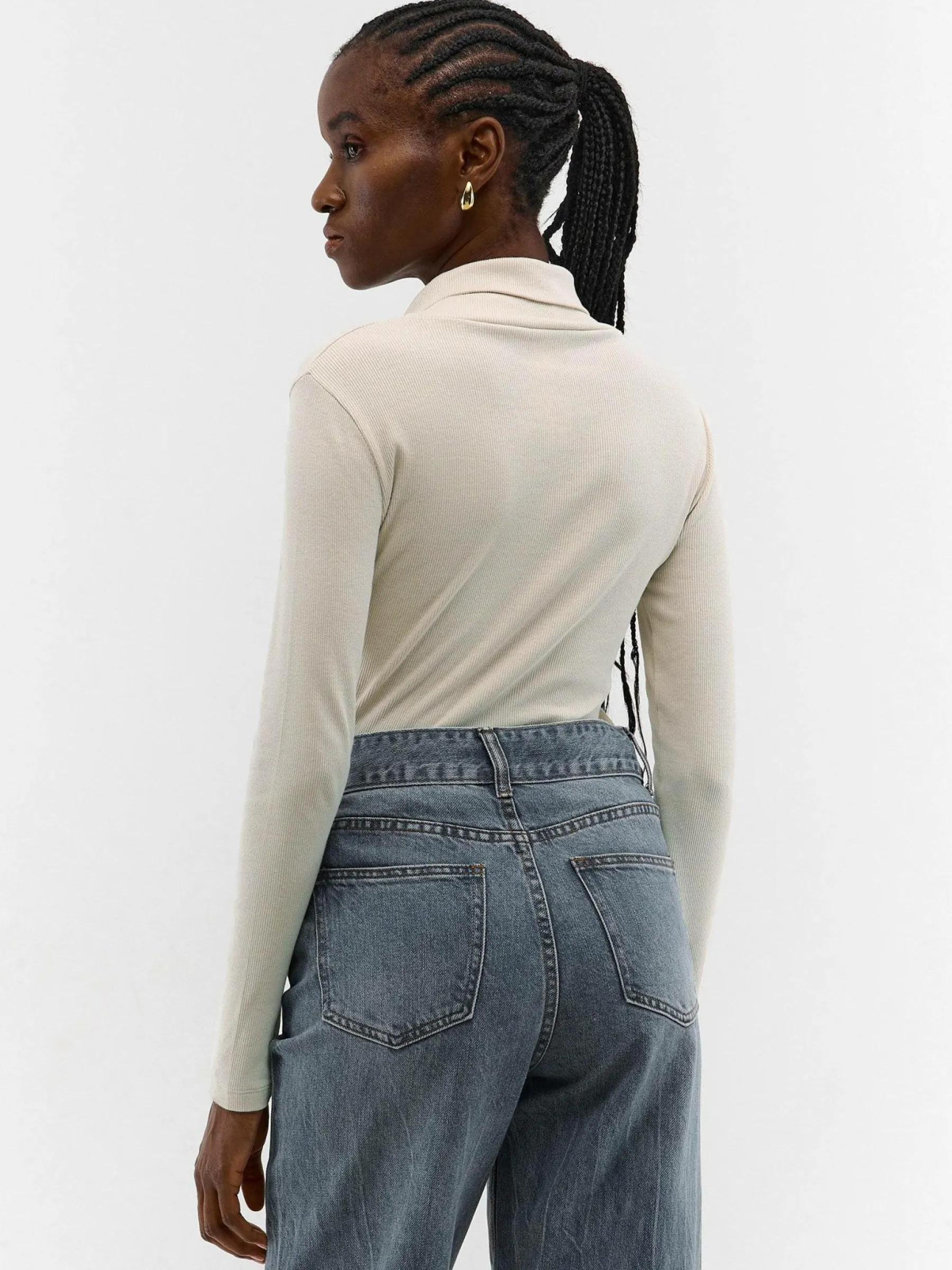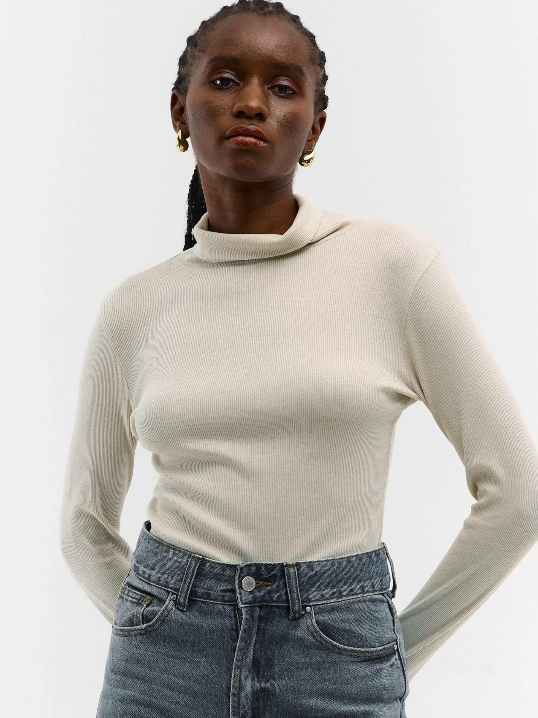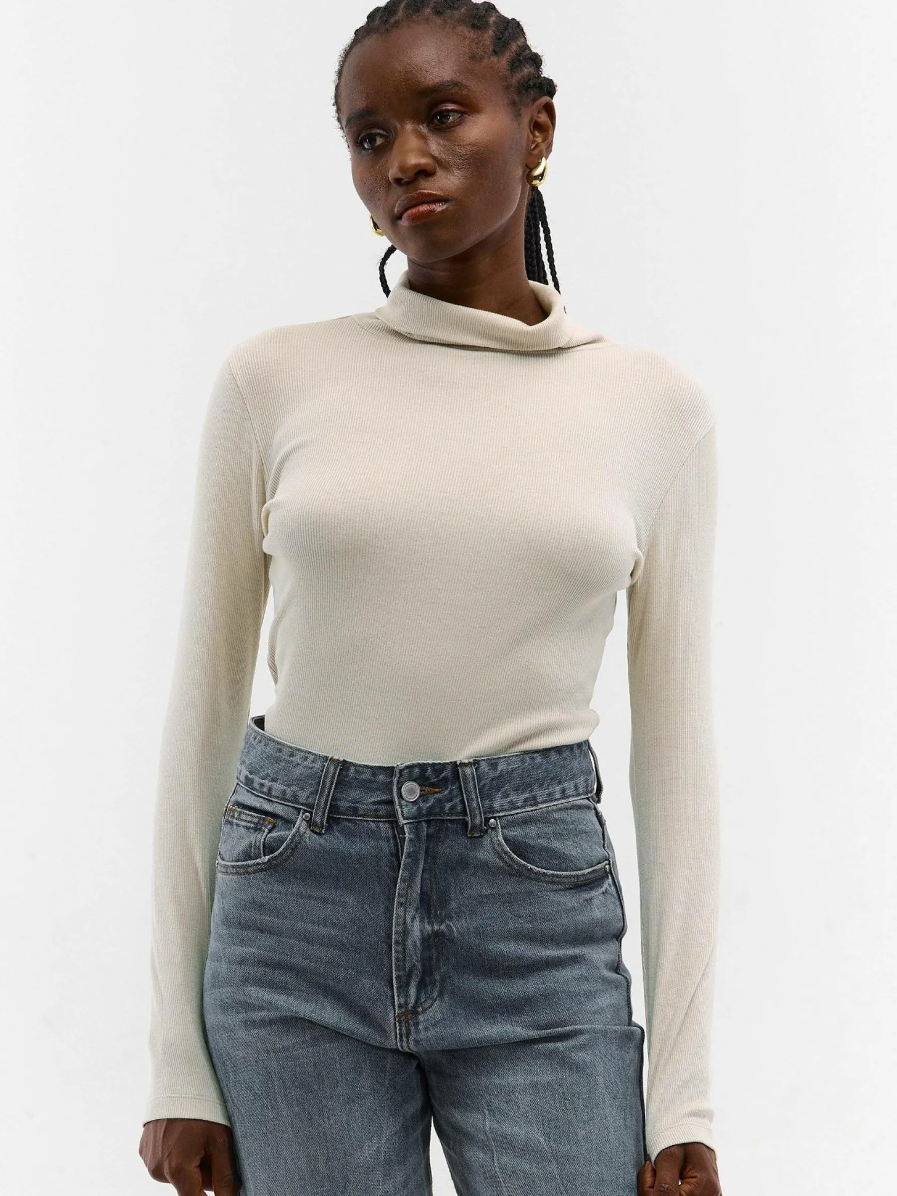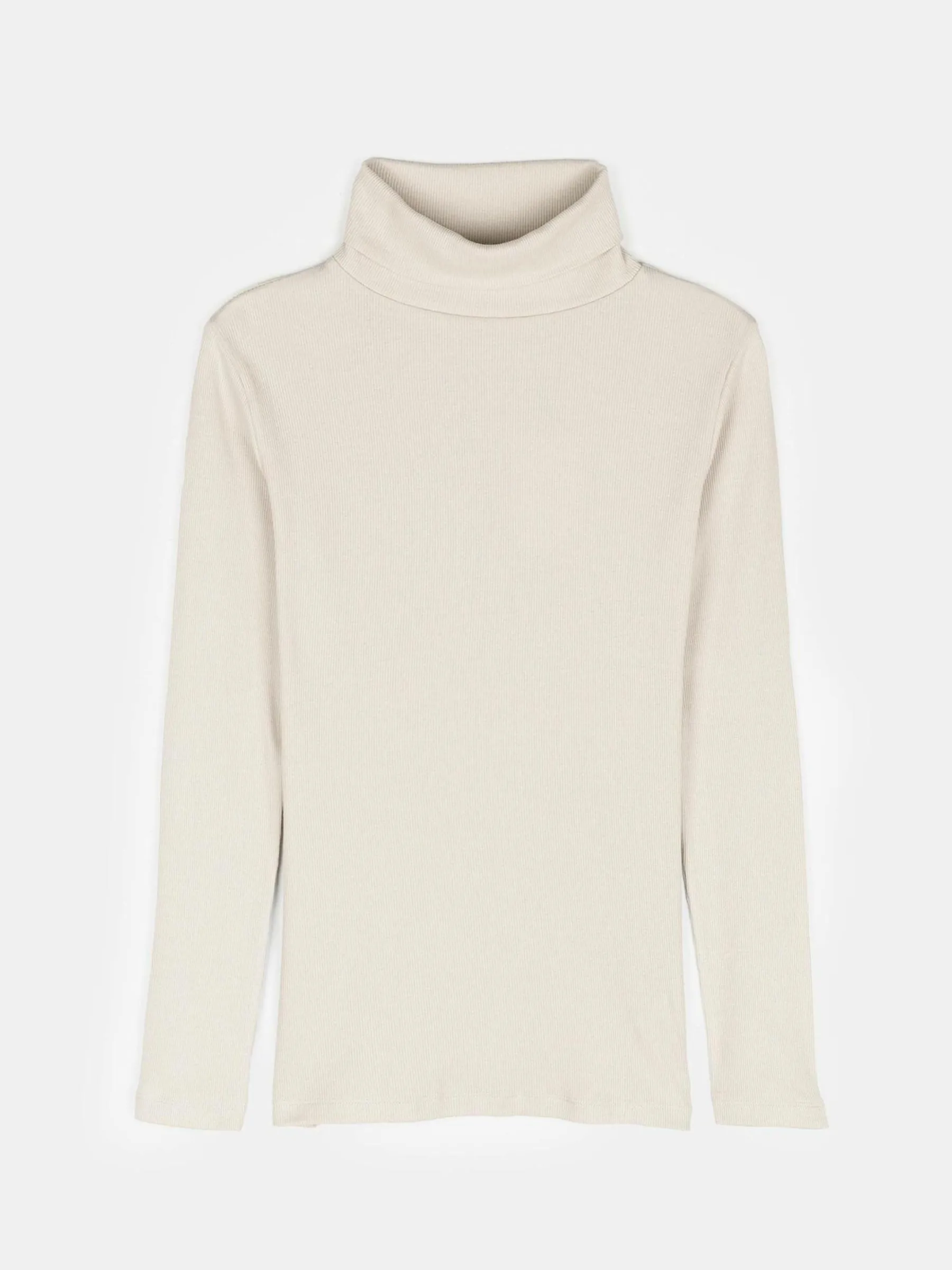 Kolor: beżowyKrój: regularTyp: golfRekaw: długi rękawDługość: krótkiPattern style: pojedynczy kolor, żebrowanyD…