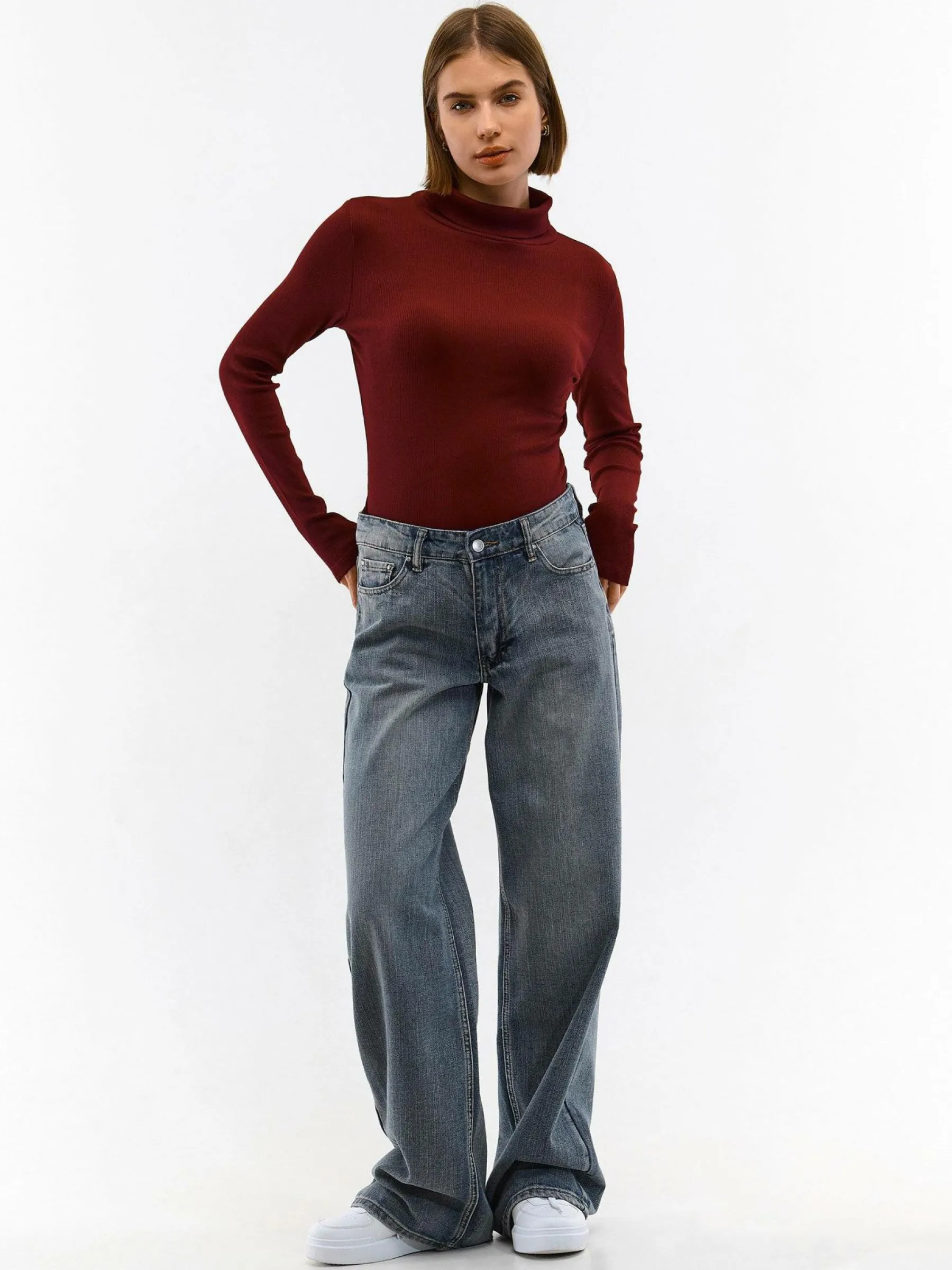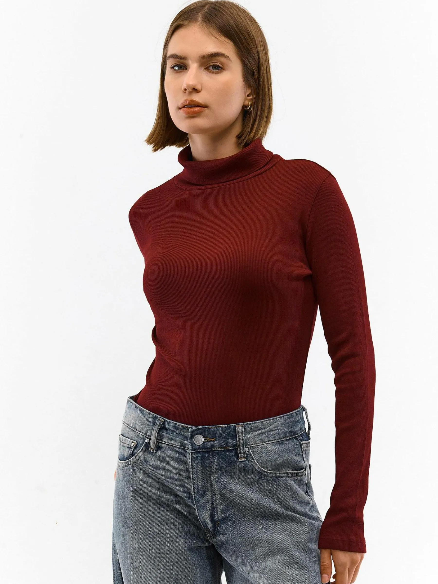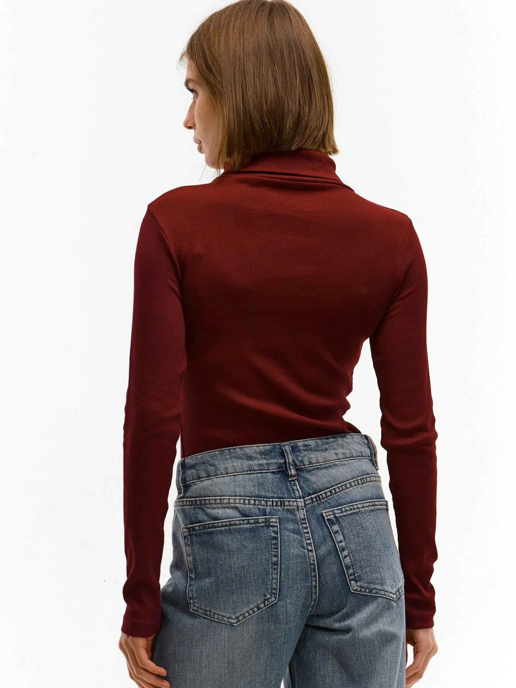 Kolor: czerwonyKrój: regularTyp: golfRekaw: długi rękawDługość: krótkiPattern style: pojedynczy kolor, żebrowany…