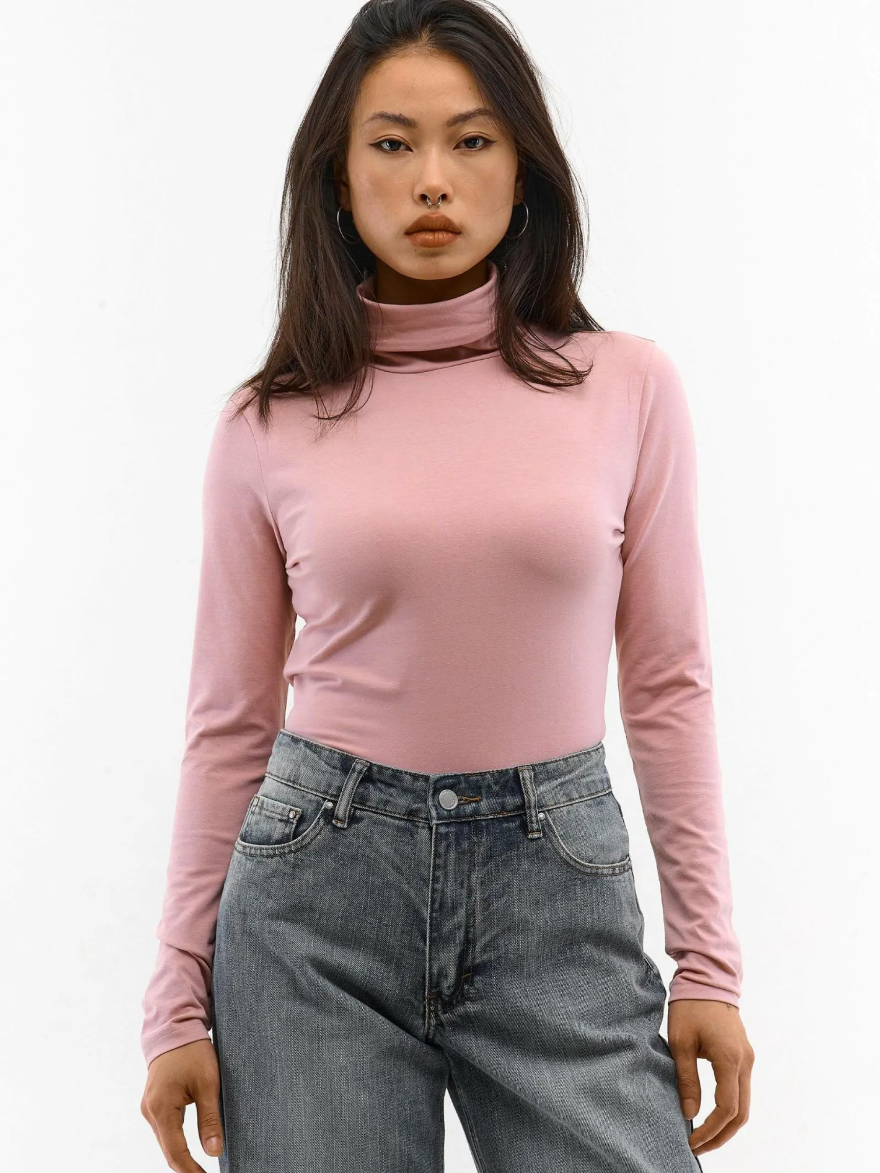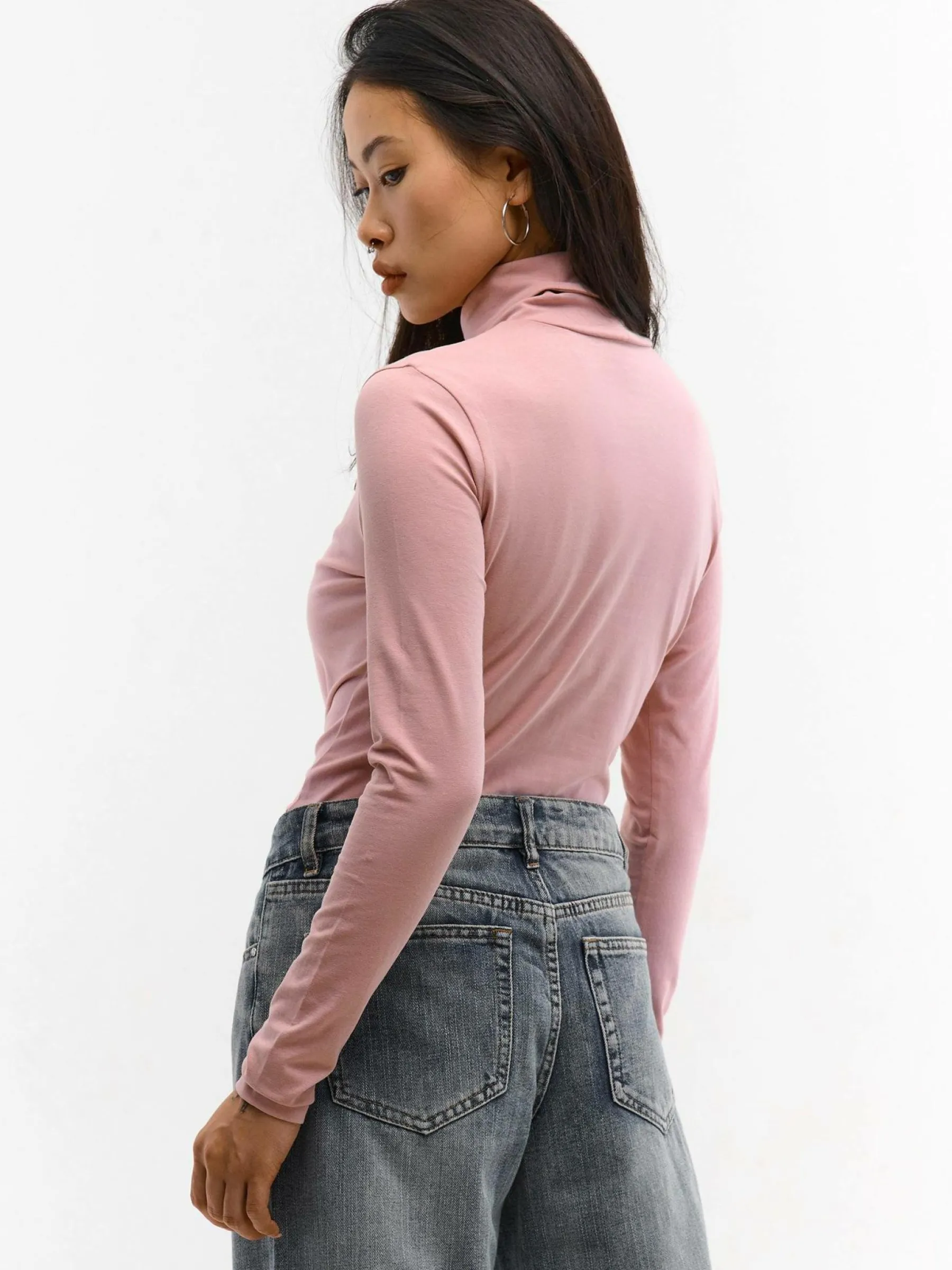 Kolor: różowyKrój: regularTyp: golfRekaw: długi rękawDługość: krótkiPattern style: pojedynczy kolorDetal: nad g…