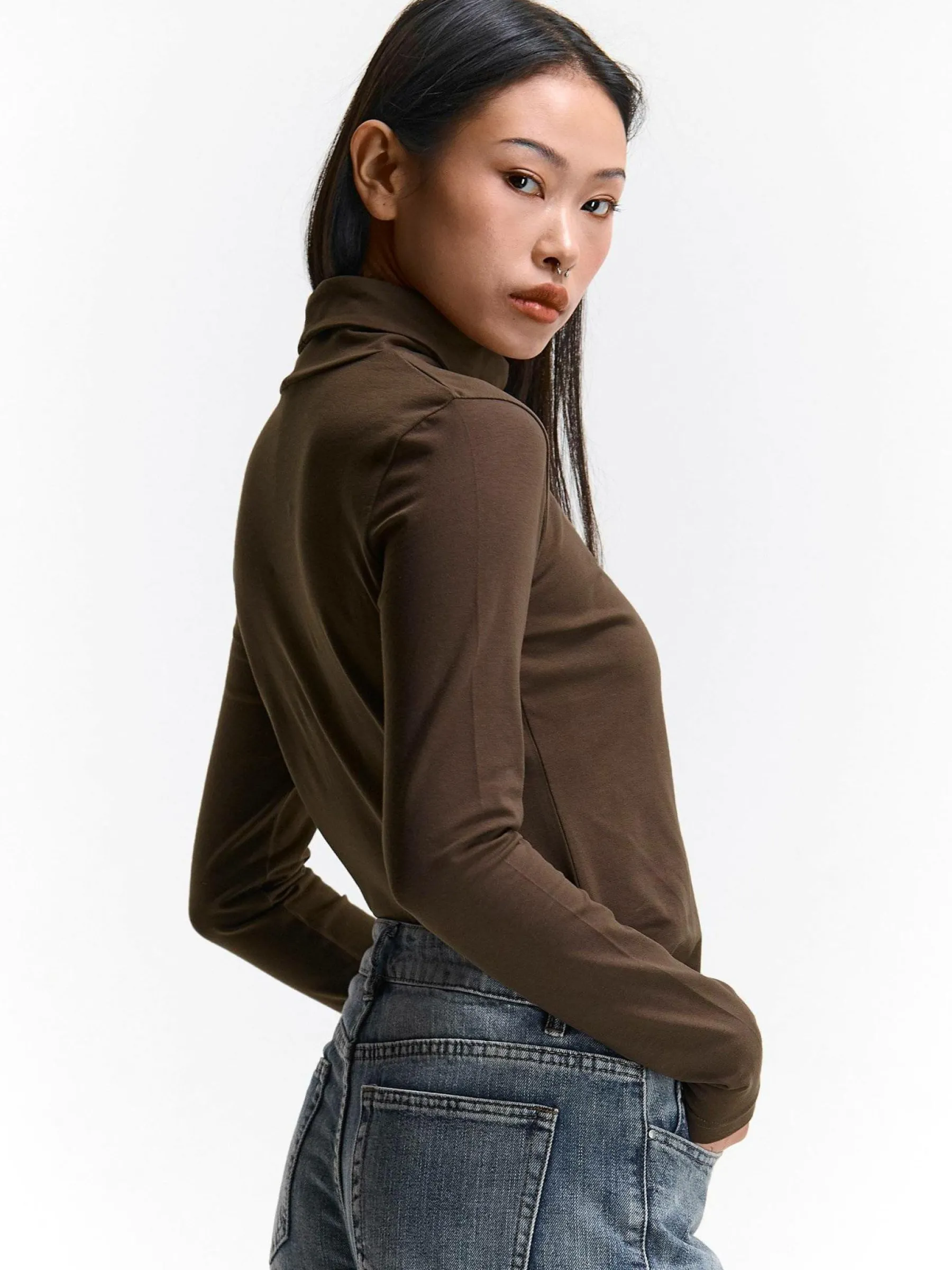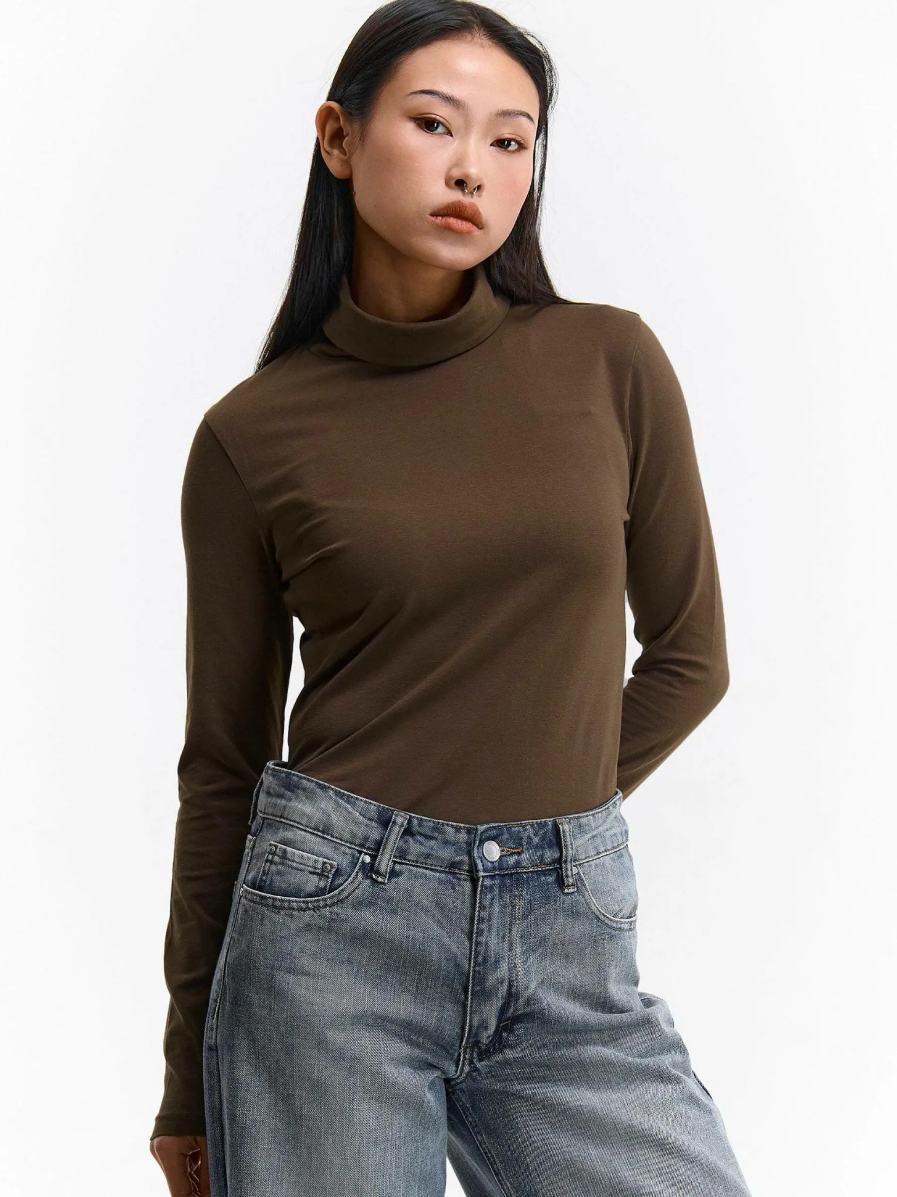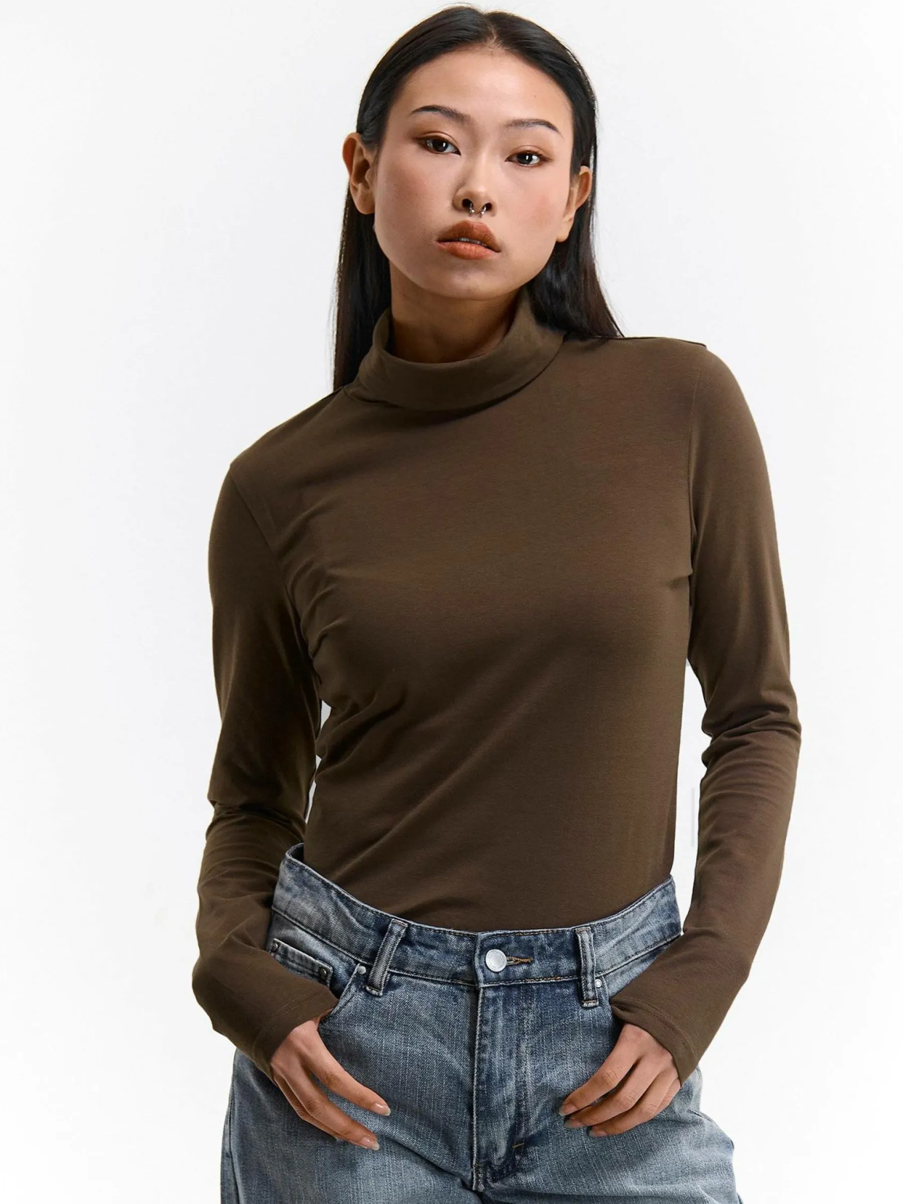 Kolor: brązowyKrój: regularTyp: golfRekaw: długi rękawDługość: krótkiPattern style: pojedynczy kolorDetal: nad g…