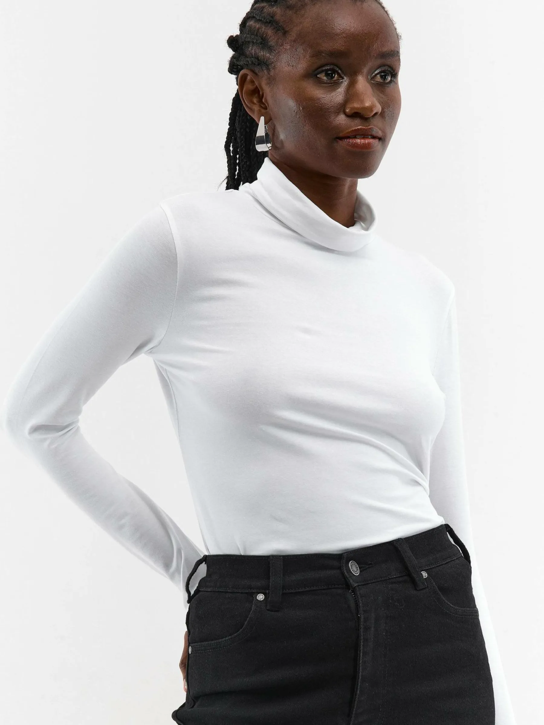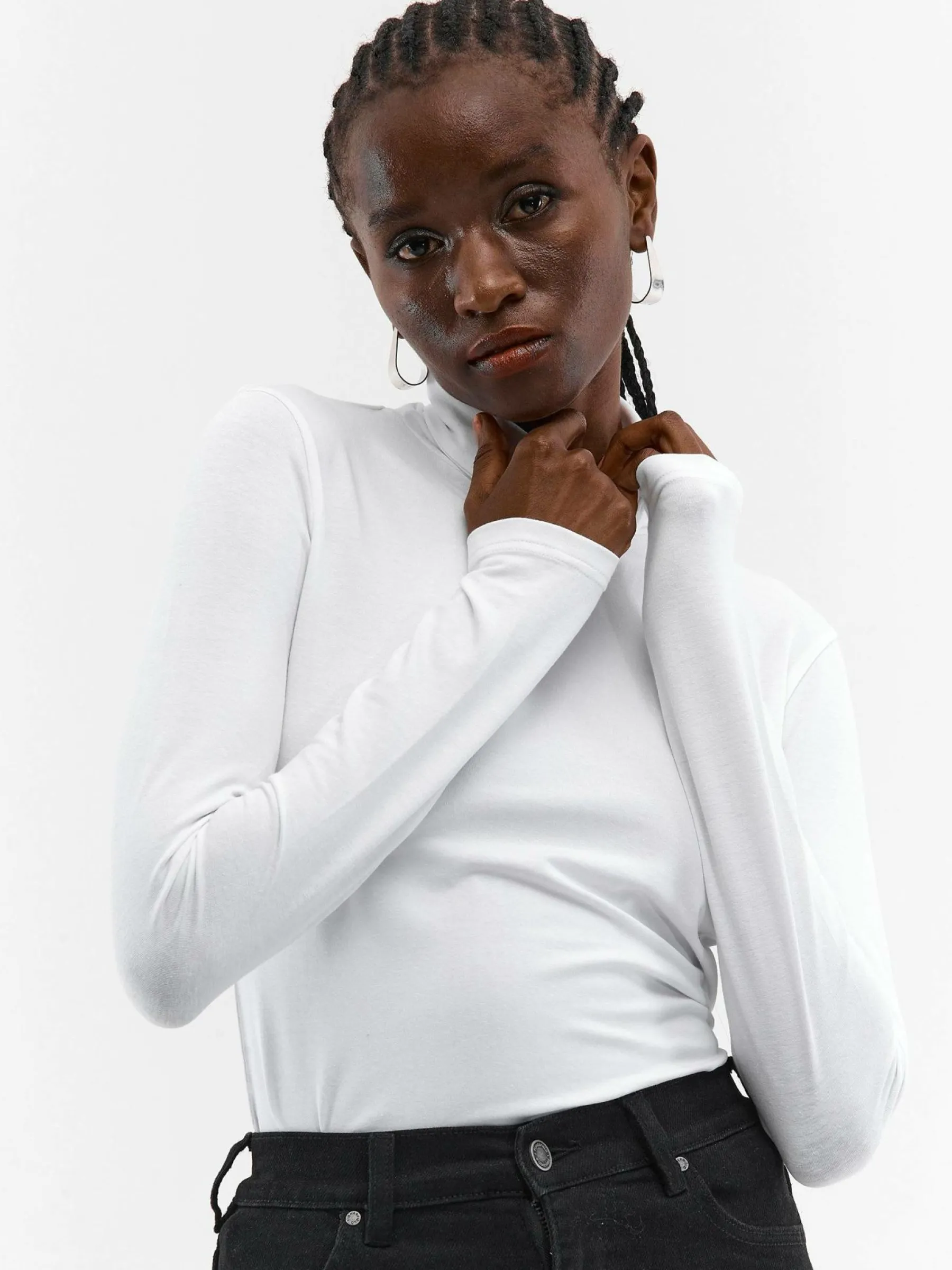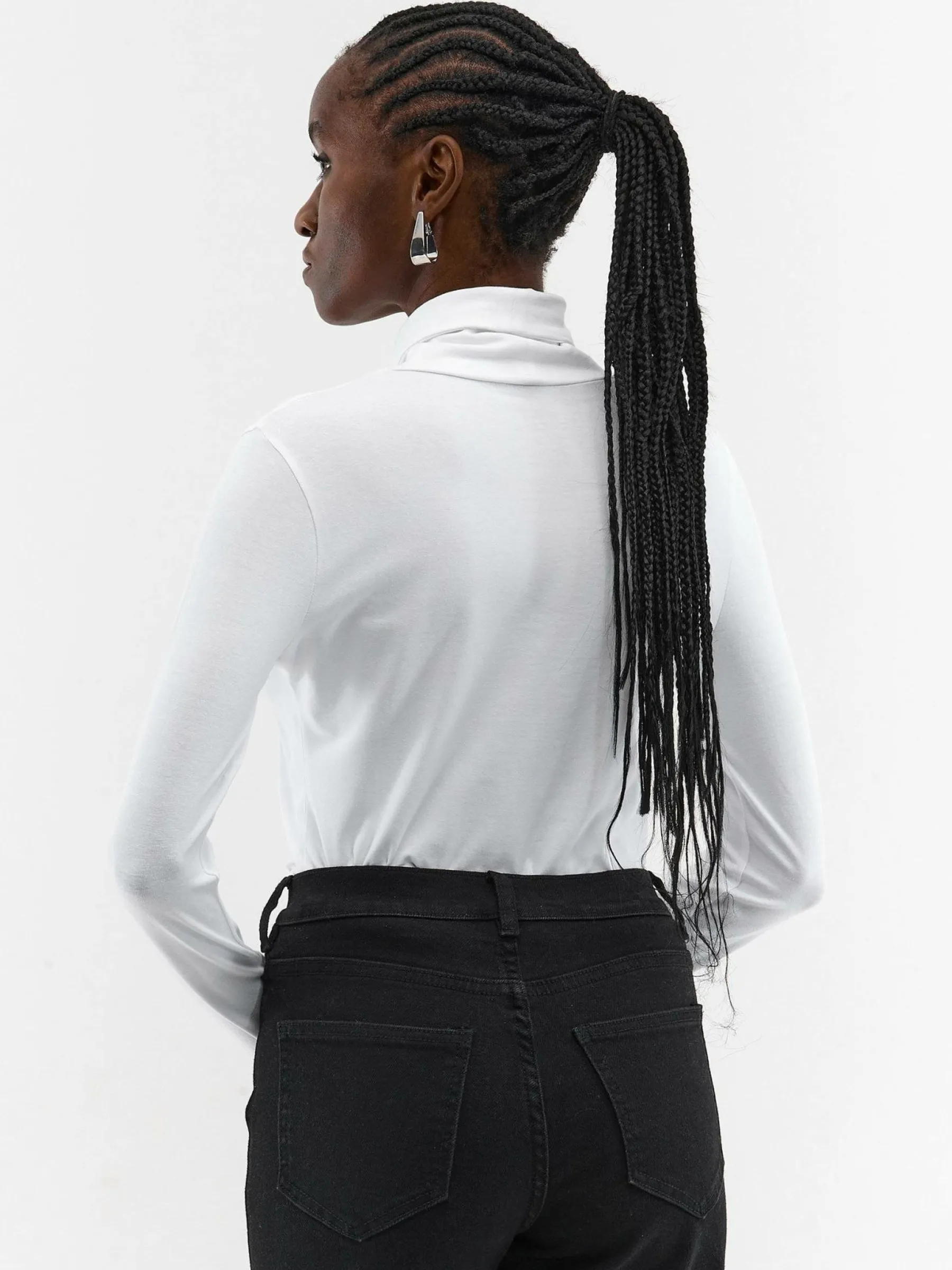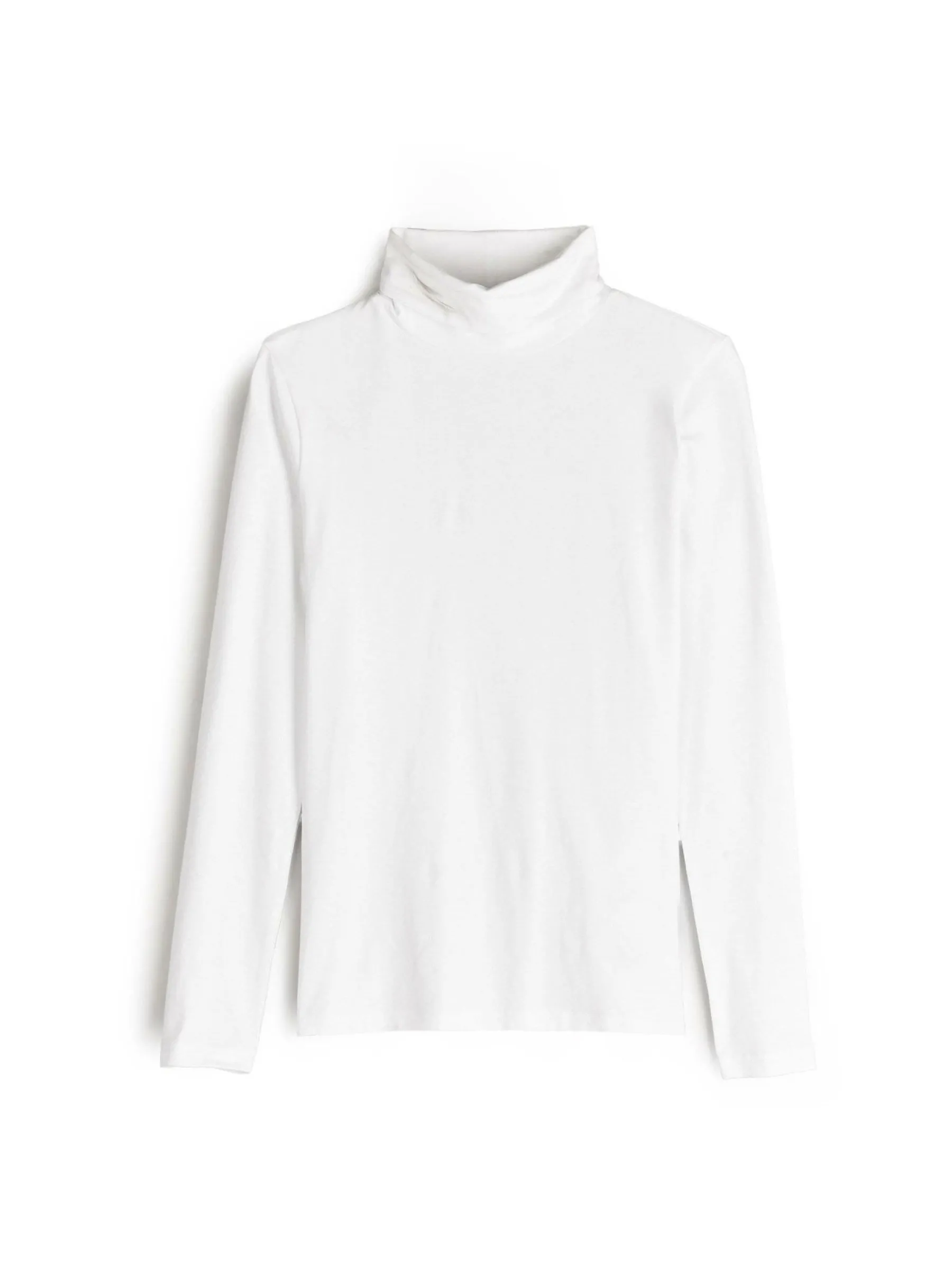 Kolor: białyKrój: regularTyp: golfRekaw: długi rękawDługość: krótkiPattern style: pojedynczy kolorDetal: nad gł…