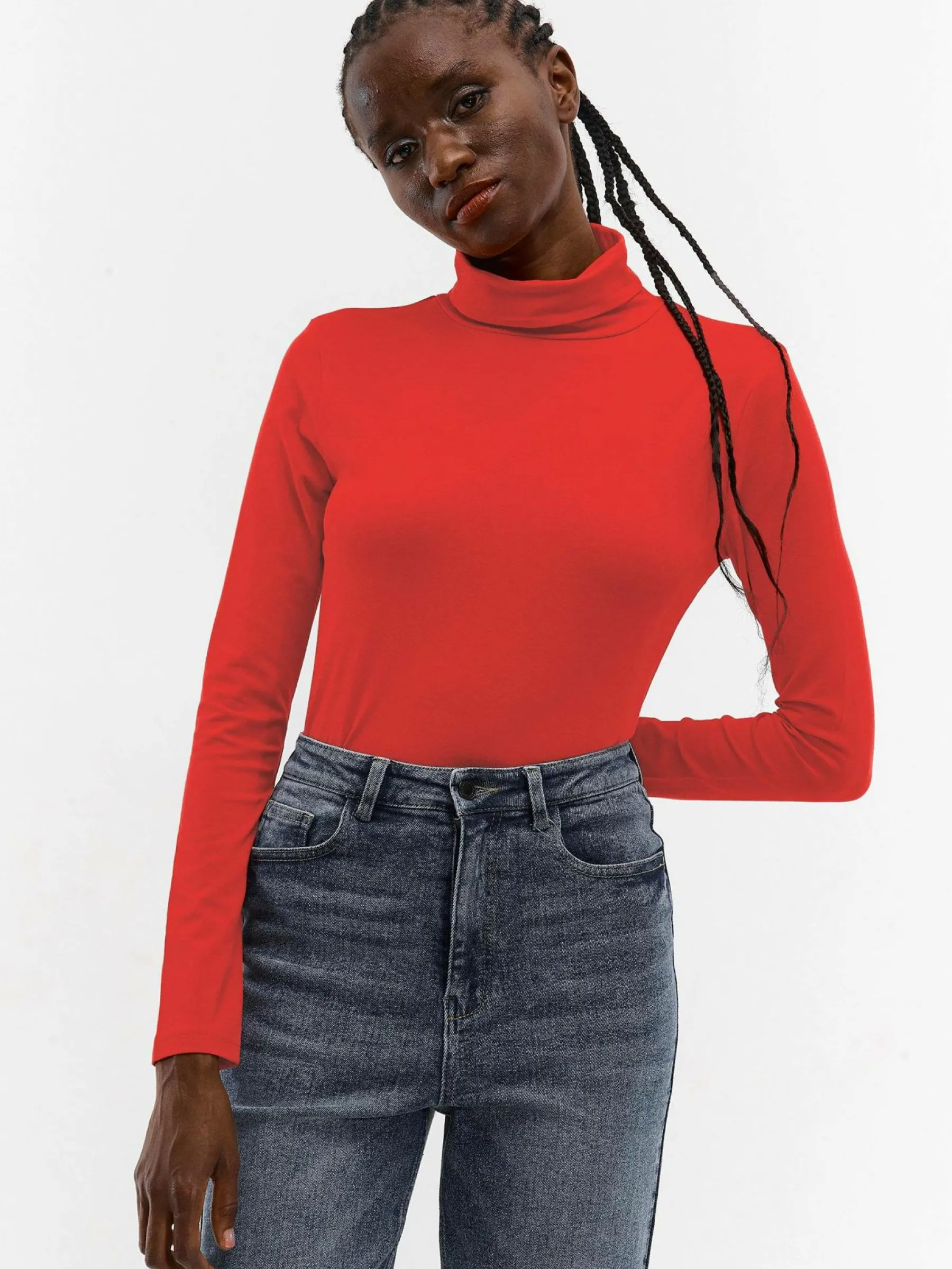Kolor: czerwonyKrój: regularTyp: golfRekaw: długi rękawDługość: krótkiPattern style: pojedynczy kolorDetal: nad g…
