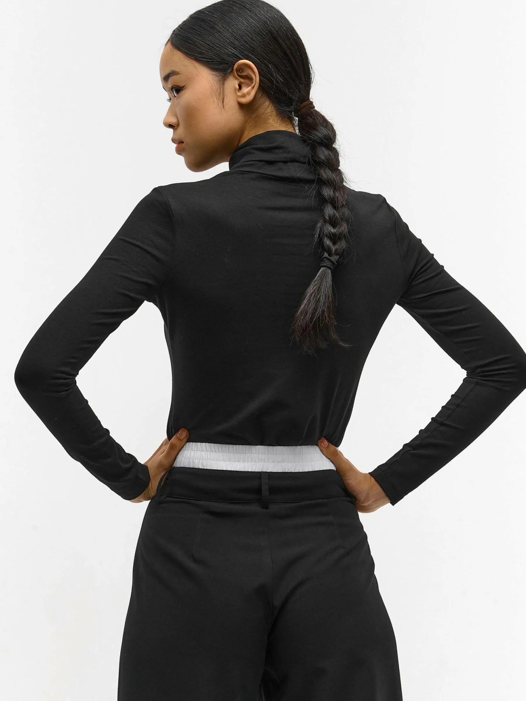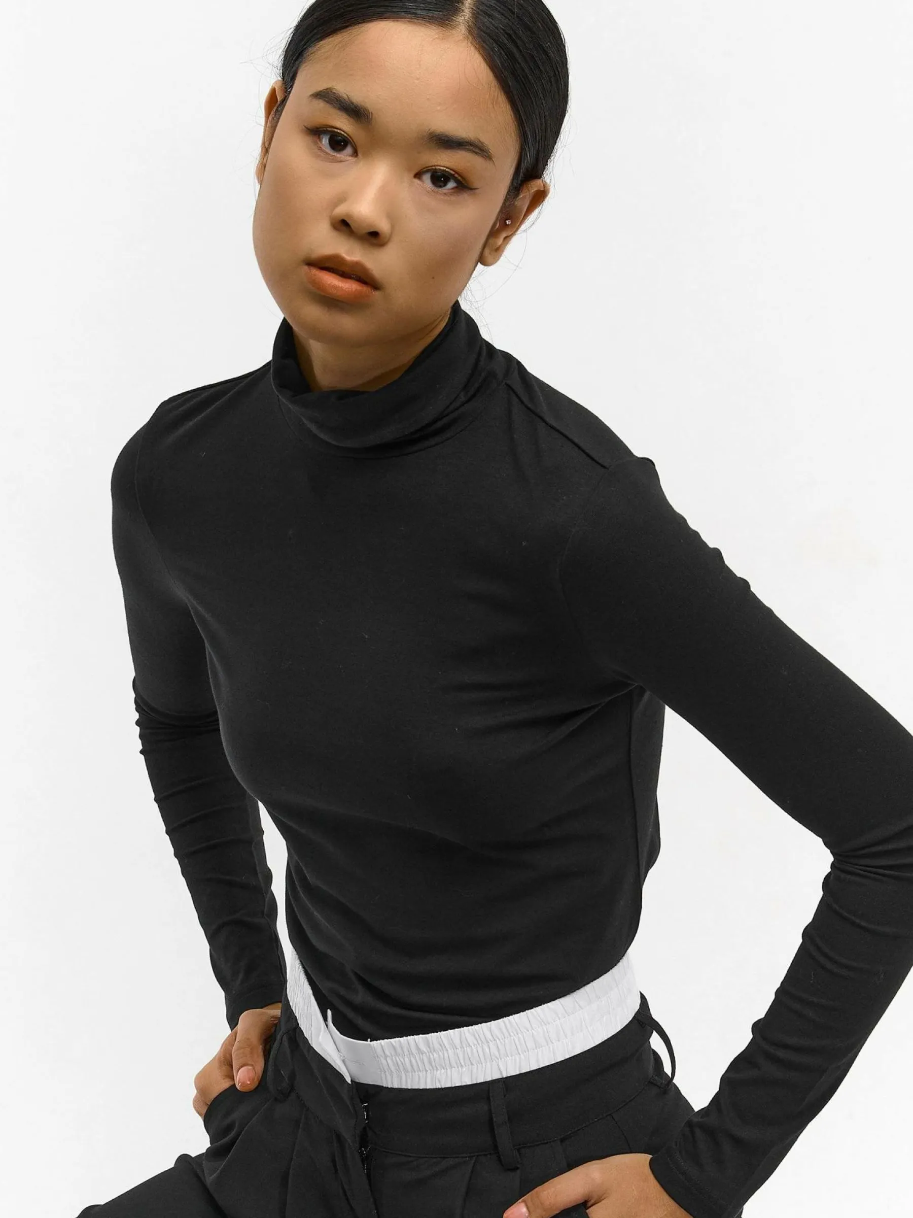 Kolor: czarnyKrój: regularTyp: golfRekaw: długi rękawDługość: krótkiPattern style: pojedynczy kolorDetal: nad gł…