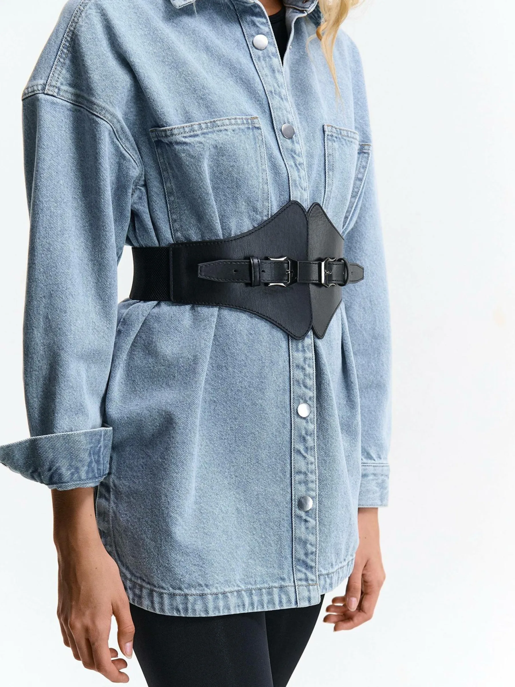 Kolor: czarnyKrój: szerokieTyp: pasekPattern style: pojedynczy kolorMateriał: syntetyczne, sztuczna skóraPłeć: kobi…