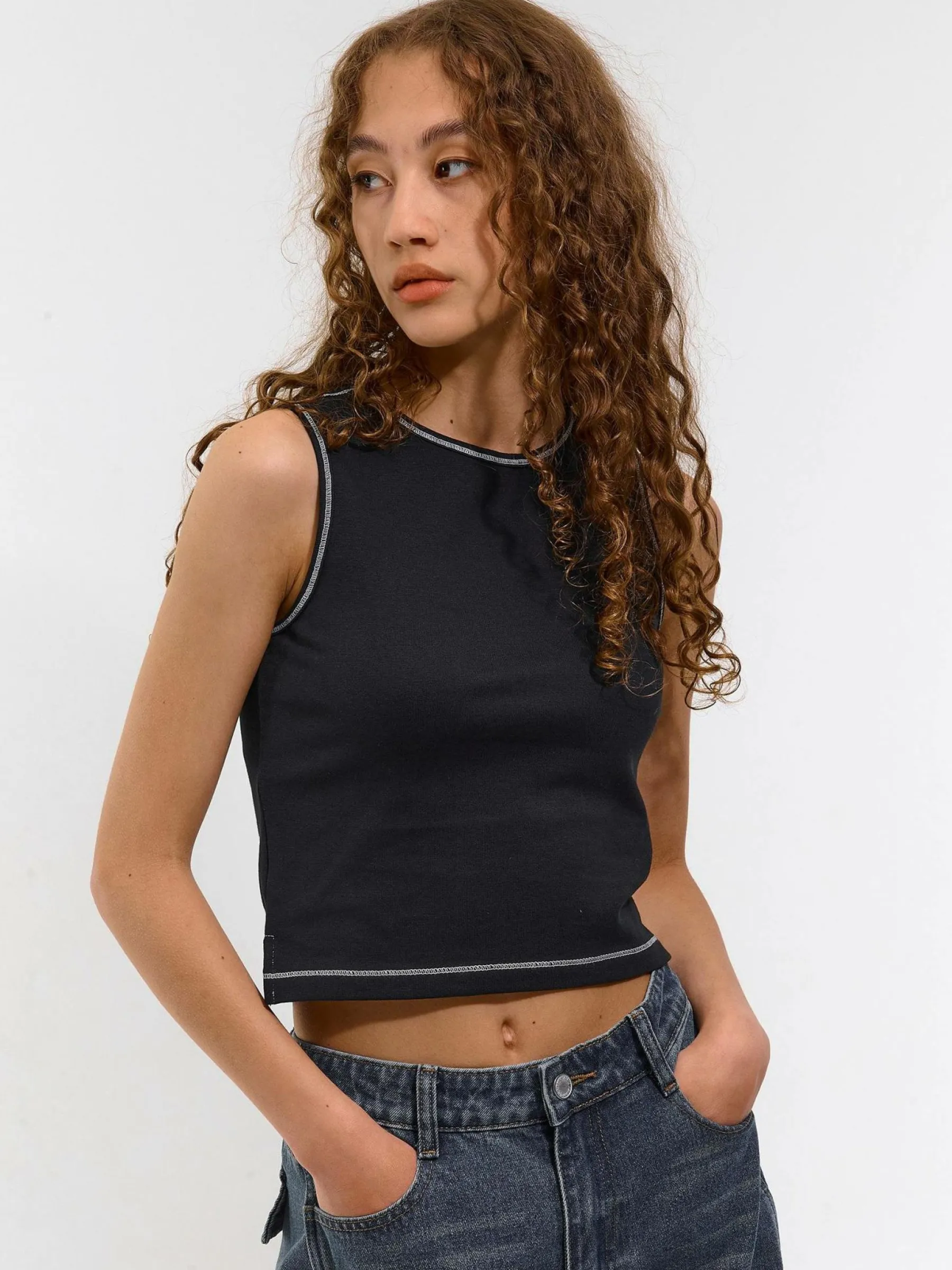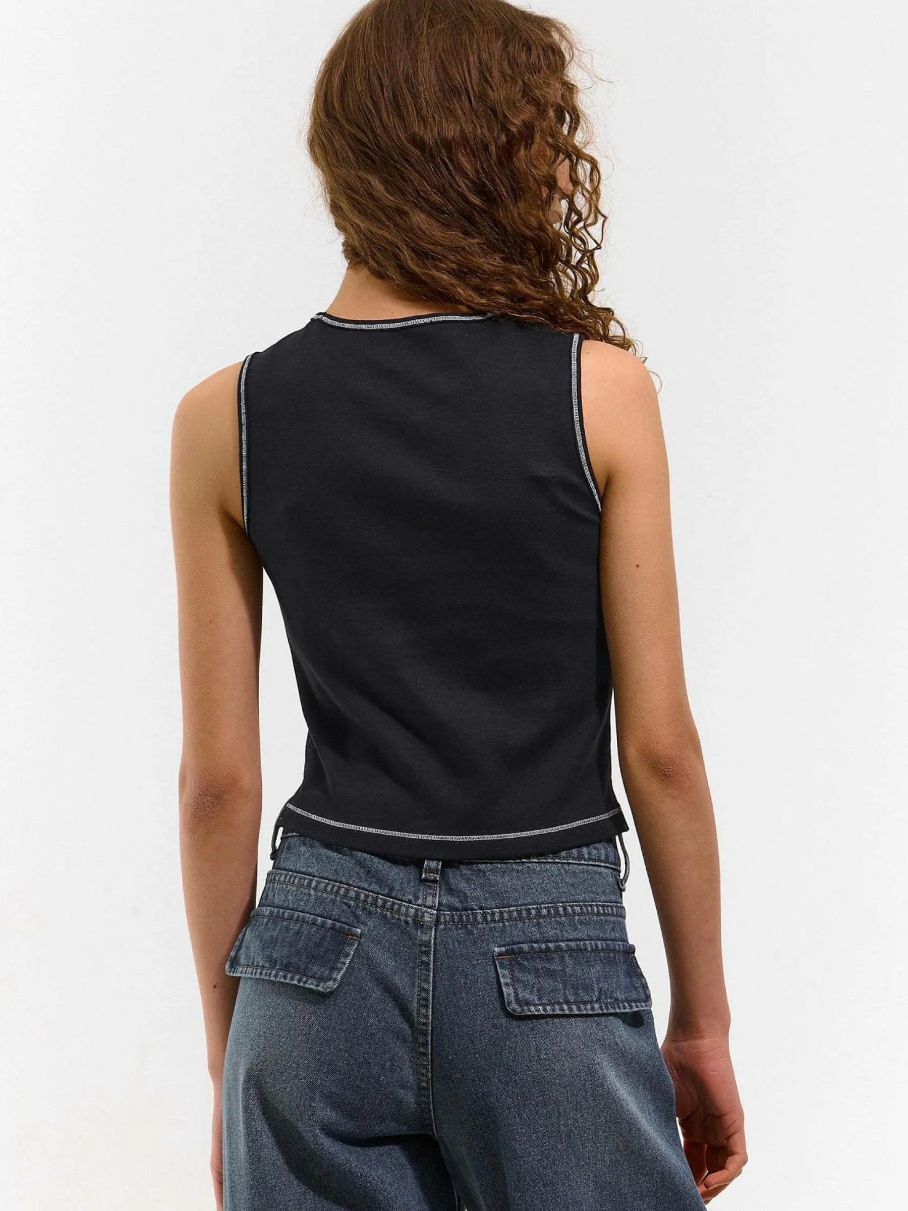 Kolor: czarnyKrój: regularTyp: podkoszulekRekaw: bez rękawówDługość: krótkiPattern style: pojedynczy kolorDetal: …
