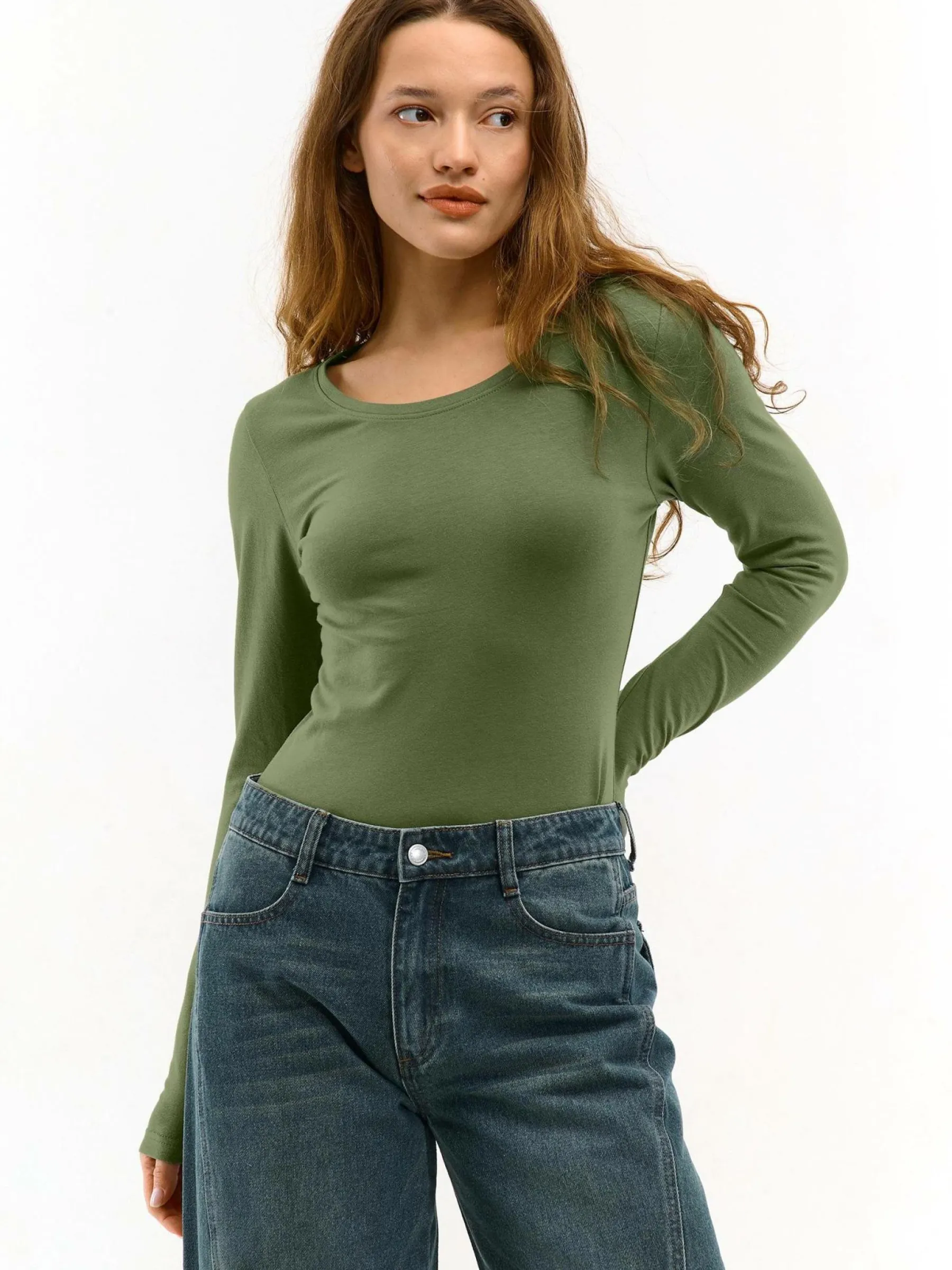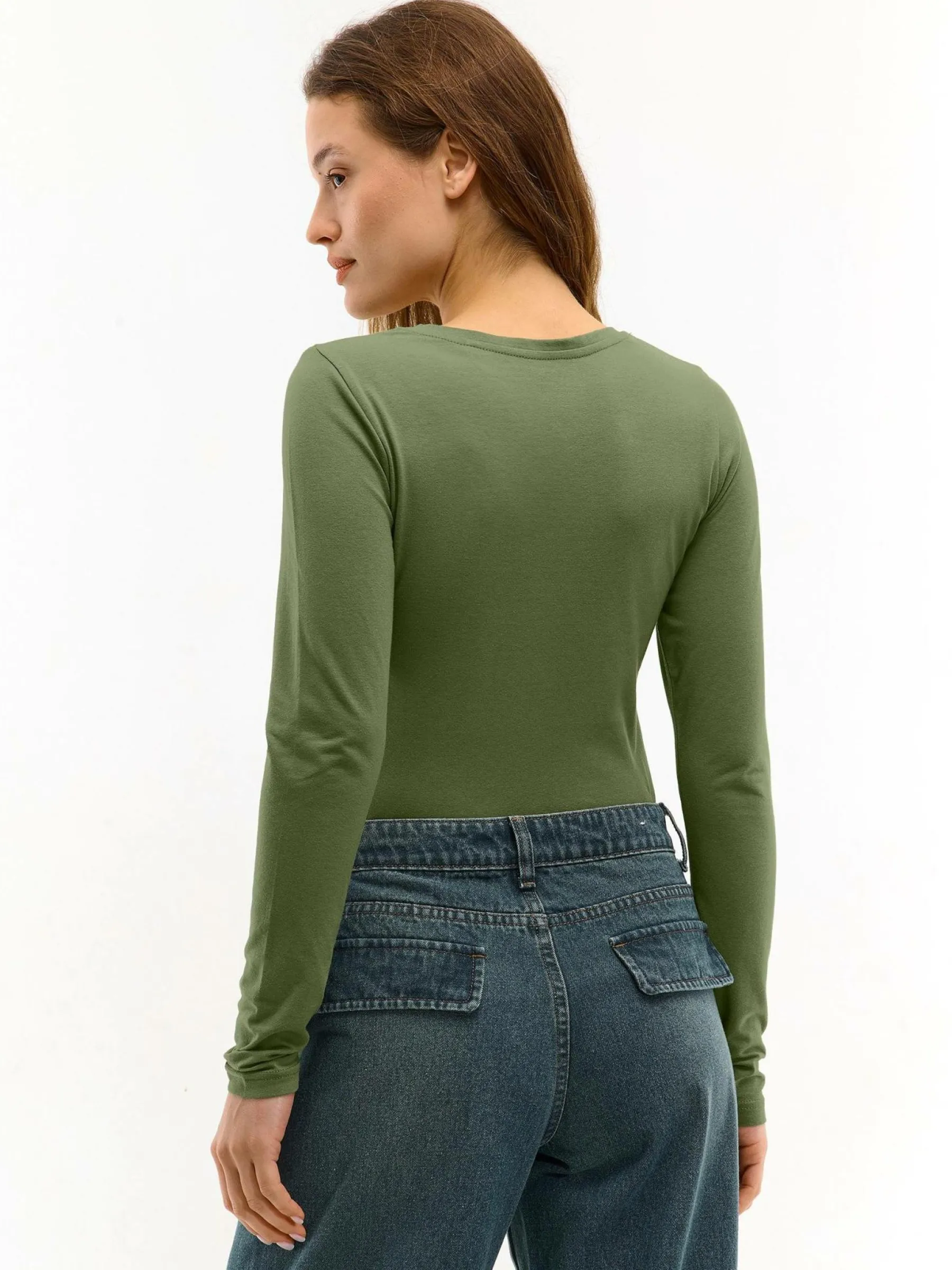 Kolor: khakiKrój: regularTyp: koszulkaRekaw: długi rękawDługość: krótkiPattern style: pojedynczy kolorDetal: nad …