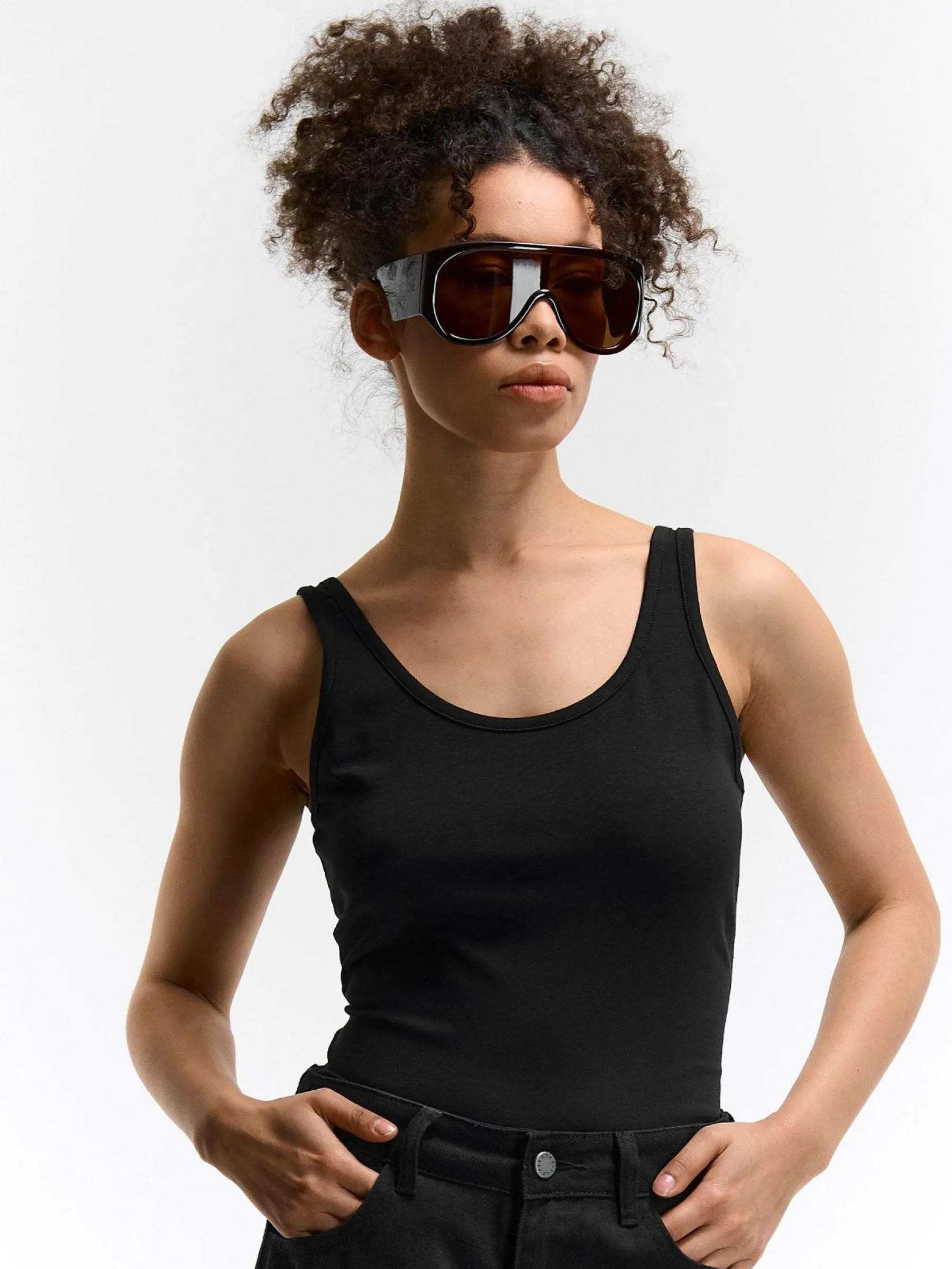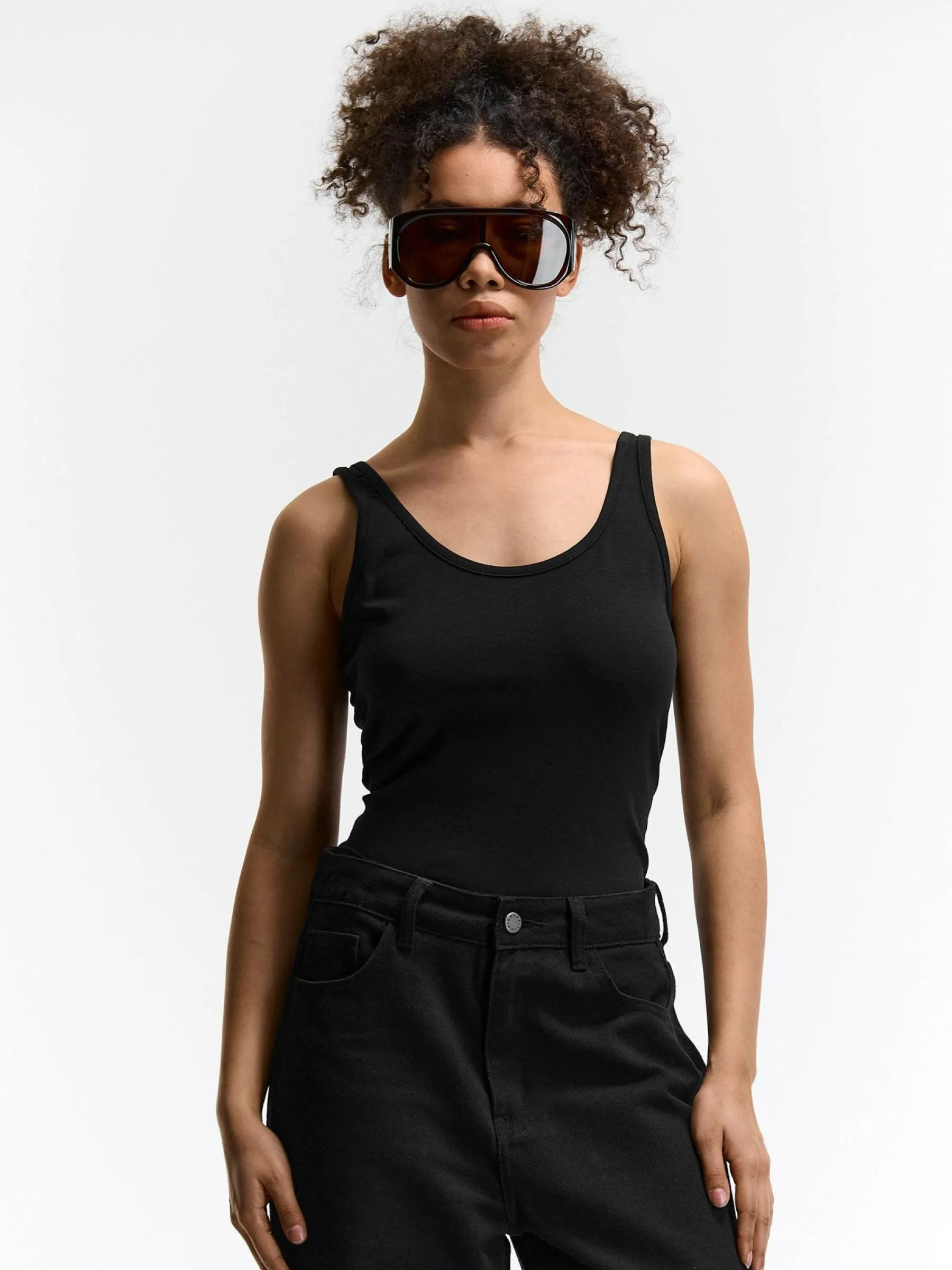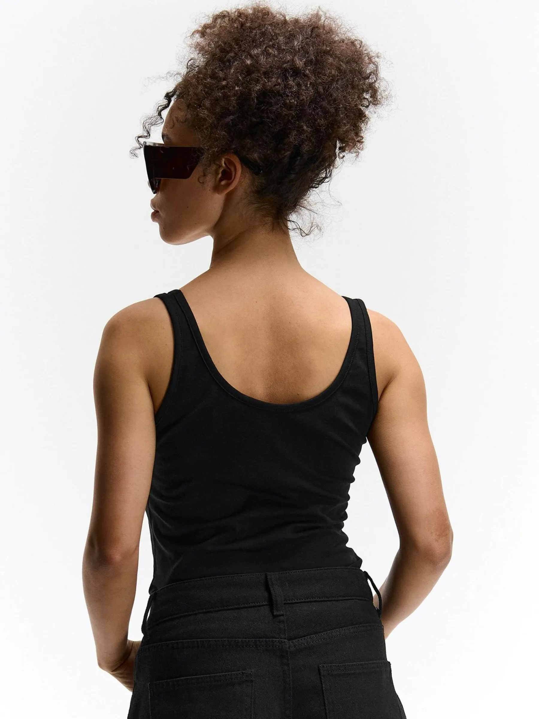 Kolor: czarnyKrój: regularTyp: podkoszulekRekaw: bez rękawówDługość: krótkiPattern style: pojedynczy kolorDetal: …