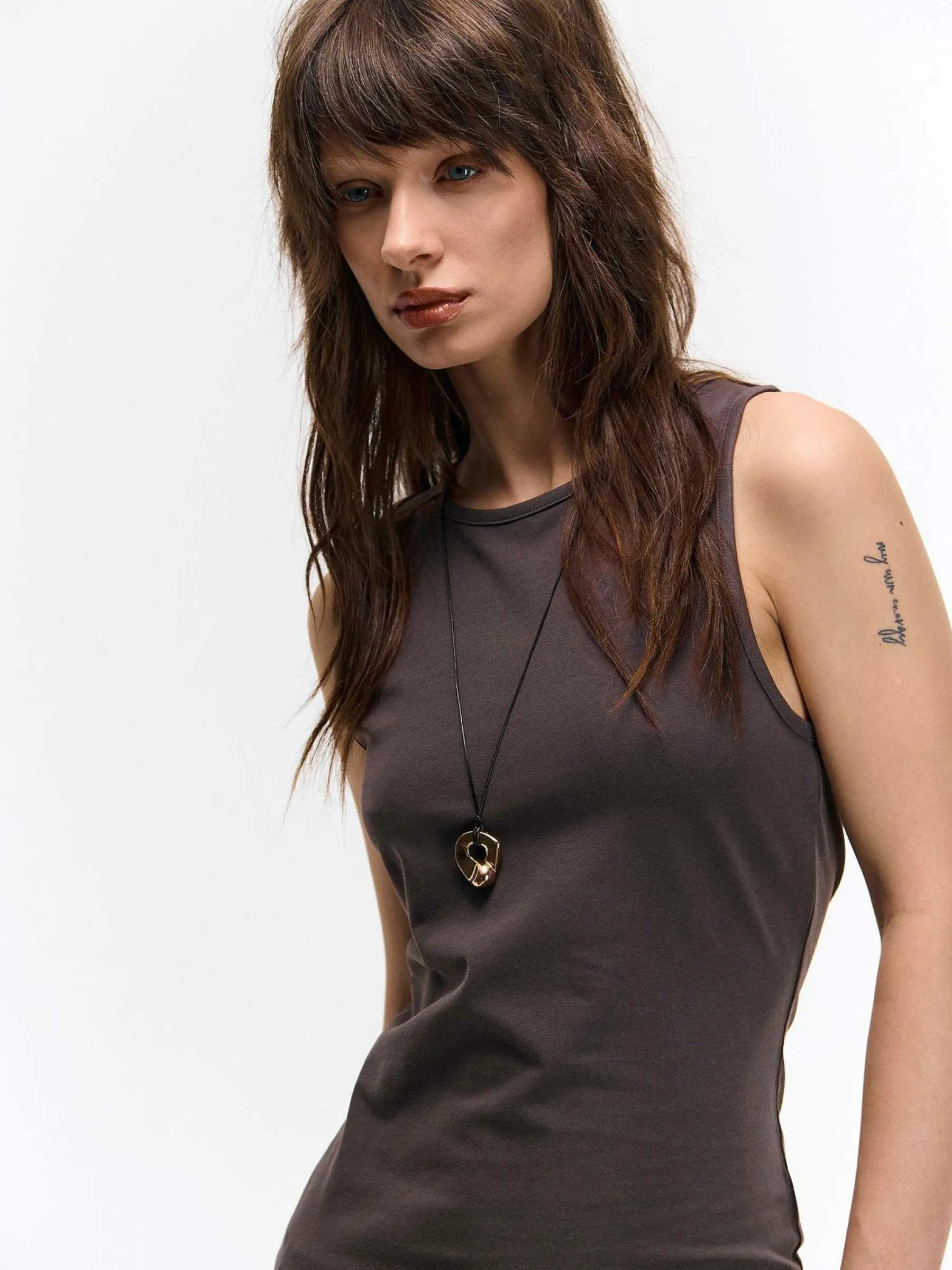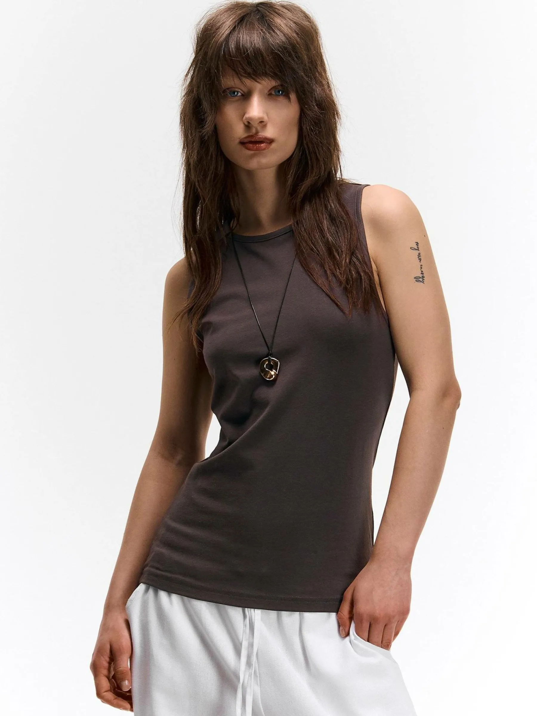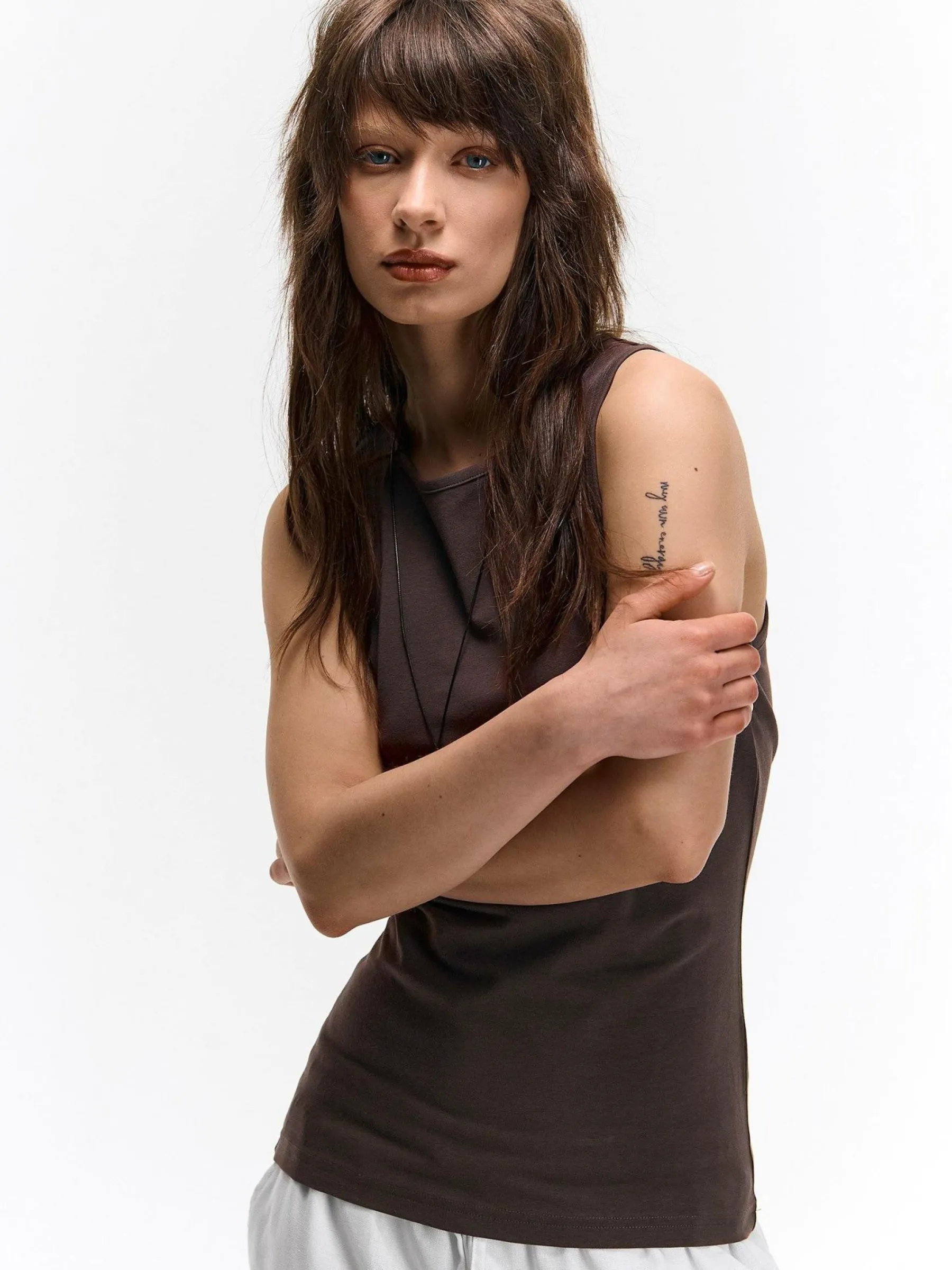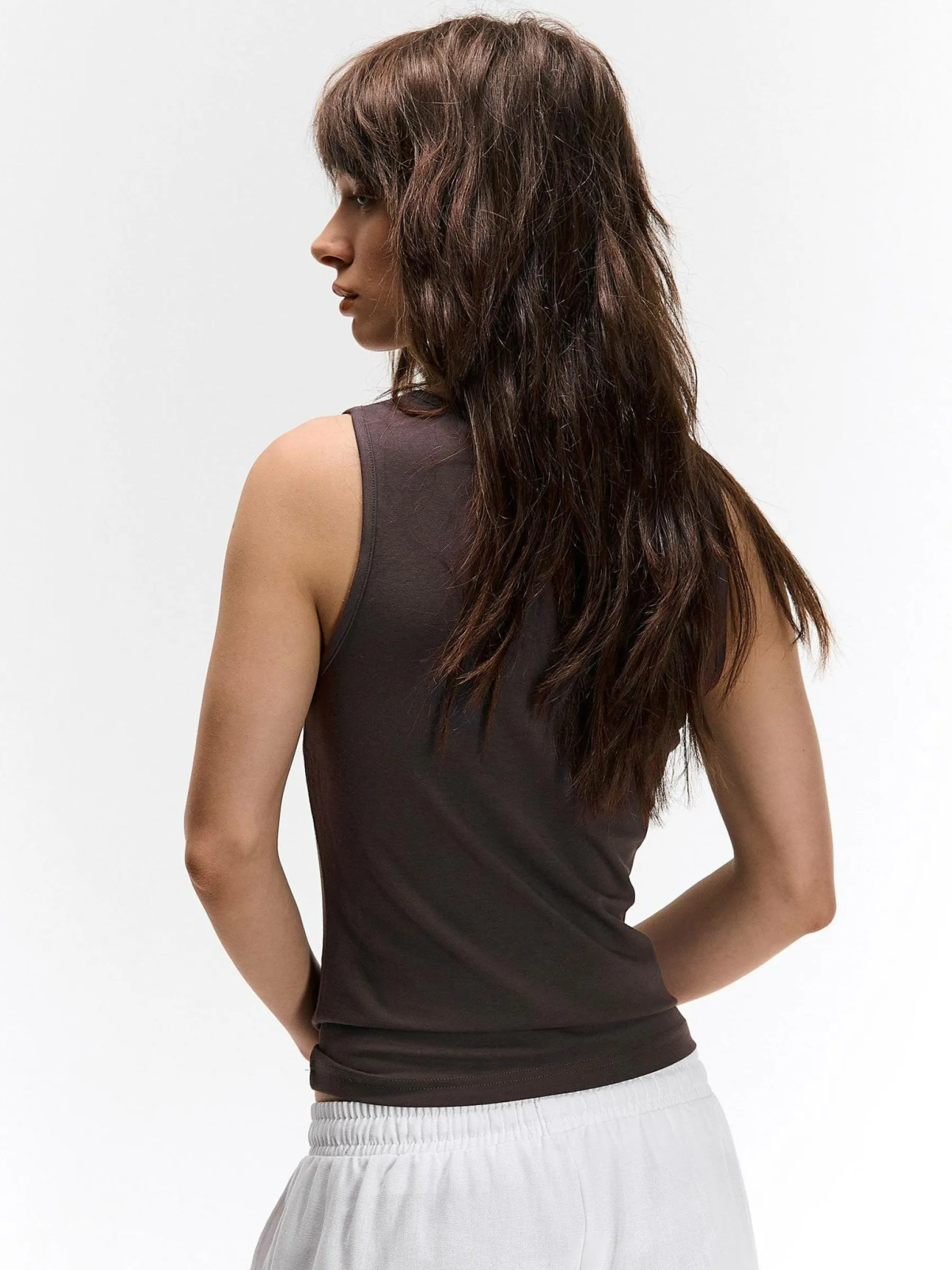 Kolor: brązowyKrój: regularTyp: podkoszulekRekaw: bez rękawówDługość: krótkiPattern style: pojedynczy kolorDetal…