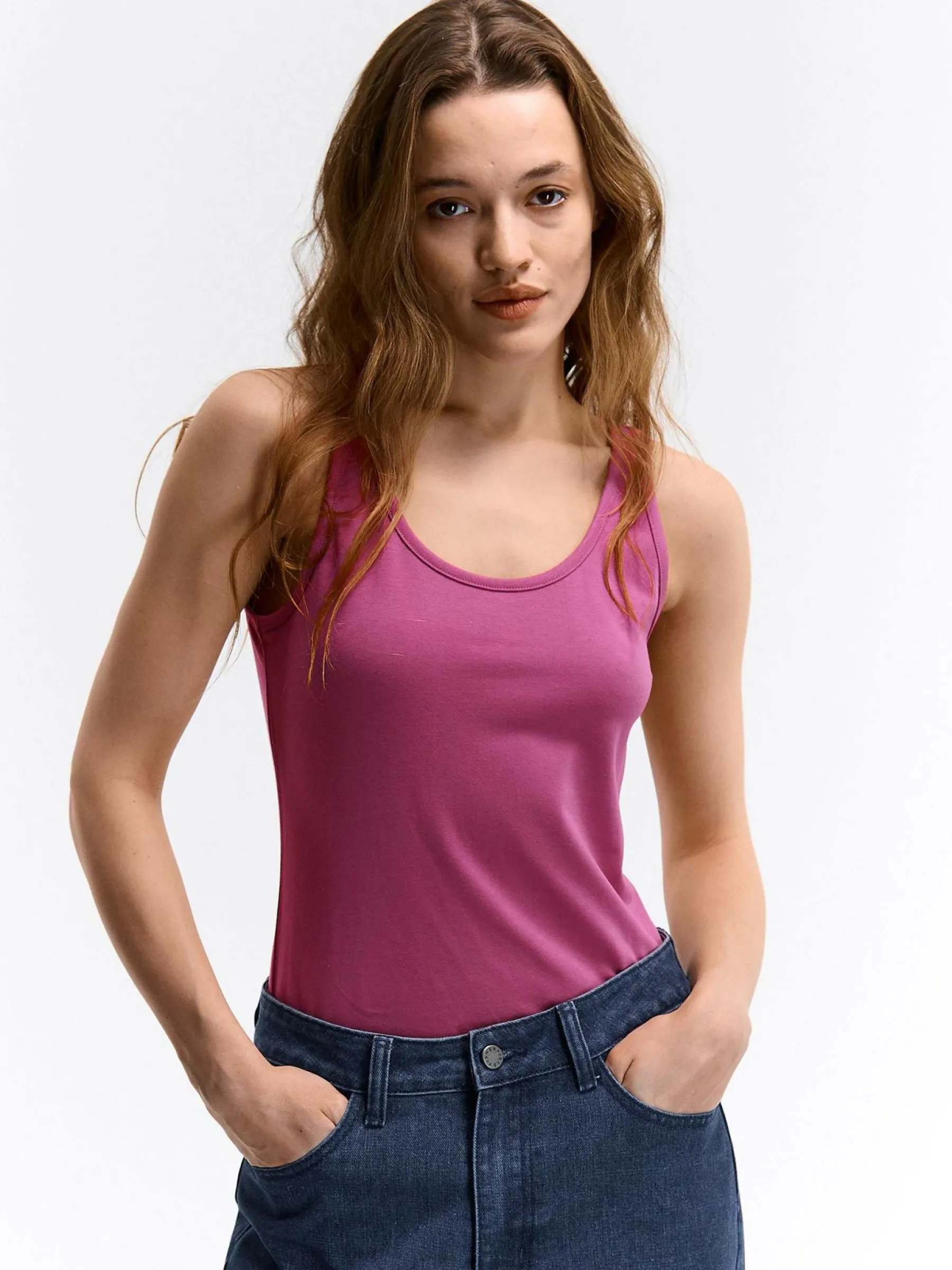 Kolor: różowyKrój: regularTyp: podkoszulekRekaw: bez rękawówDługość: krótkiPattern style: pojedynczy kolorDetal…