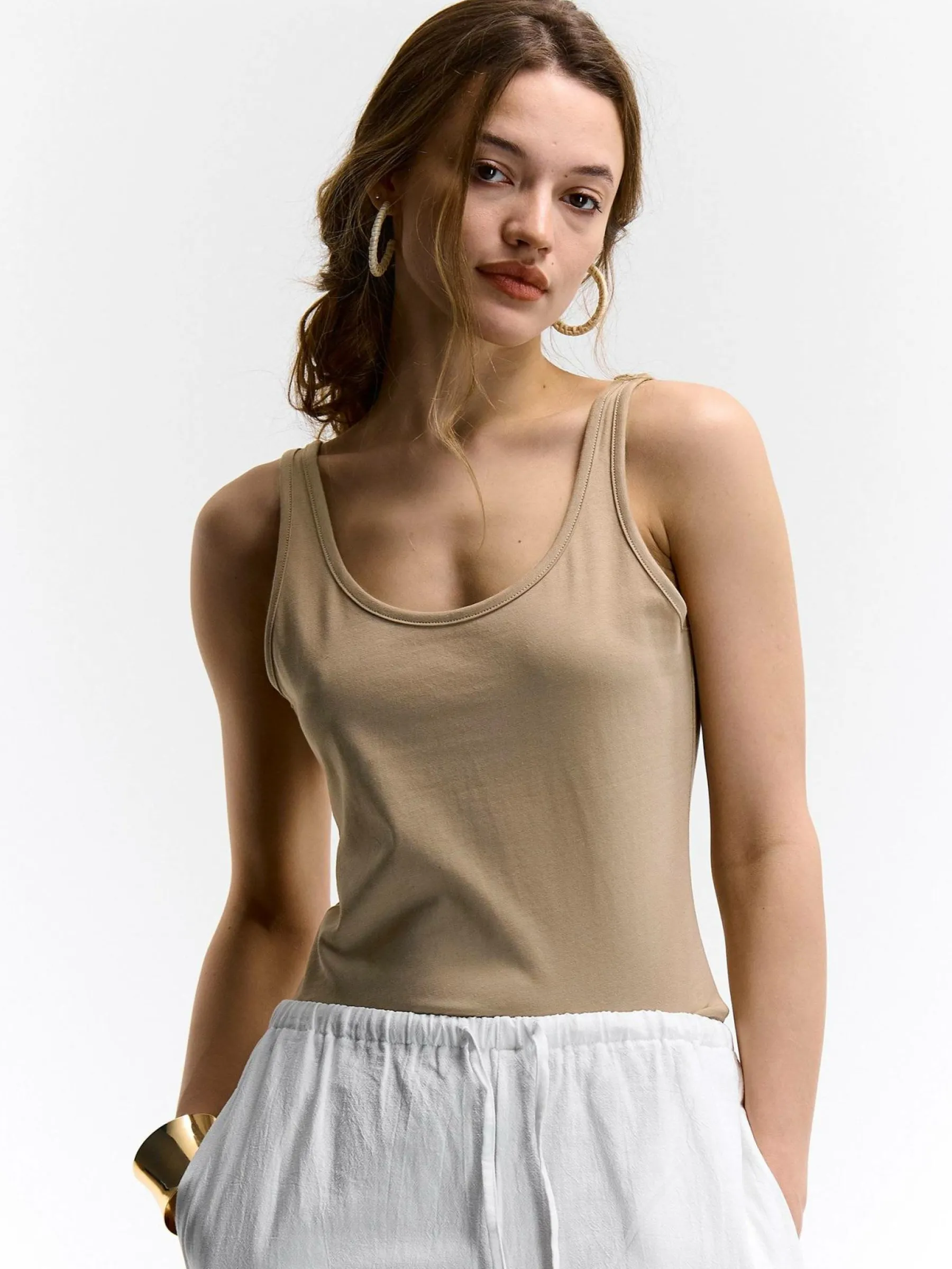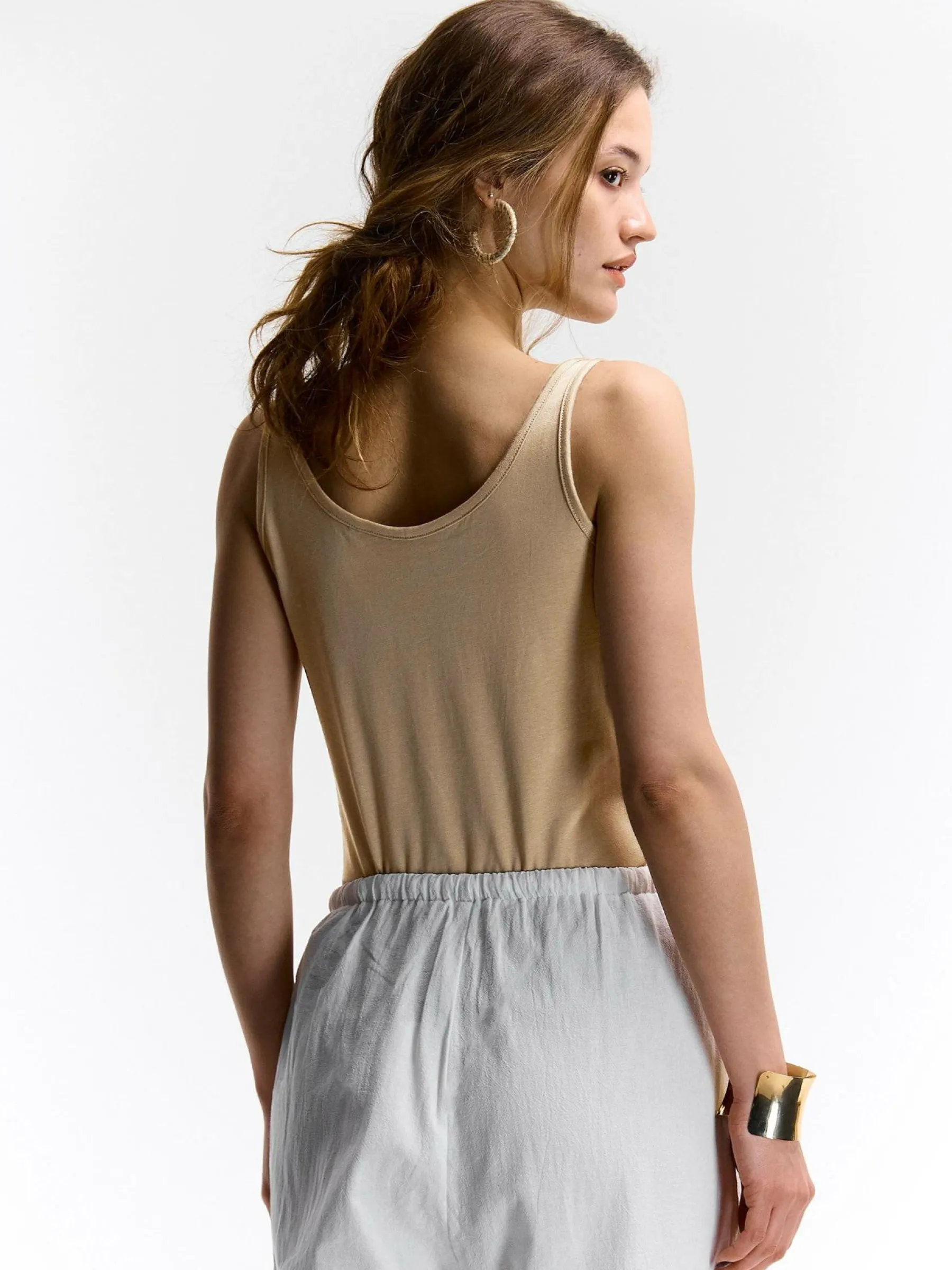 Kolor: beżowyKrój: regularTyp: podkoszulekRekaw: bez rękawówDługość: krótkiPattern style: pojedynczy kolorDetal:…