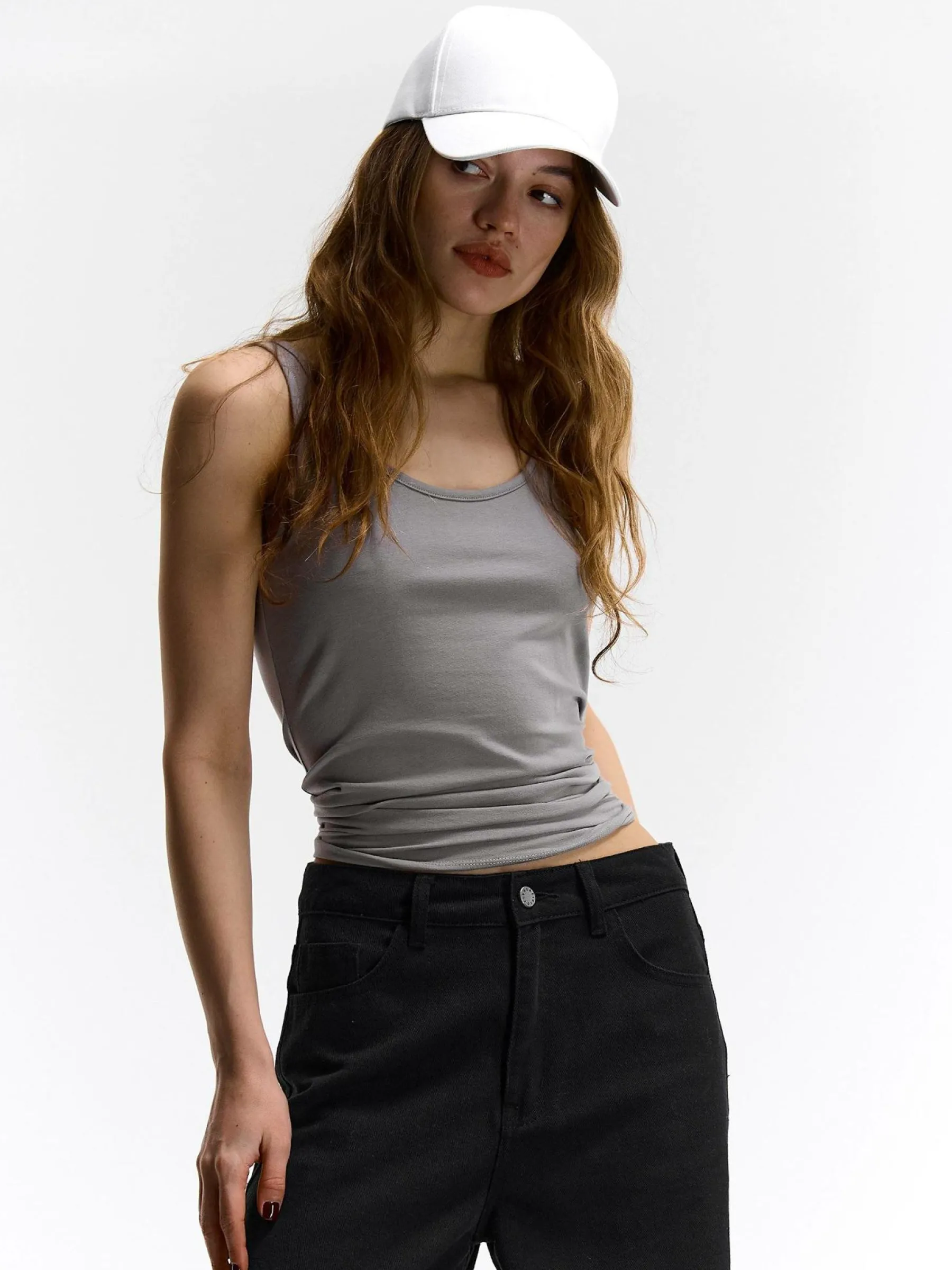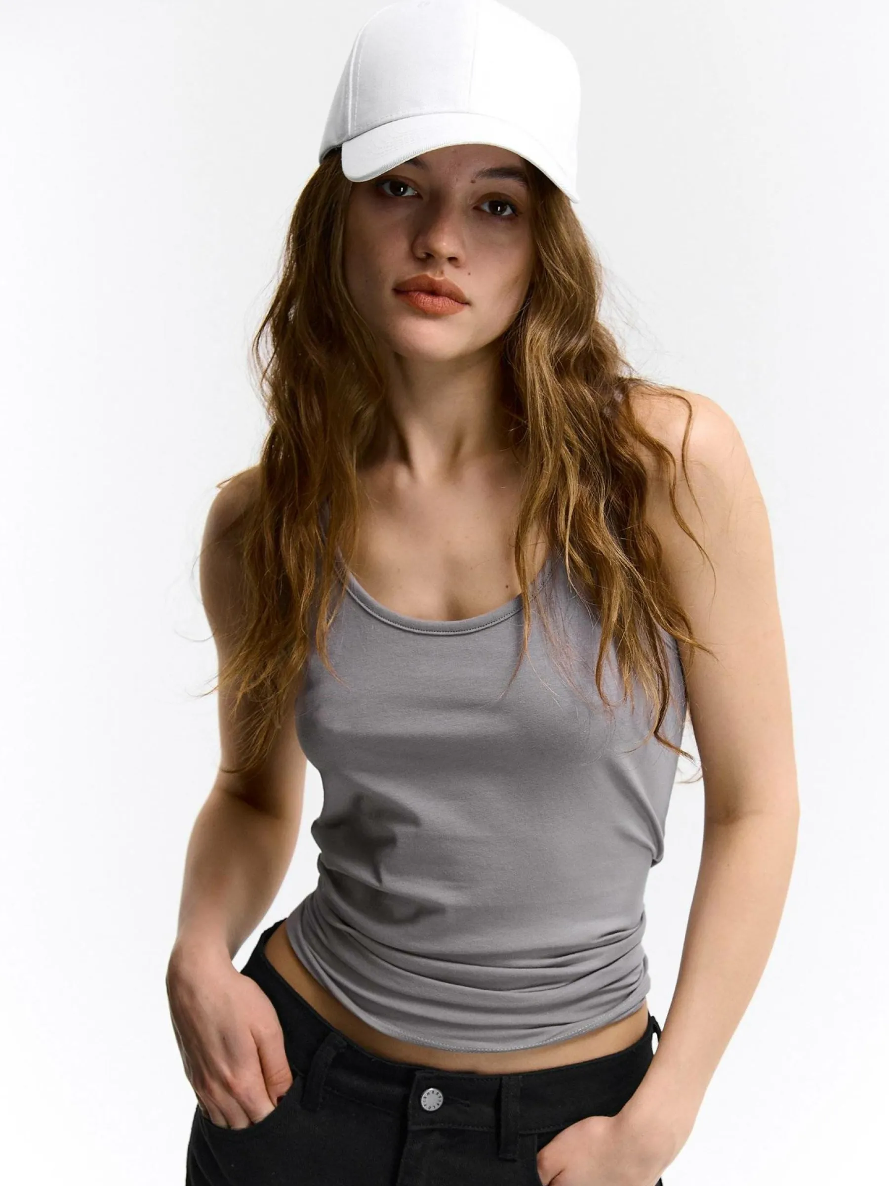 Kolor: szaryKrój: regularTyp: podkoszulekRekaw: bez rękawówDługość: krótkiPattern style: pojedynczy kolorDetal: n…