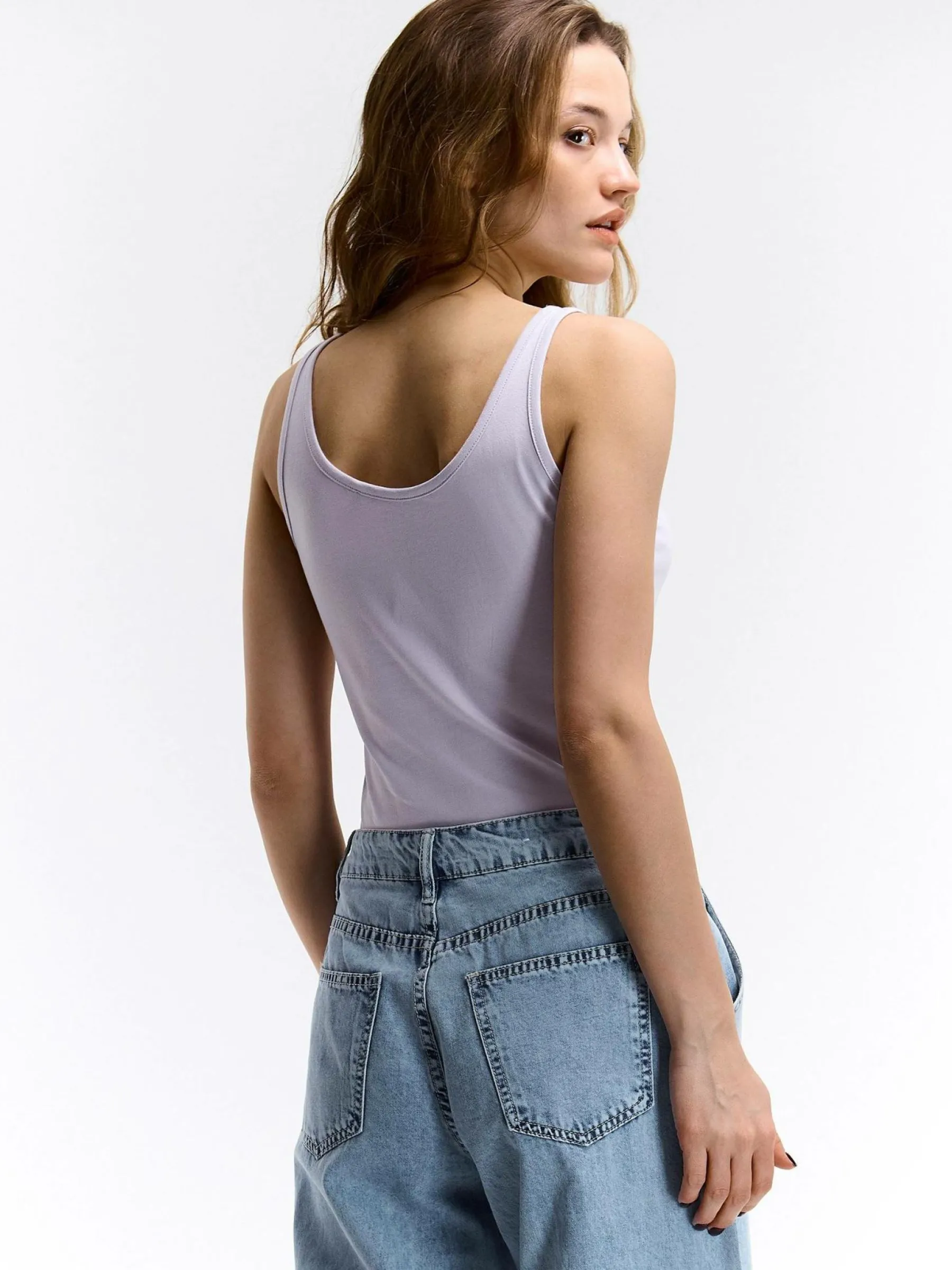 Kolor: purpurowyKrój: regularTyp: podkoszulekRekaw: bez rękawówDługość: krótkiPattern style: pojedynczy kolorDeta…