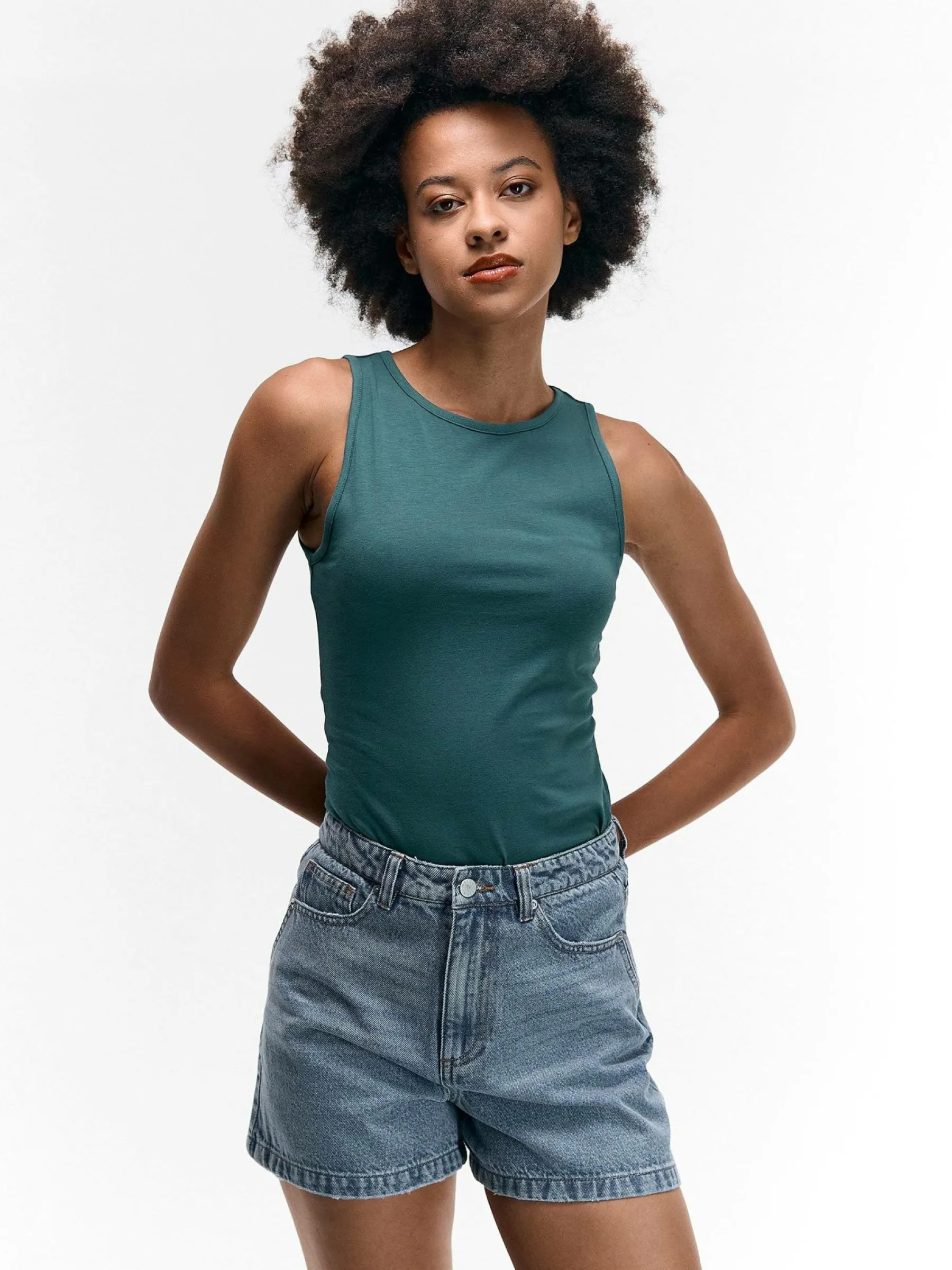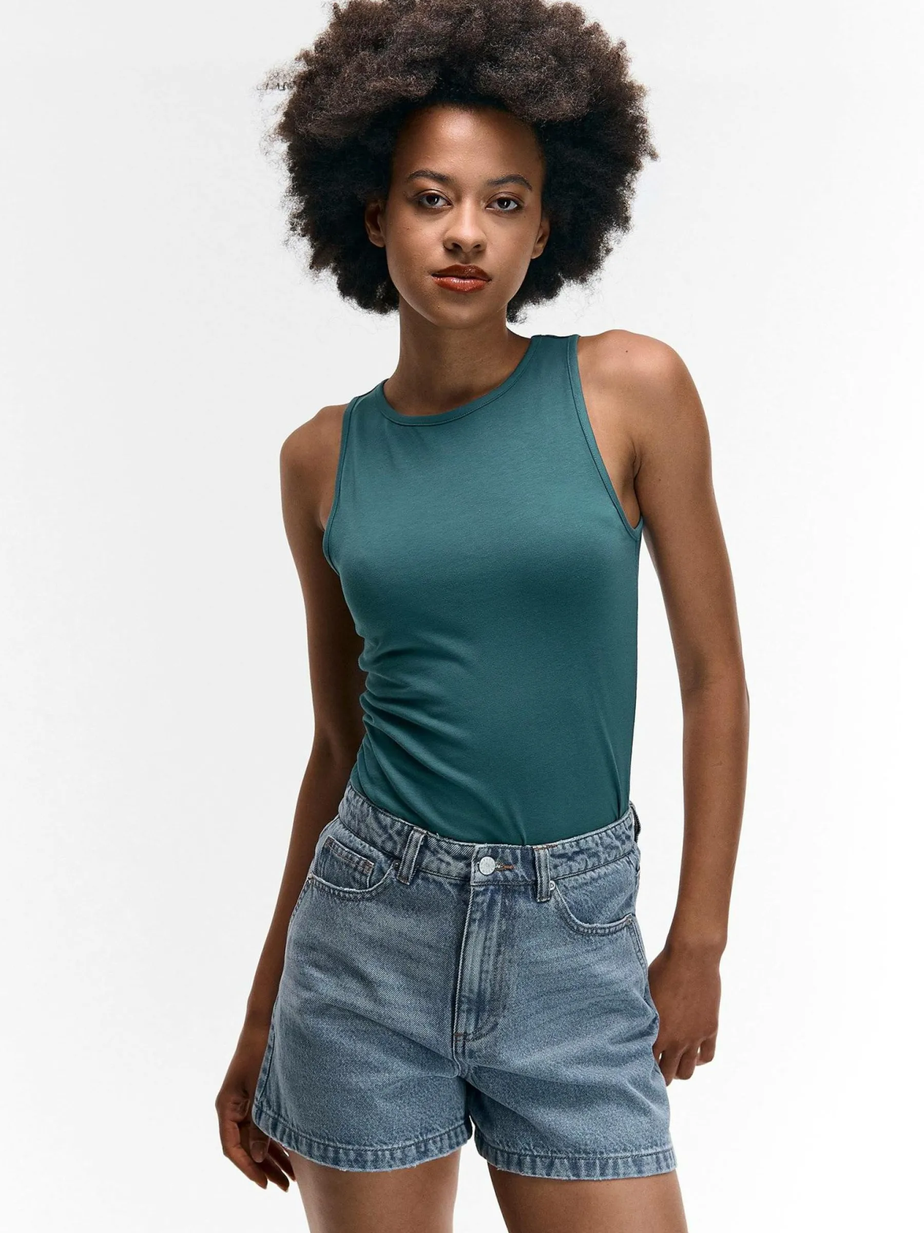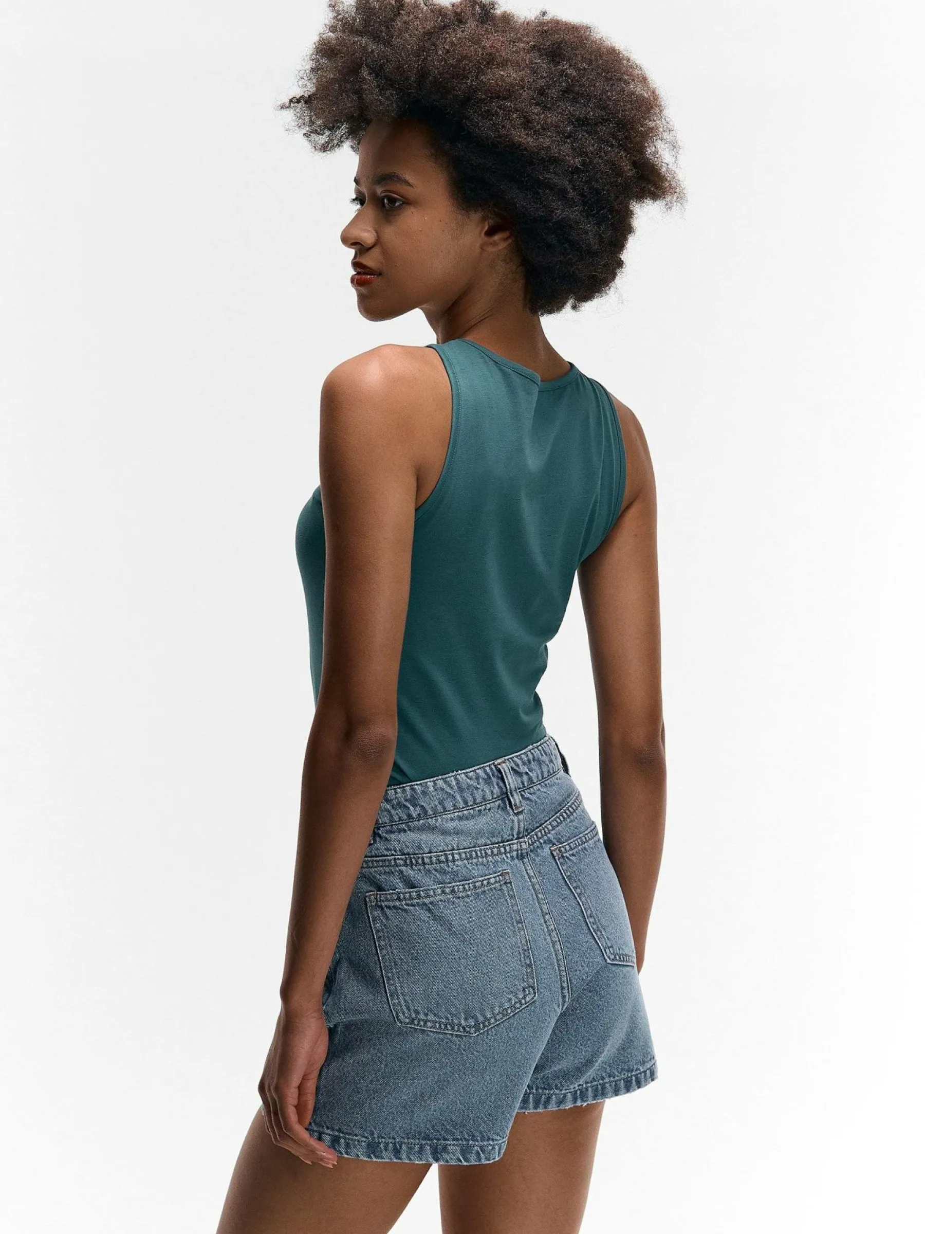 Kolor: zielonyKrój: regularTyp: podkoszulekRekaw: bez rękawówDługość: krótkiPattern style: pojedynczy kolorDetal:…