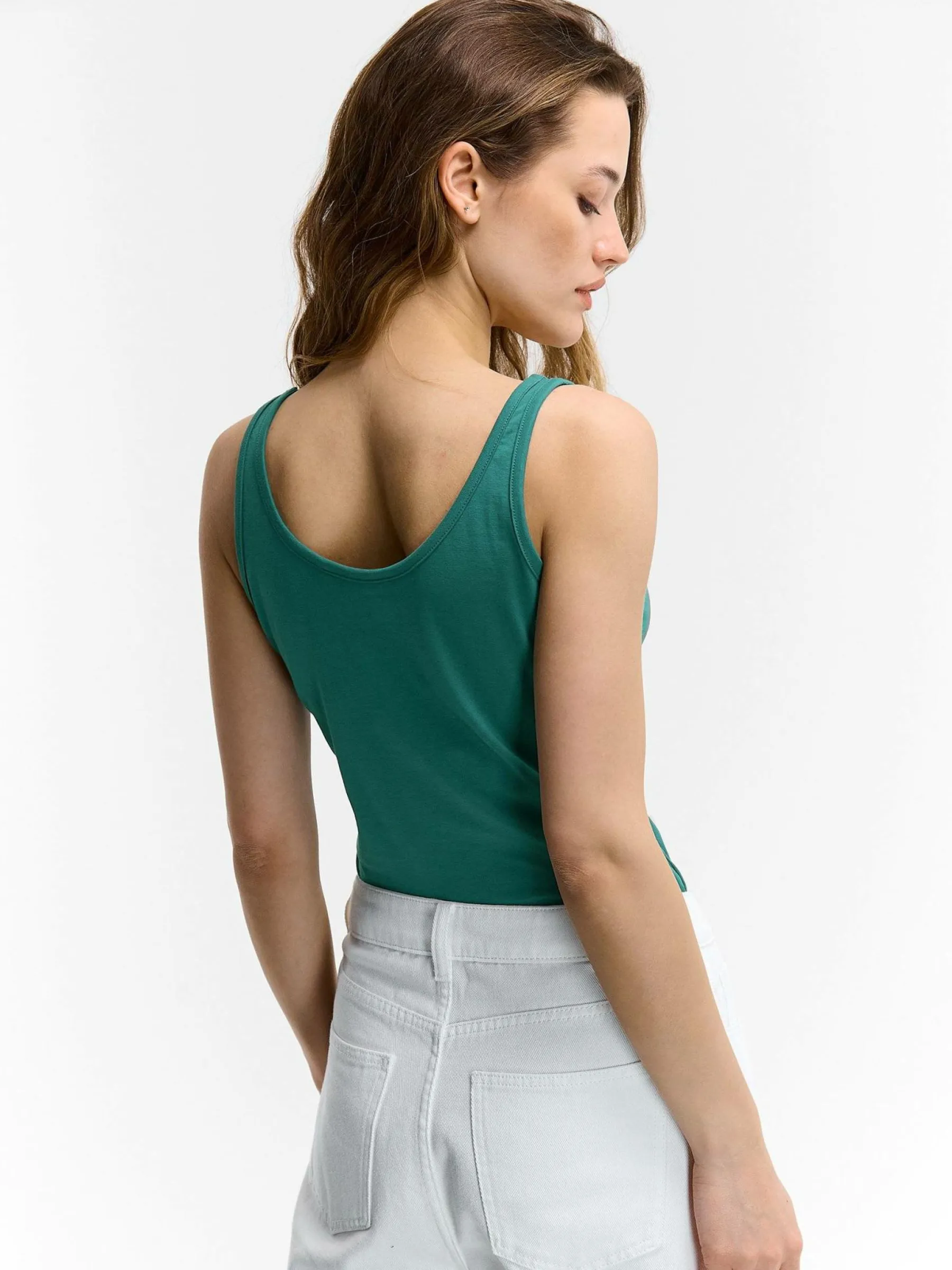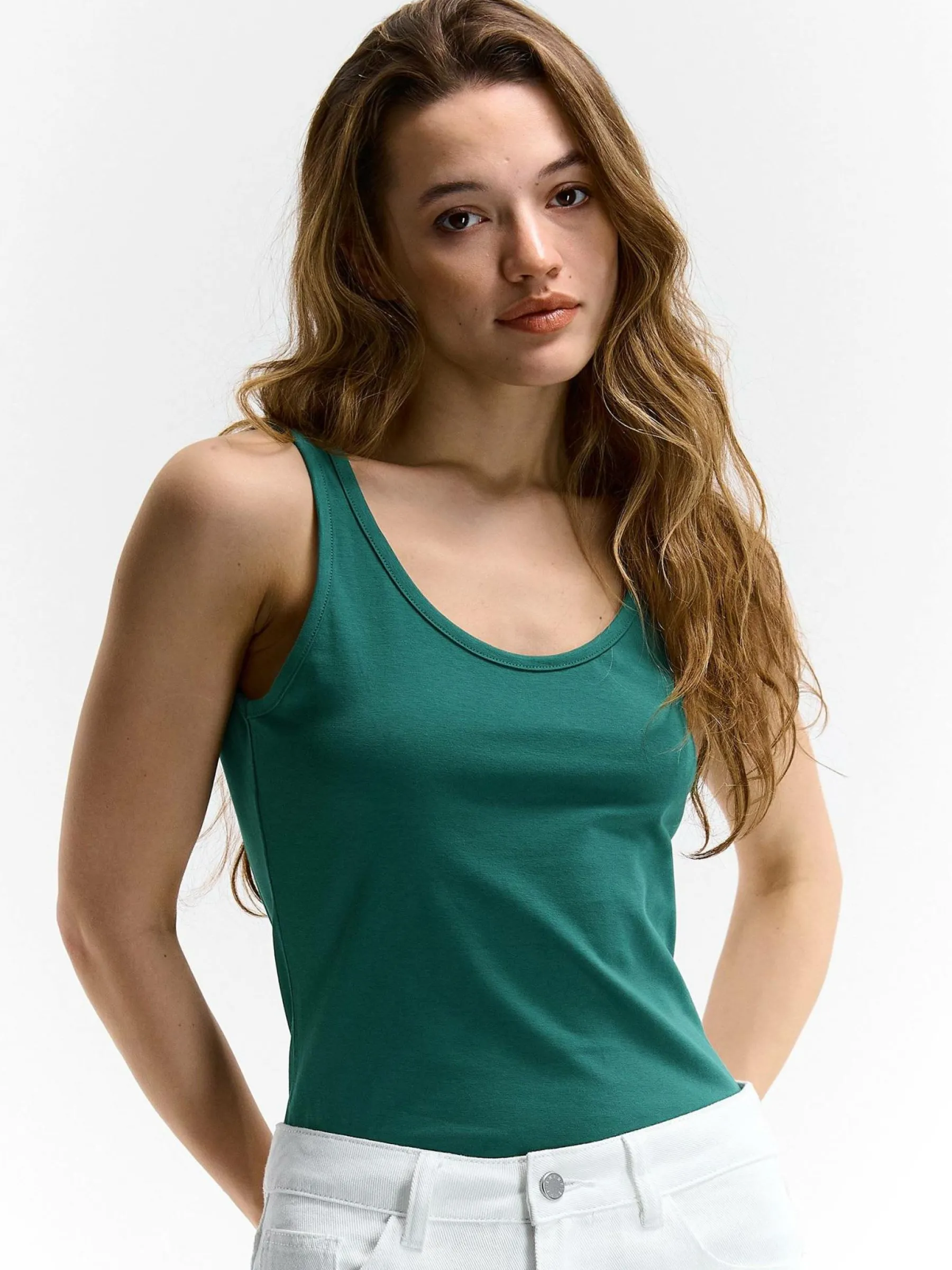 Kolor: zielonyKrój: regularTyp: podkoszulekRekaw: bez rękawówDługość: krótkiPattern style: pojedynczy kolorDetal:…