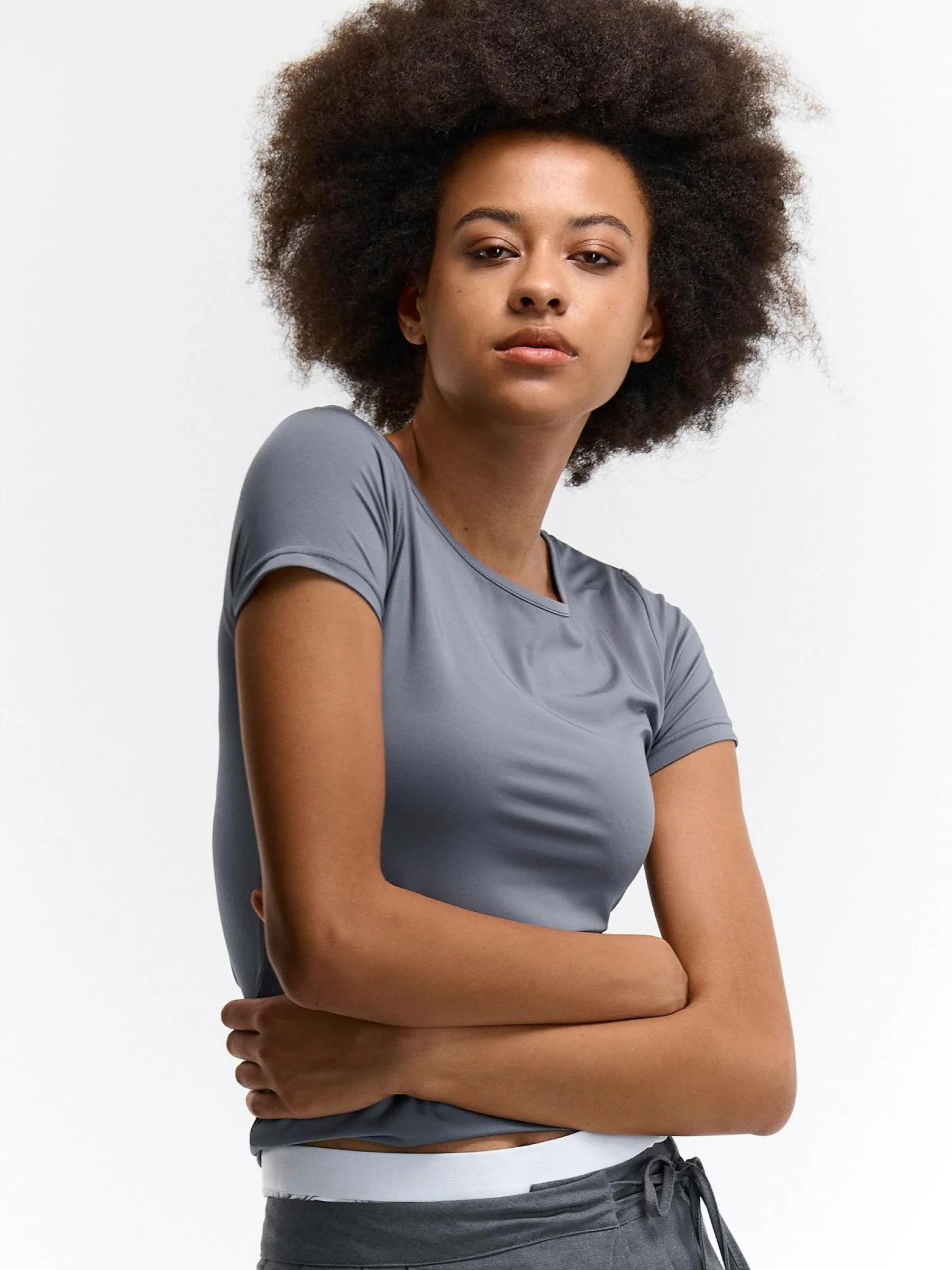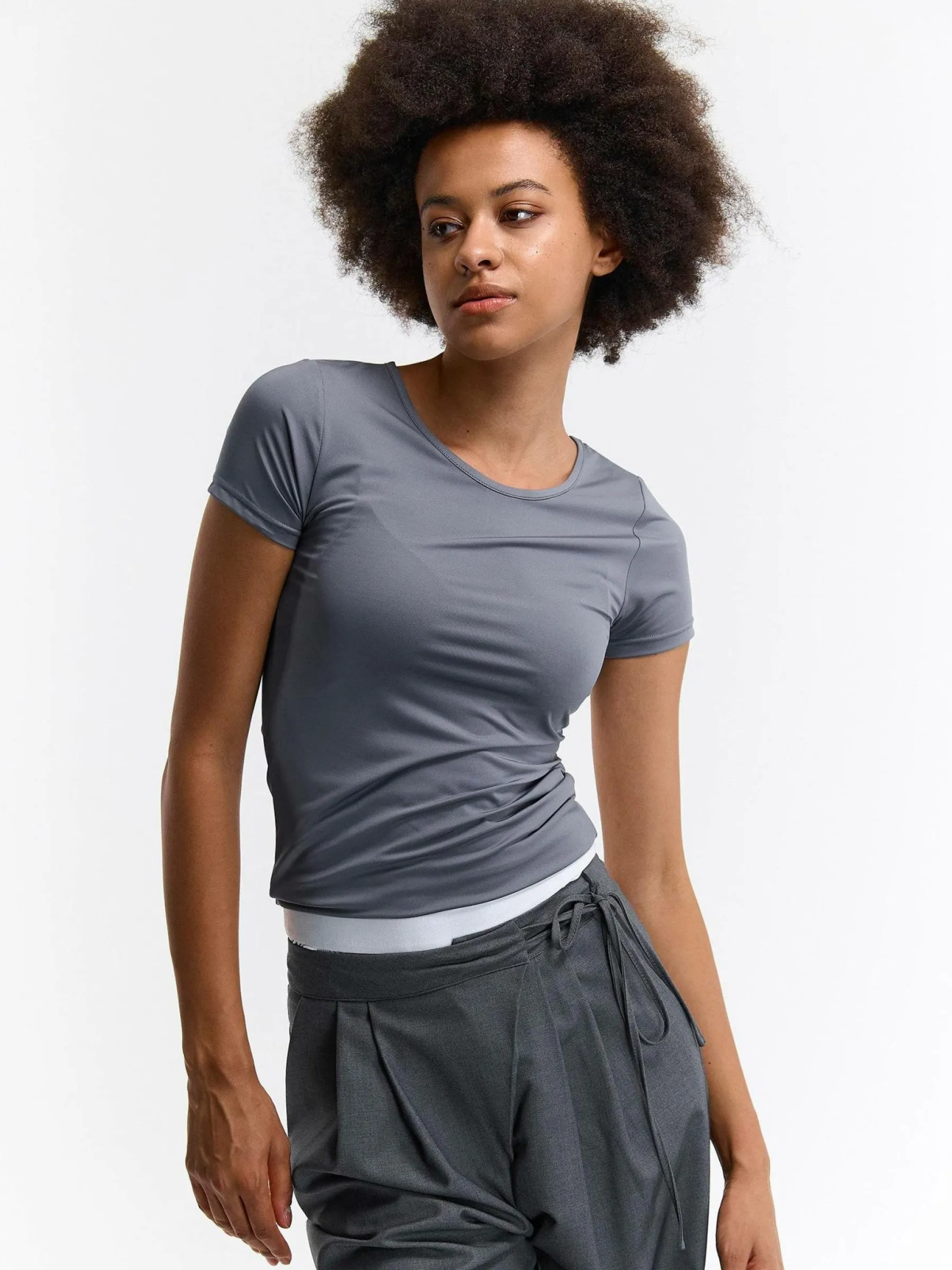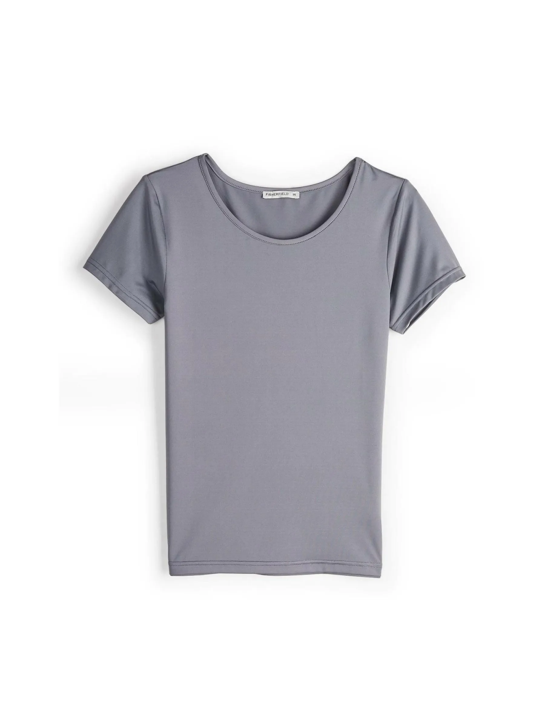 Kolor: szaryKrój: regularTyp: koszulkaRekaw: krótki rękawDługość: krótkiPattern style: pojedynczy kolorDetal: nad…