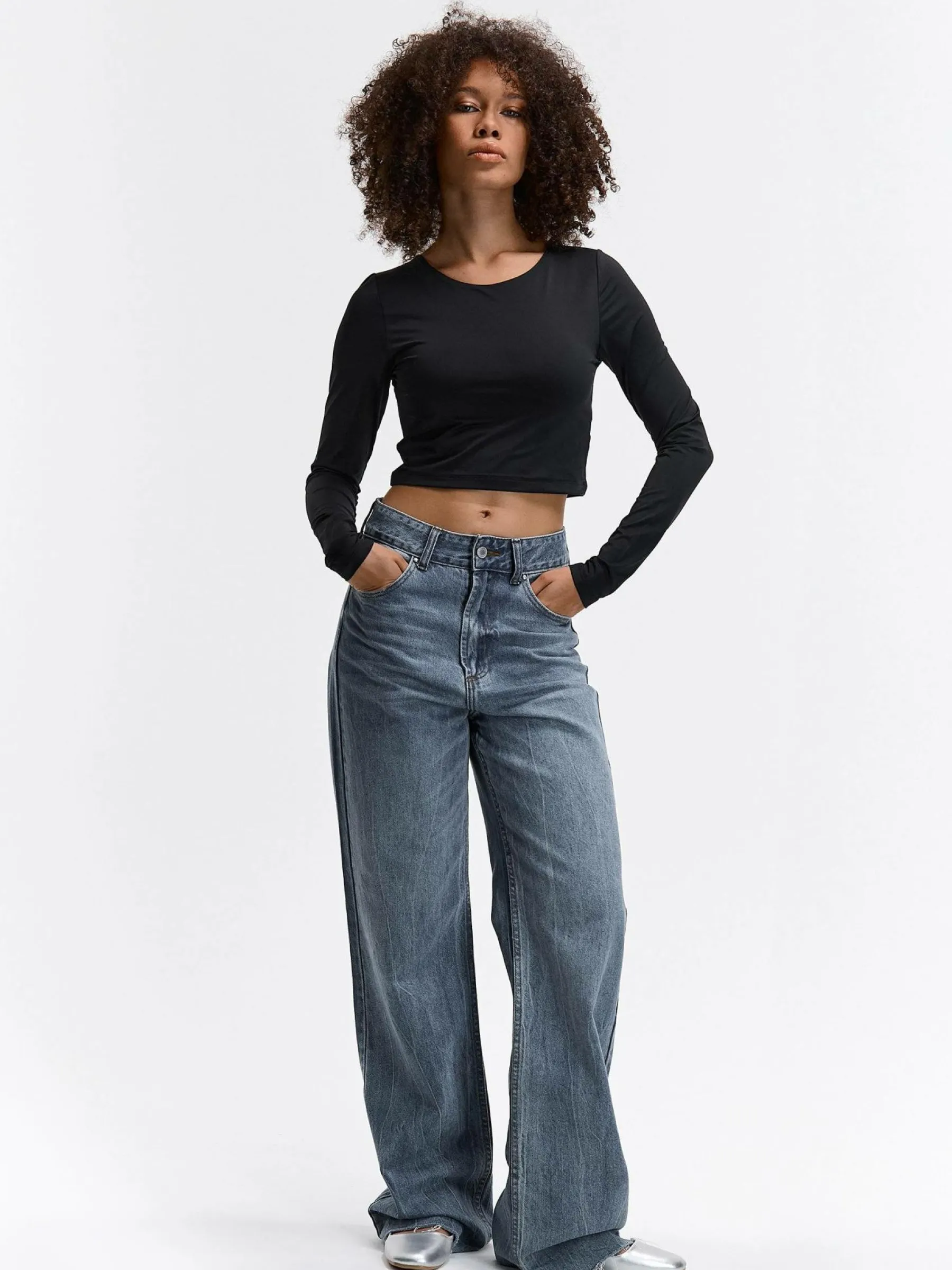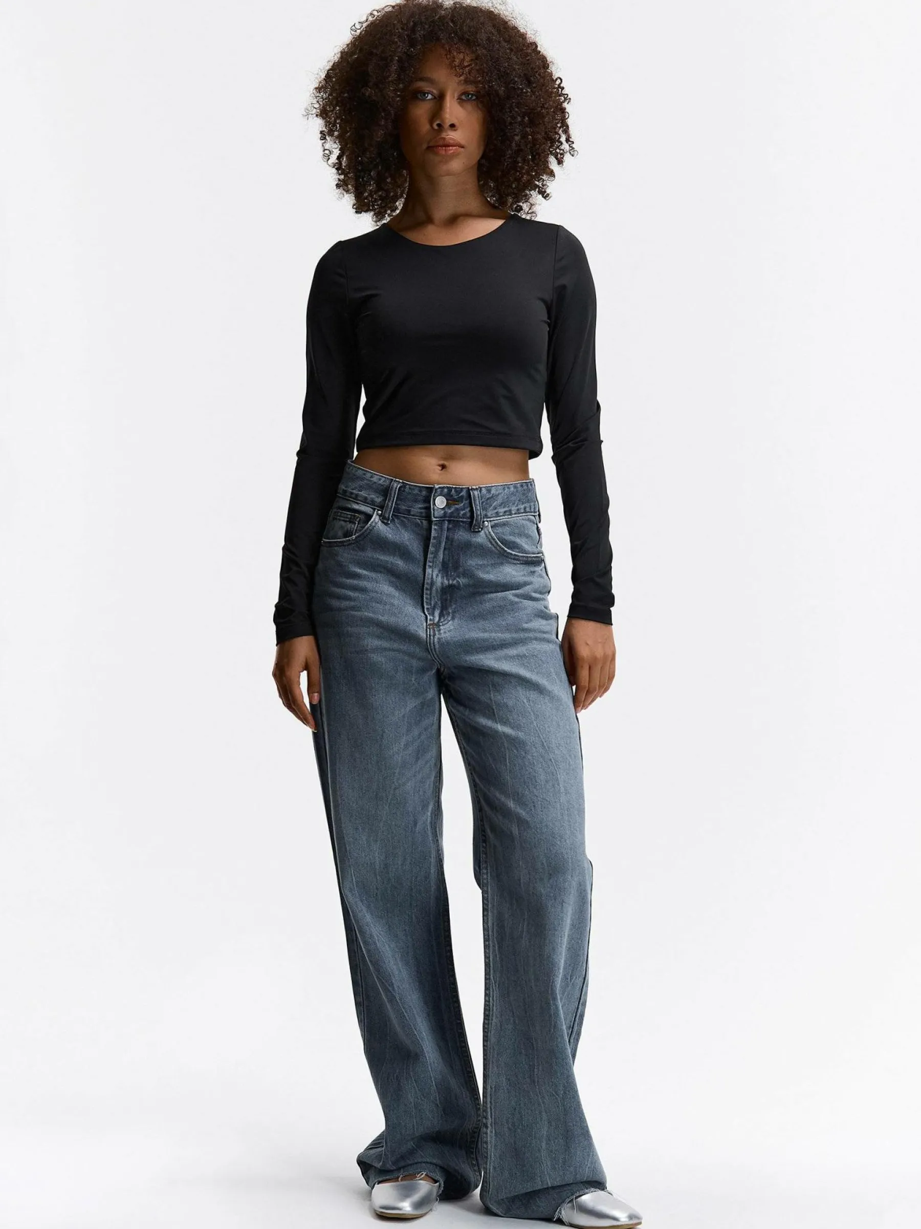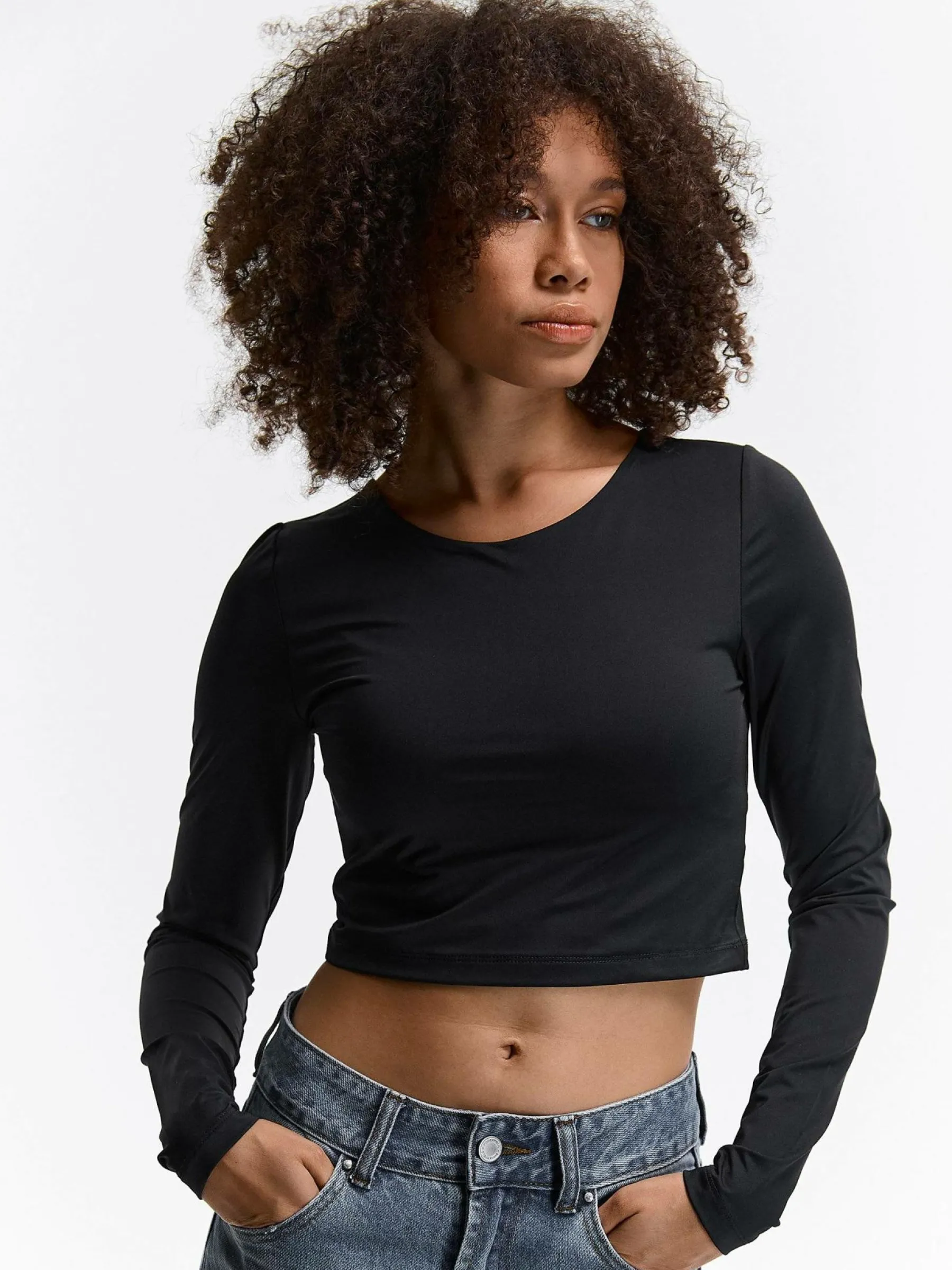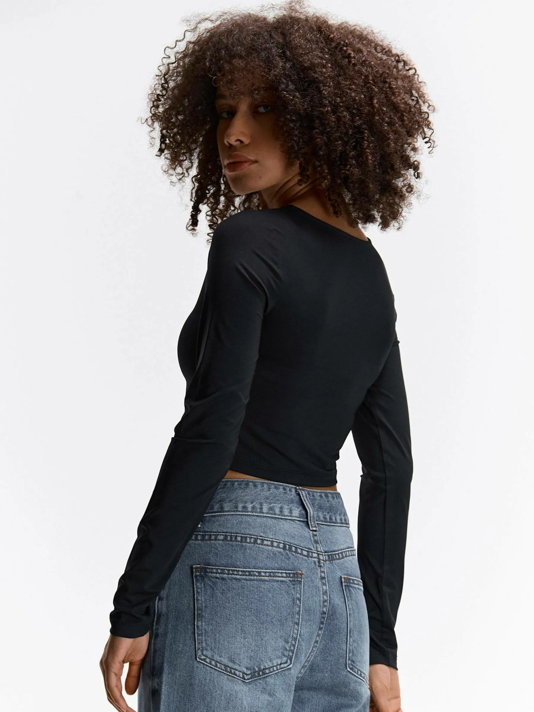 Kolor: czarnyKrój: regularTyp: topRekaw: długi rękawDługość: krótki topPattern style: pojedynczy kolorDetal: nad …