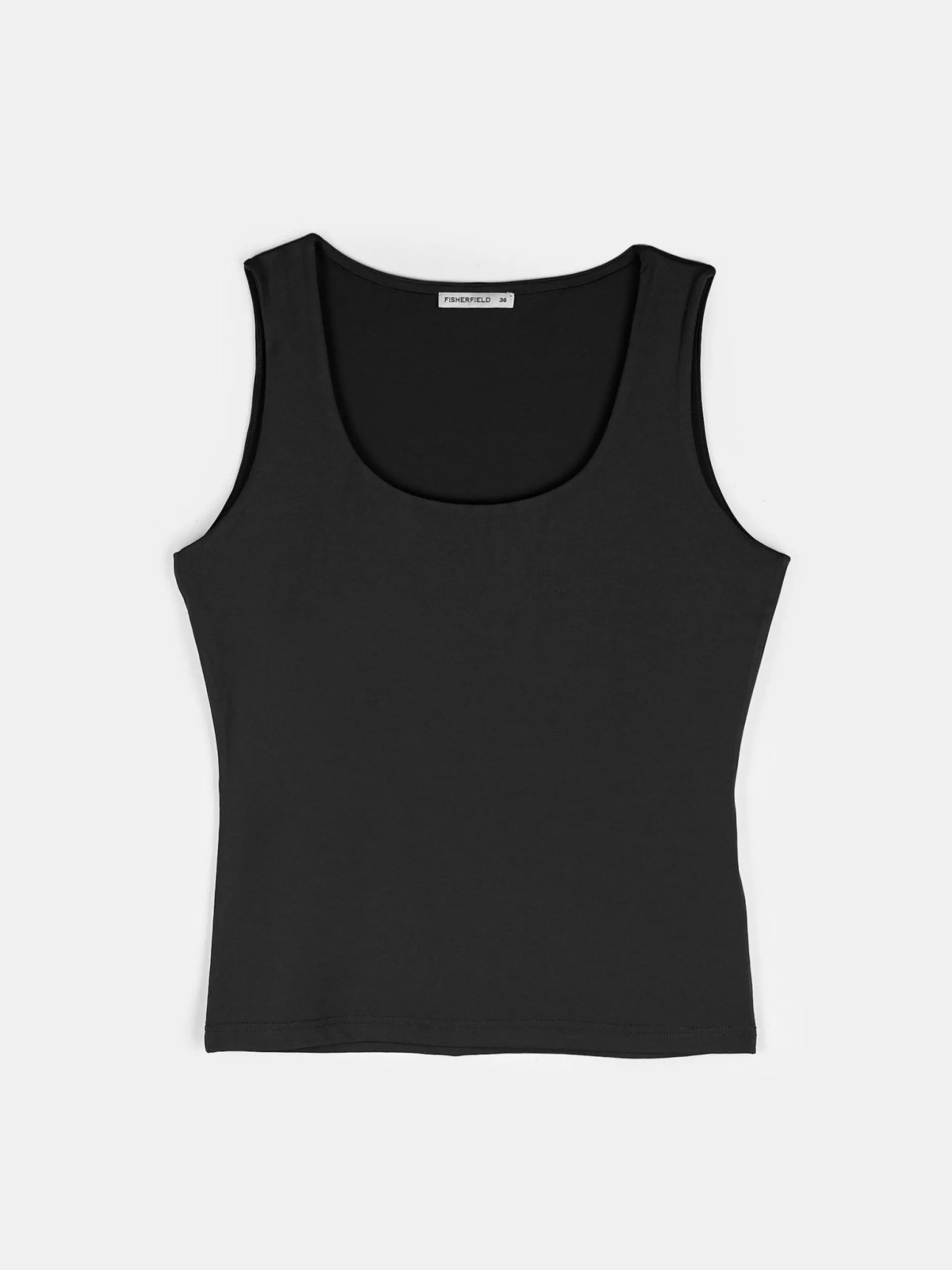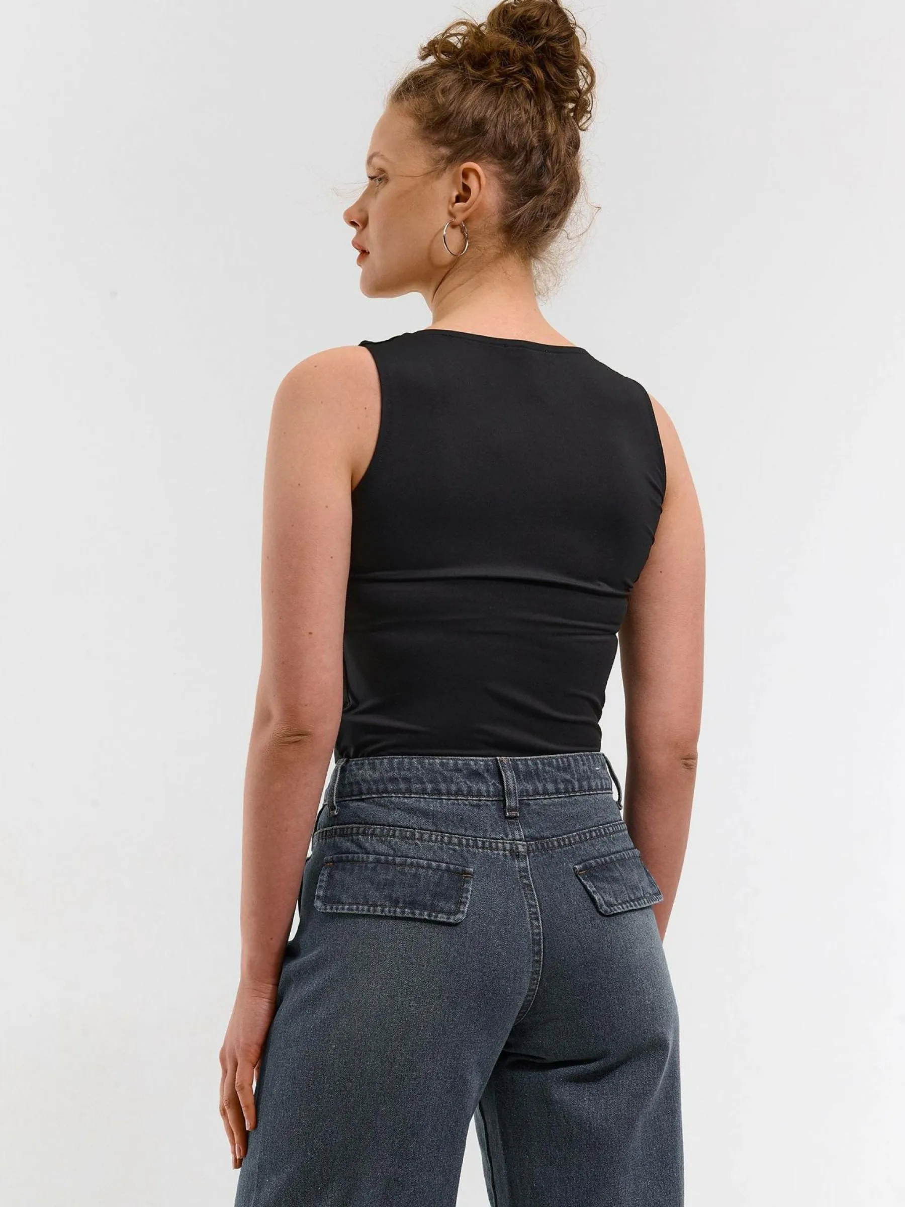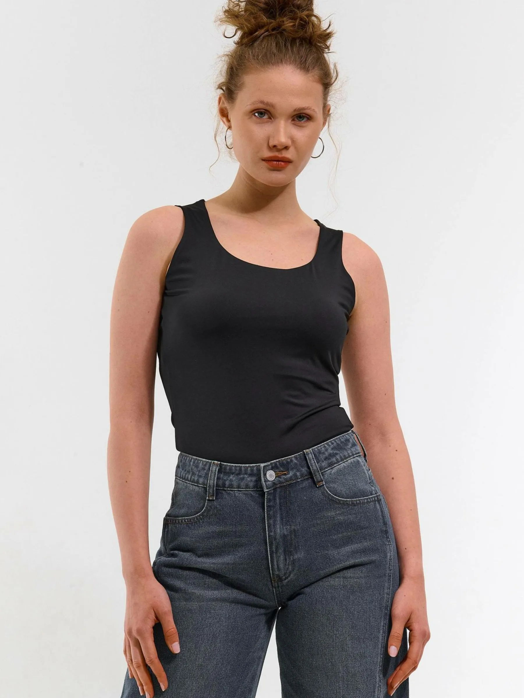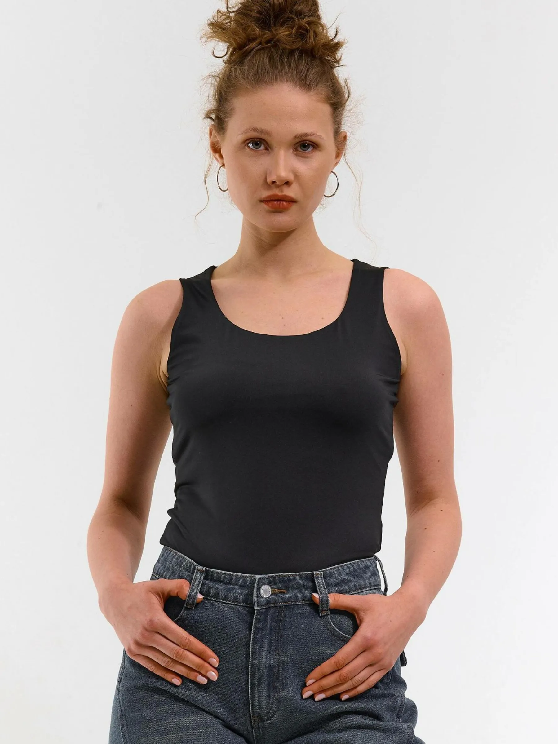 Kolor: czarnyKrój: regularTyp: podkoszulekRekaw: bez rękawówDługość: krótkiPattern style: pojedynczy kolorDetal: …