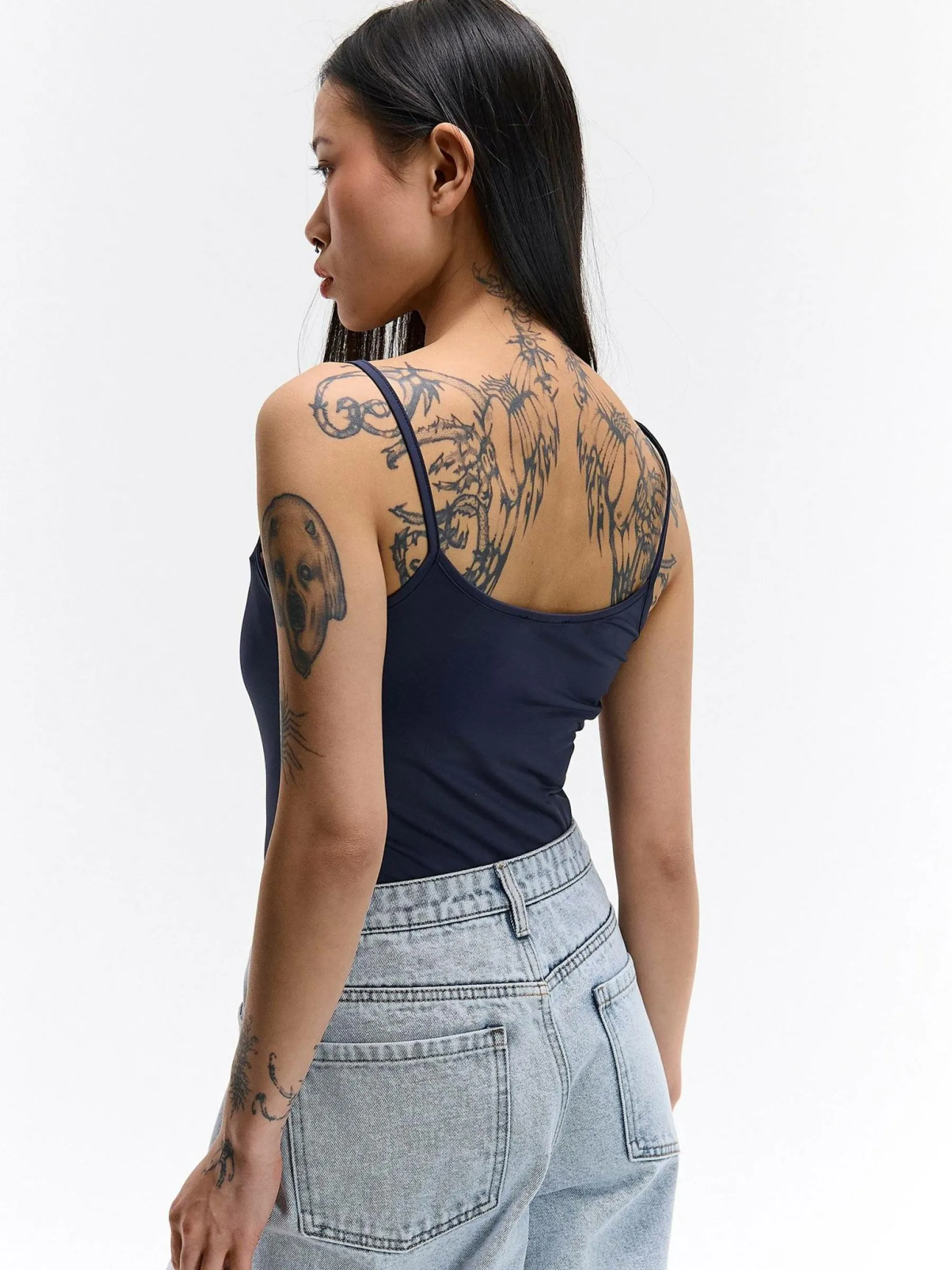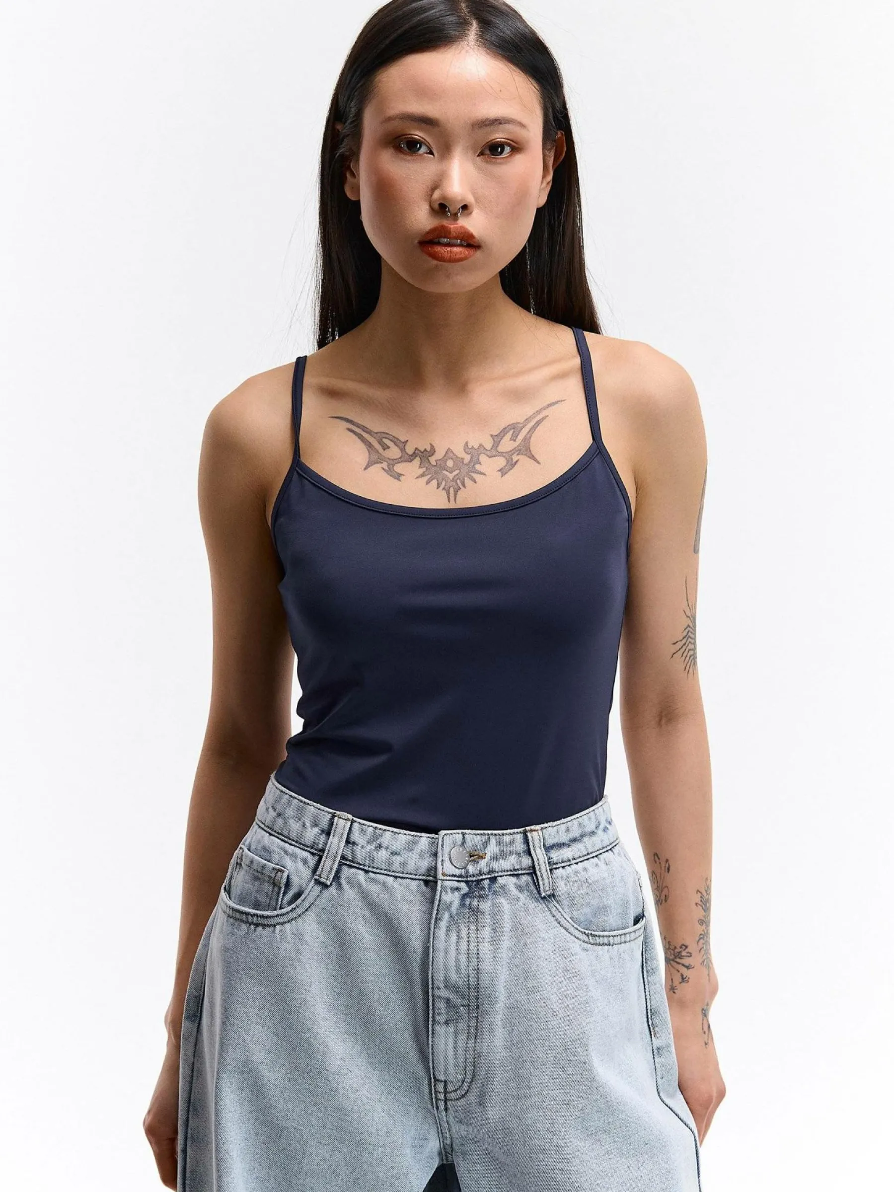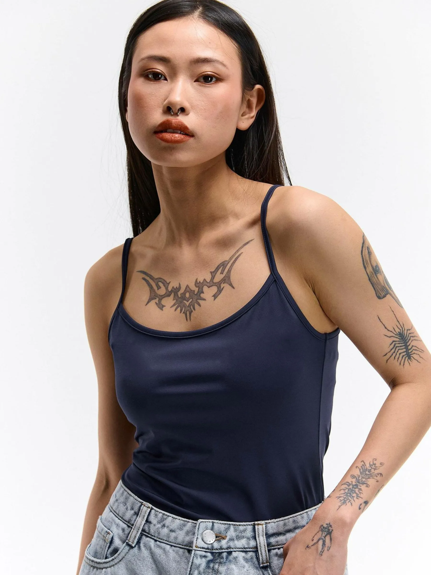 Kolor: granatowyKrój: regularTyp: podkoszulekRekaw: bez rękawówDługość: krótkiPattern style: pojedynczy kolorDeta…